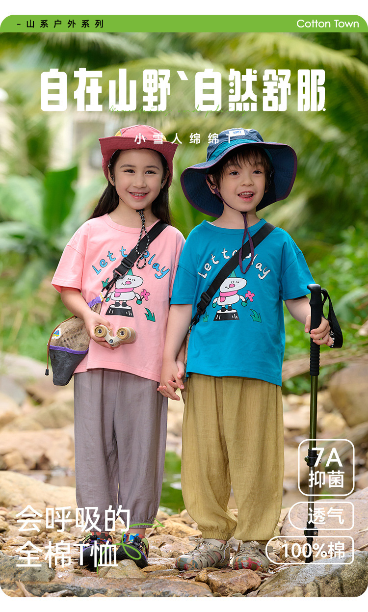 [100% 면 + 항균] 면 홀 아동면 반팔 티셔츠 여름 소년 소녀 여름 통기성 아동복스토어 가기