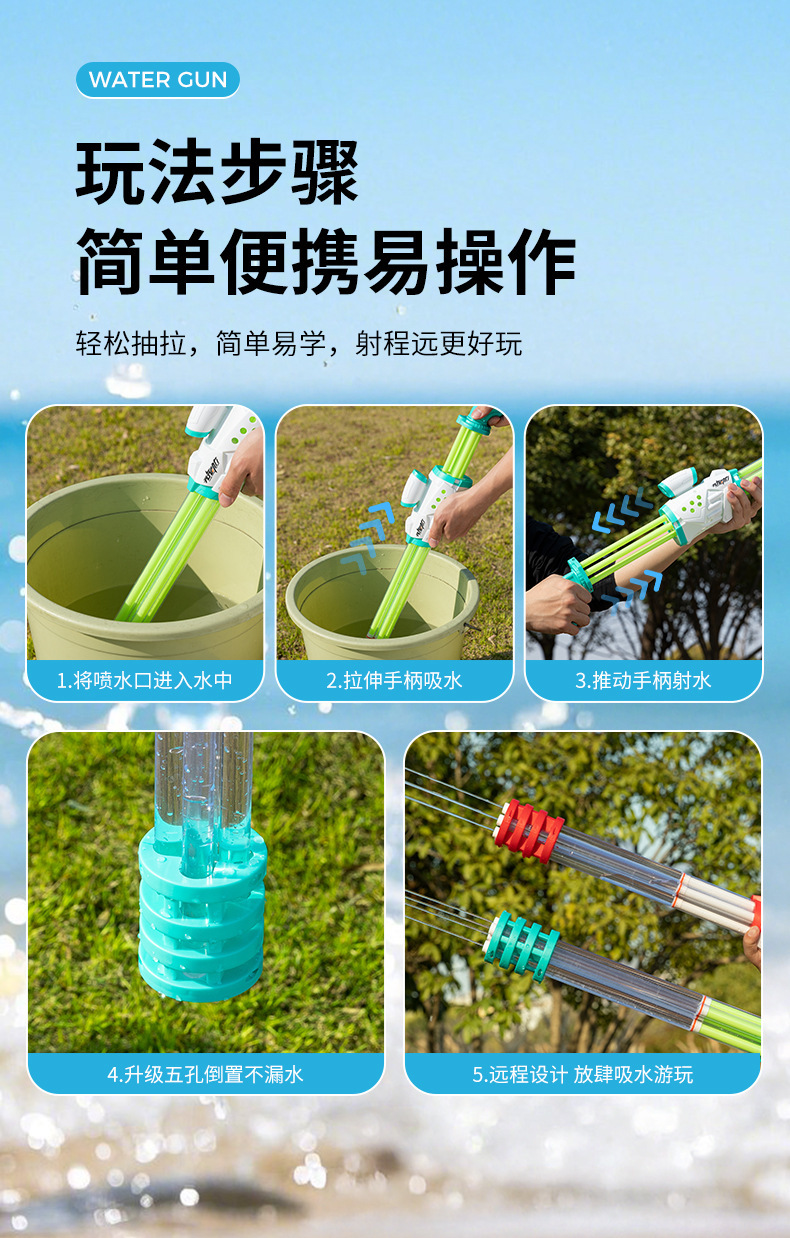 어린이 확장 바늘 배럴 유형 풀 아웃 물총 물 대포 아기 물 펌핑 해변 마구간 장난감 배치 제조 업체스토어 가기