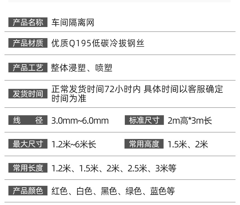 창고 작업장 격리망, 특송 분류망, 칸막이 보호망, 강 로봇 울타리, 관광용 가드레일망