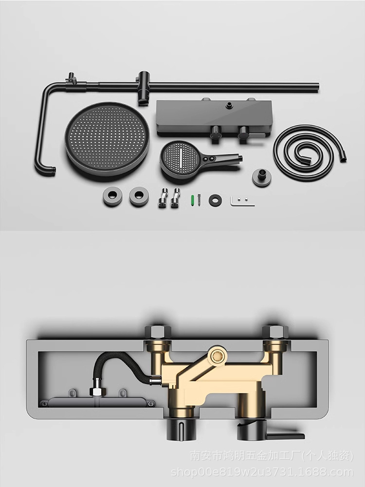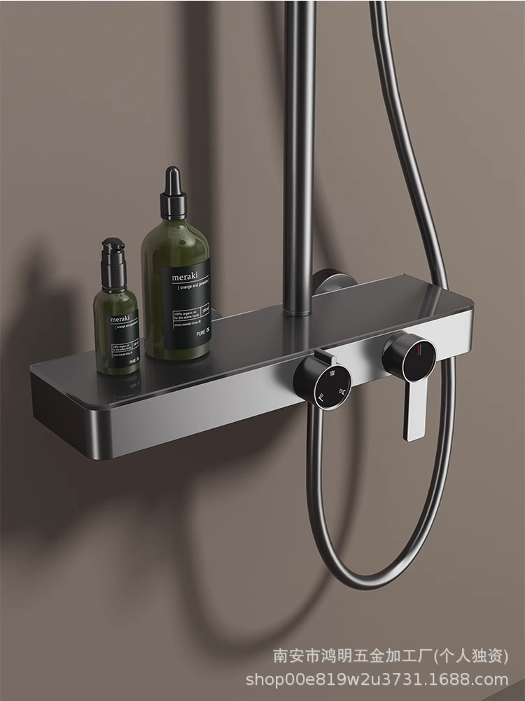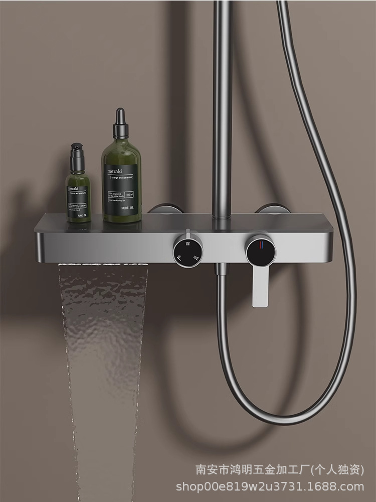 전체 구리 스테인레스 스틸 쉘 폭포 가압 샤워 세트 홈 욕실 레인 샤워 헤드 욕실 혼합 밸브
