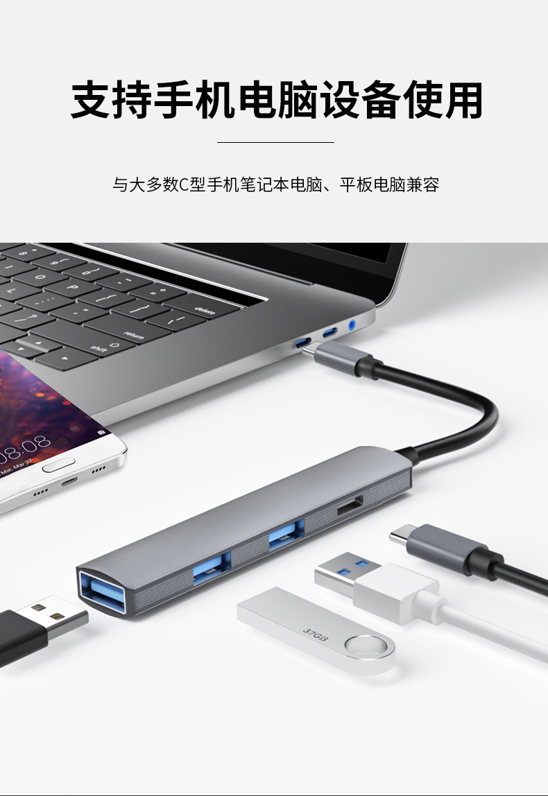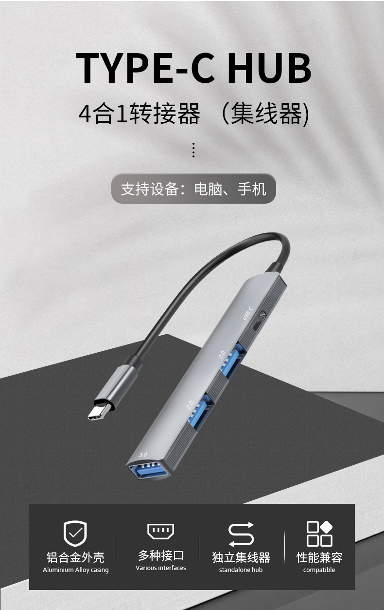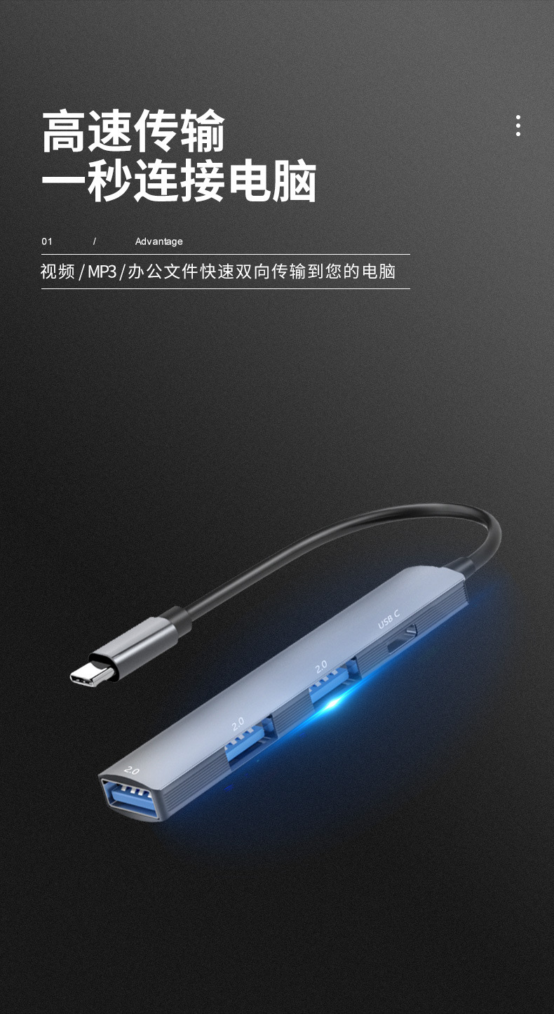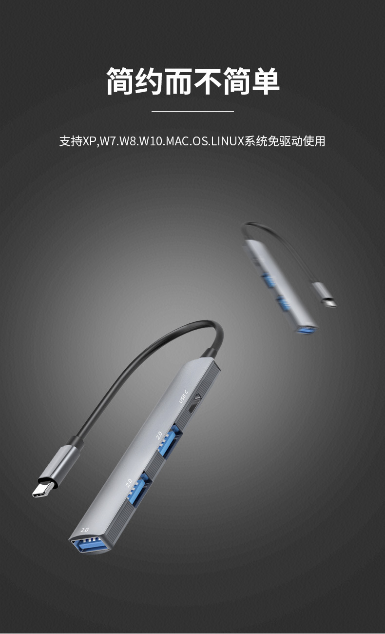Type-c-HUB 스플리터 USB3.0 일대일 USB C 멀티 인터페이스 확장 컴퓨터 USB2.0 허브