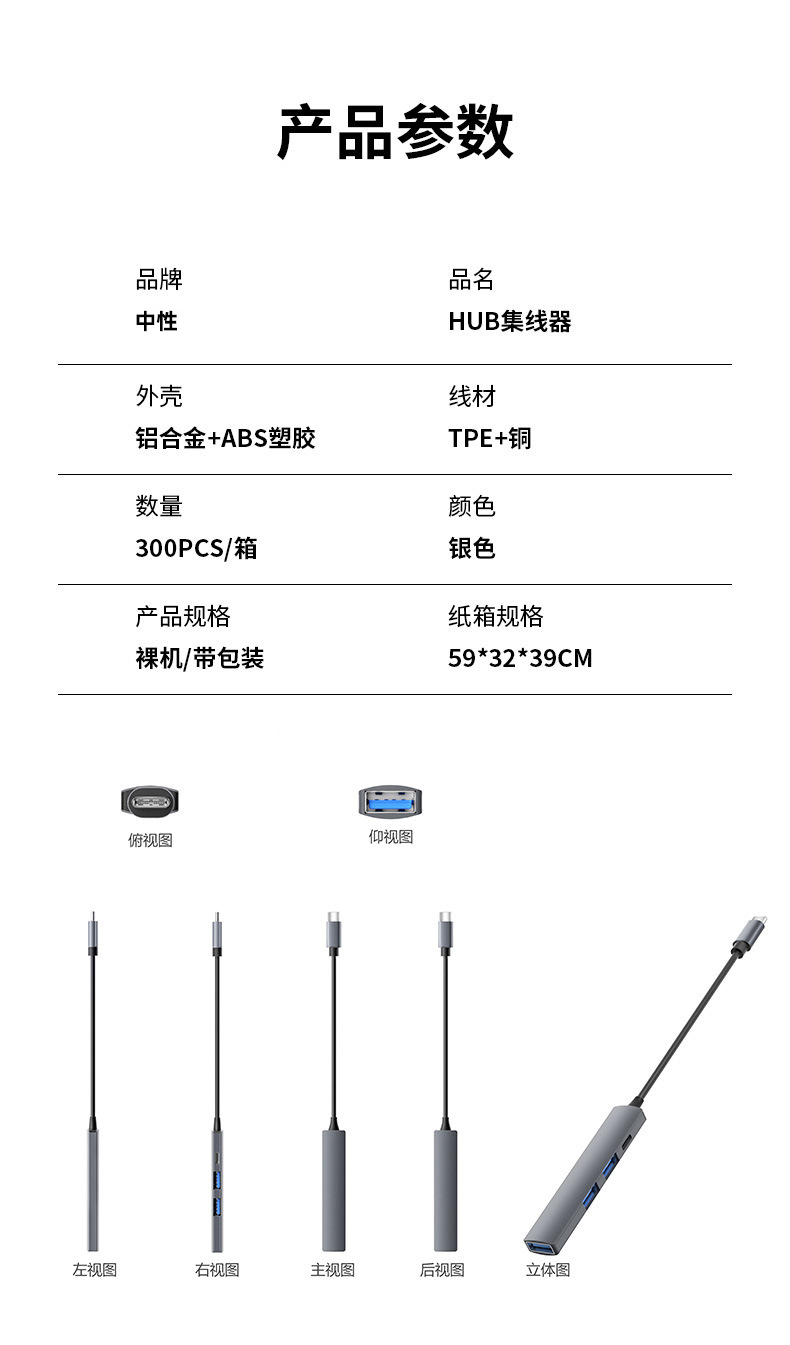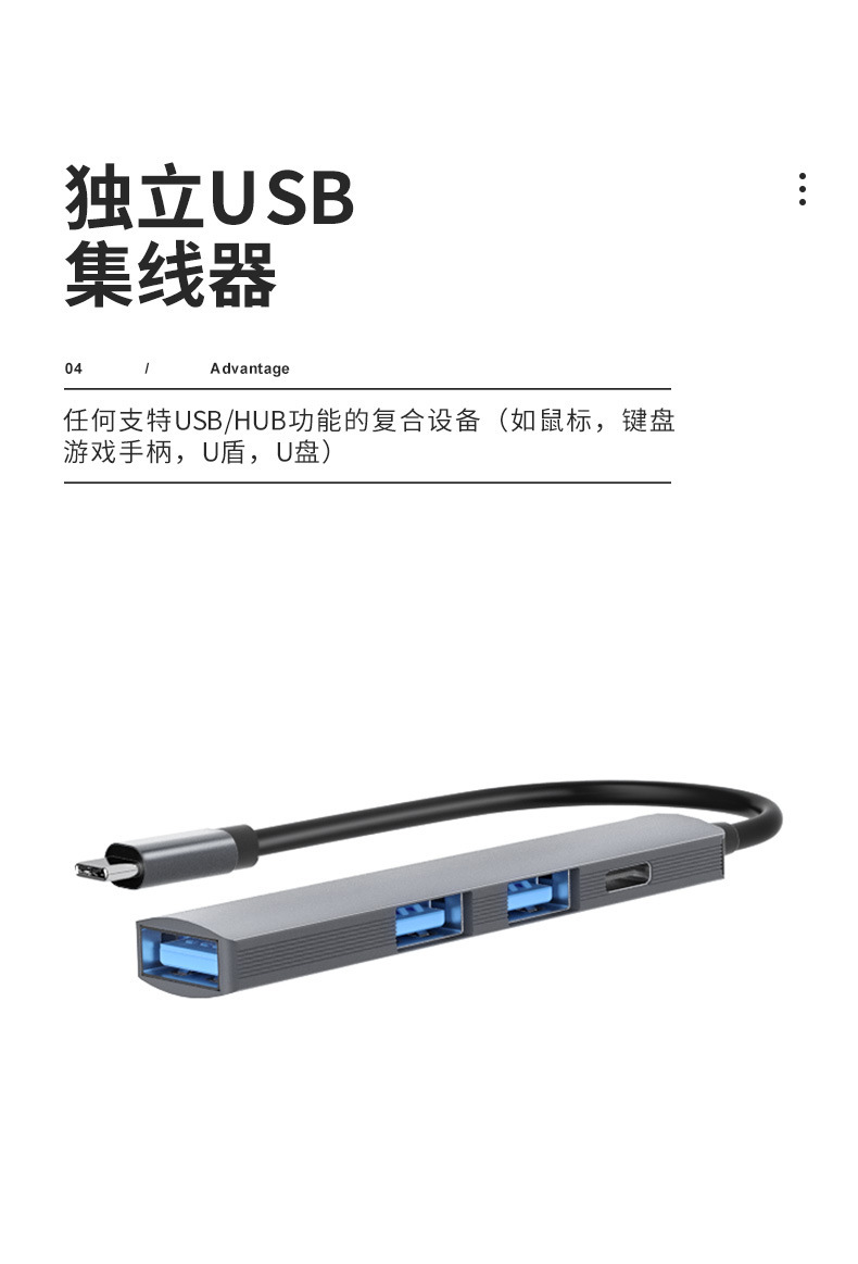 Type-c-HUB 스플리터 USB3.0 일대일 USB C 멀티 인터페이스 확장 컴퓨터 USB2.0 허브스토어 가기