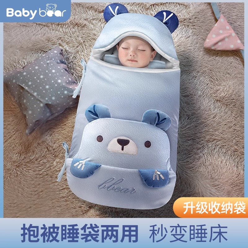 신생아 이불, 침낭, 가을 겨울 순면 항온 아기 일체형 발차기 방지 이불, 신생아 포대기스토어 가기