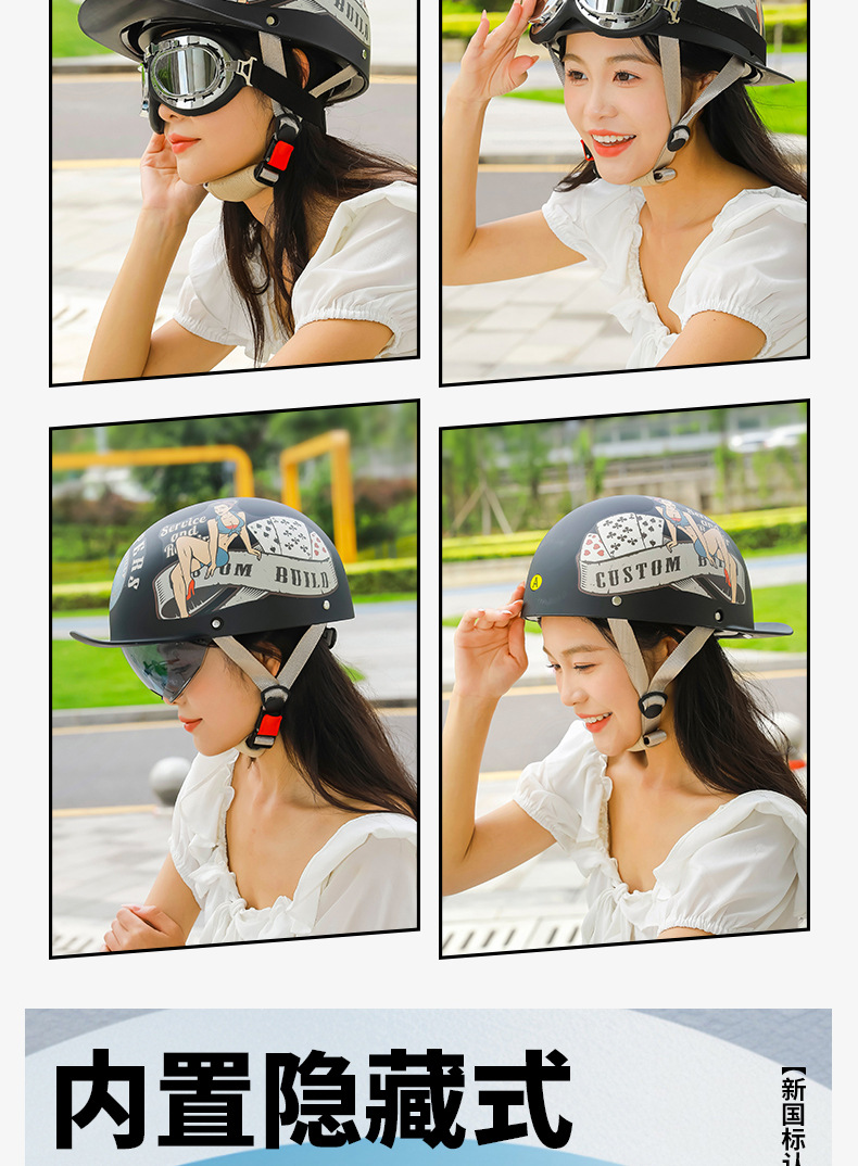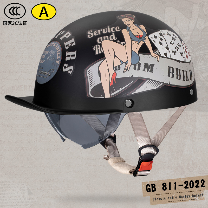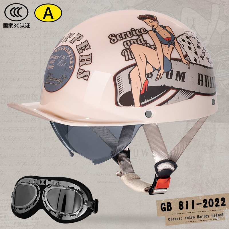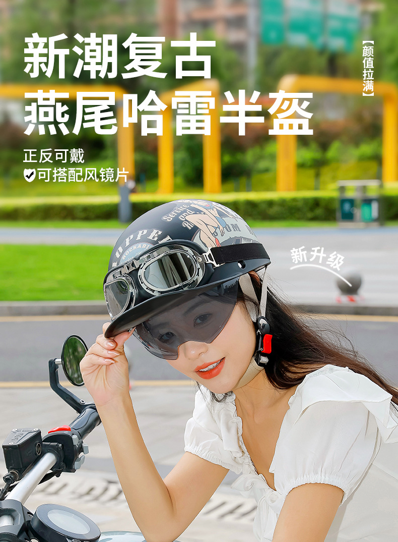 오토바이 전기 자동차 특종 헬멧 레트로 할리 크루즈 하프 헬멧 배터리 자동차 남성 성격 새로운 헬멧스토어 가기