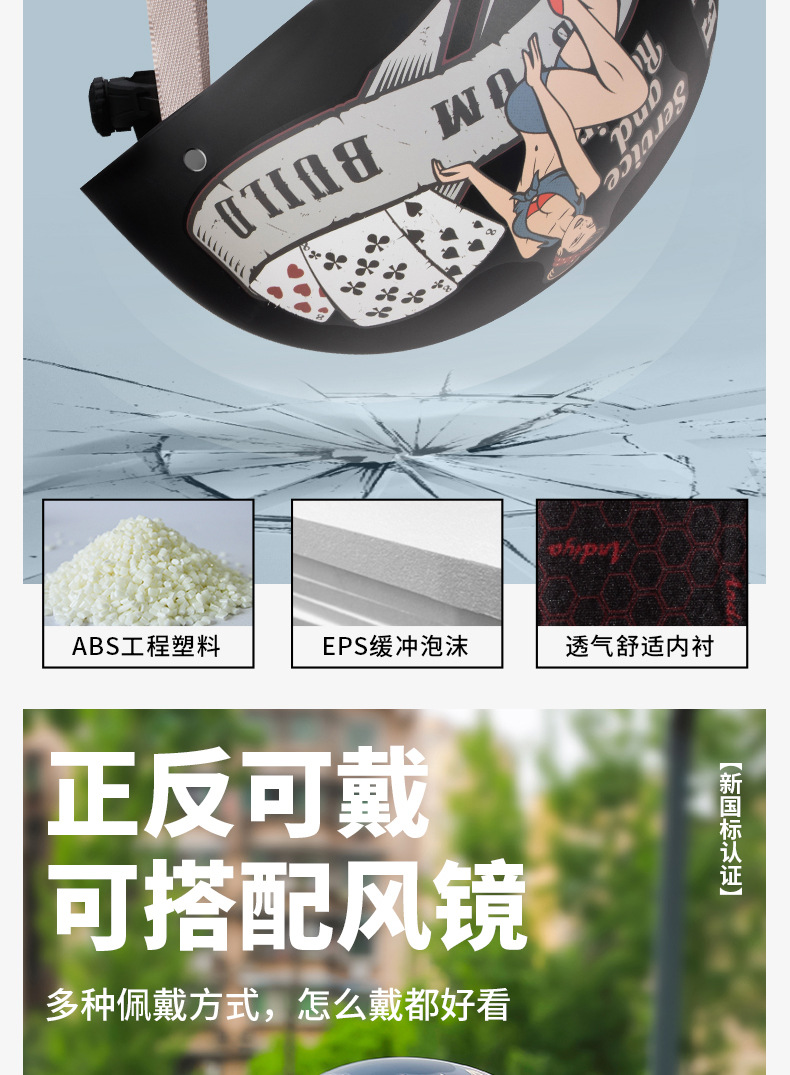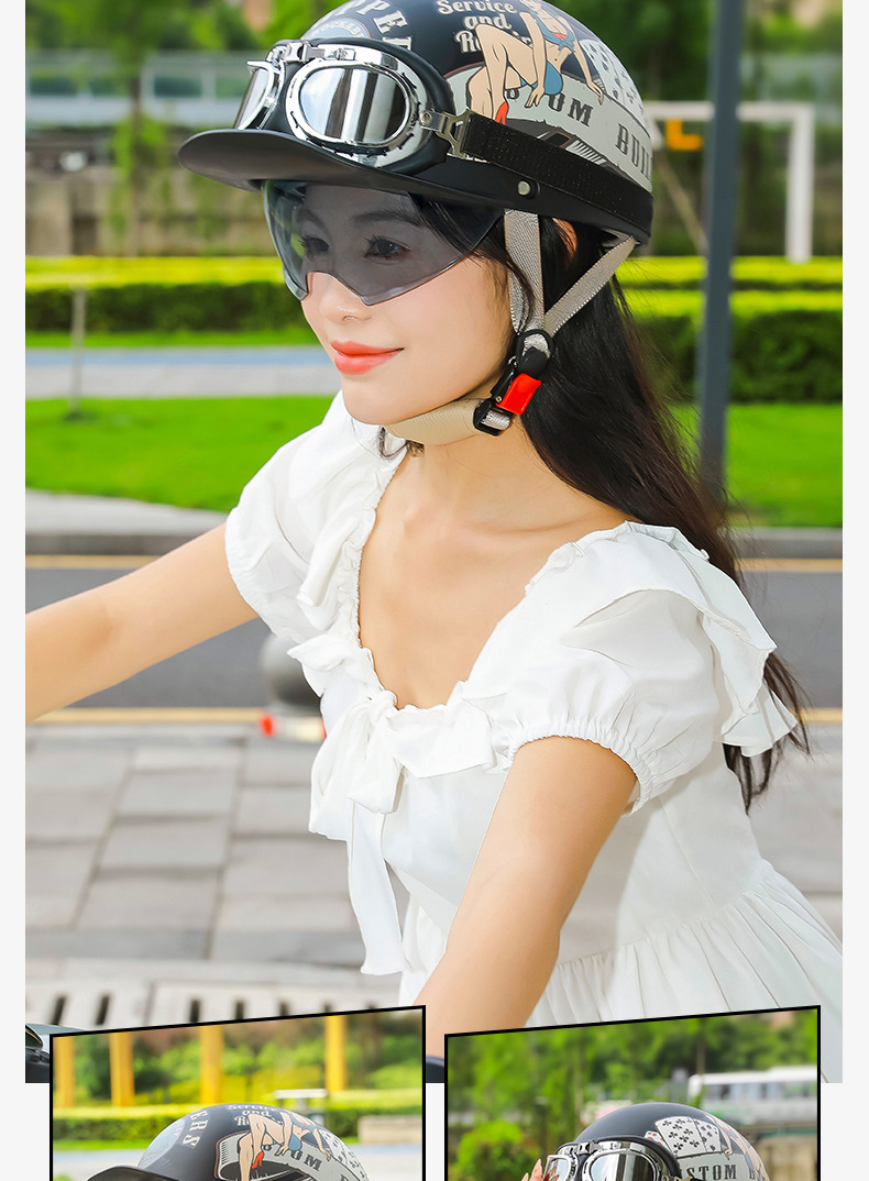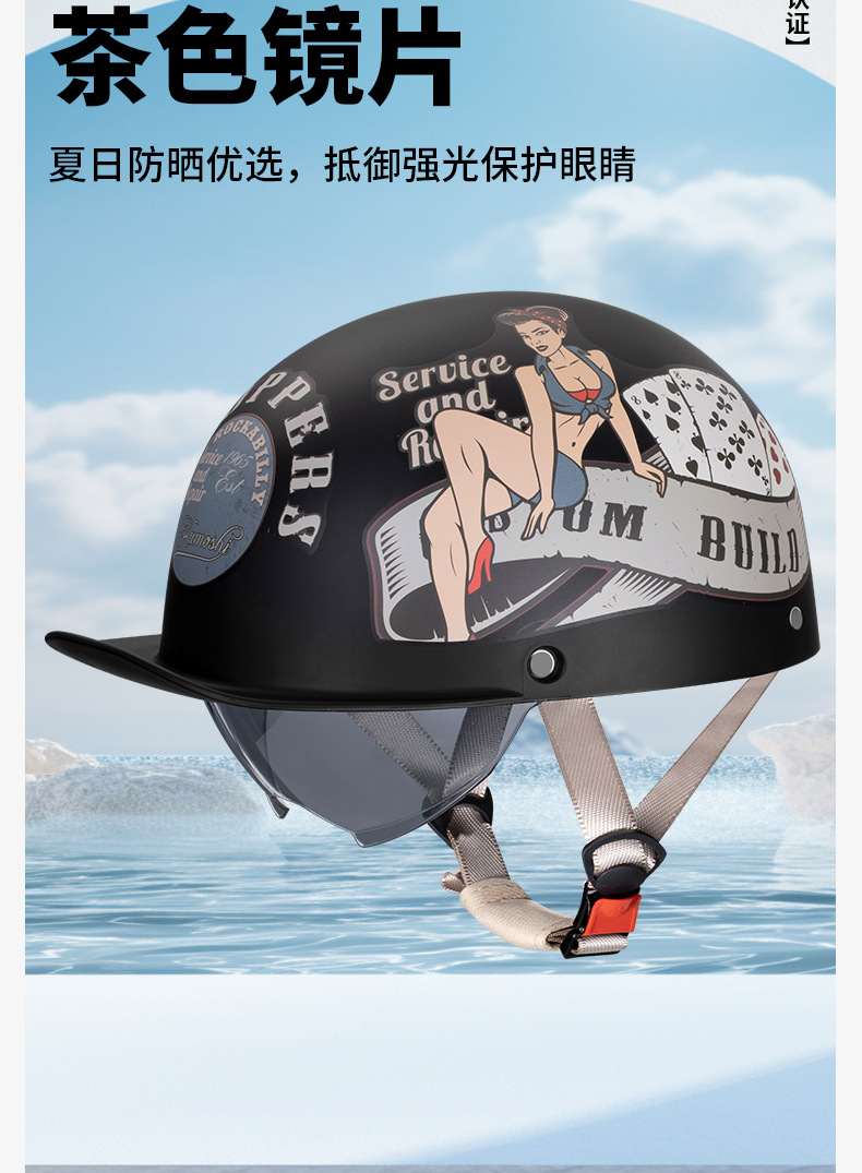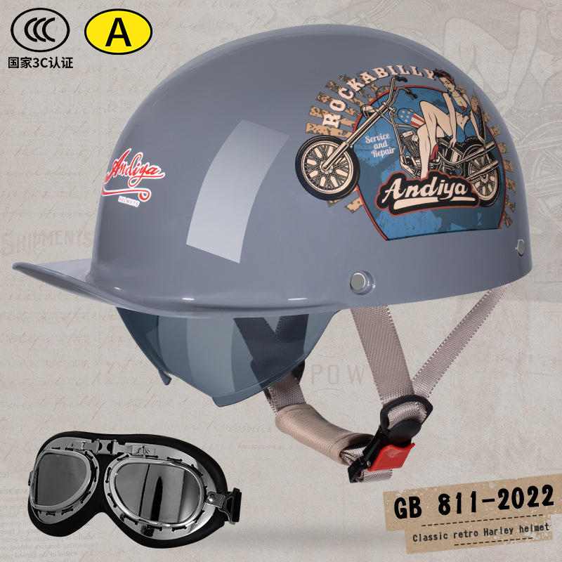 오토바이 전기 자동차 특종 헬멧 레트로 할리 크루즈 하프 헬멧 배터리 자동차 남성 성격 새로운 헬멧스토어 가기