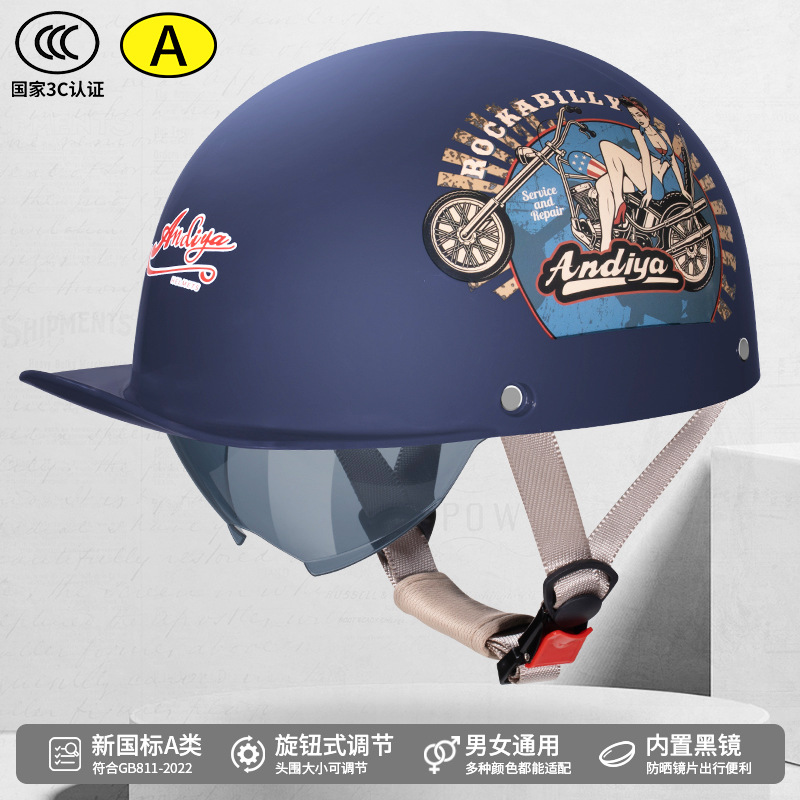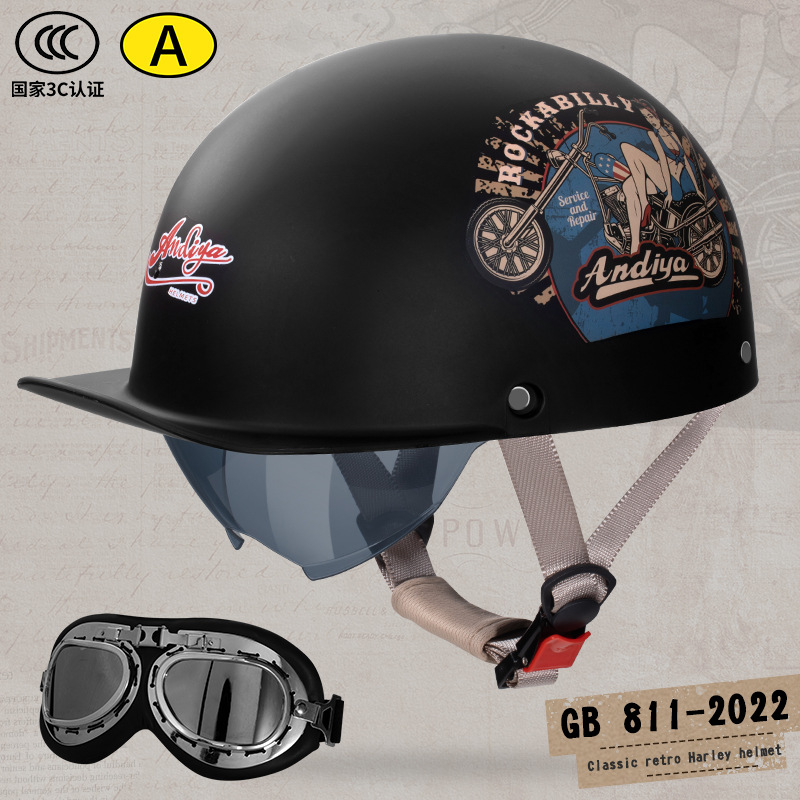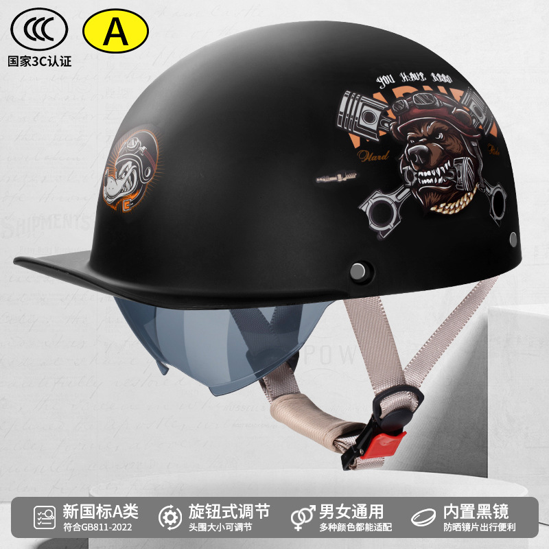 오토바이 전기 자동차 특종 헬멧 레트로 할리 크루즈 하프 헬멧 배터리 자동차 남성 성격 새로운 헬멧