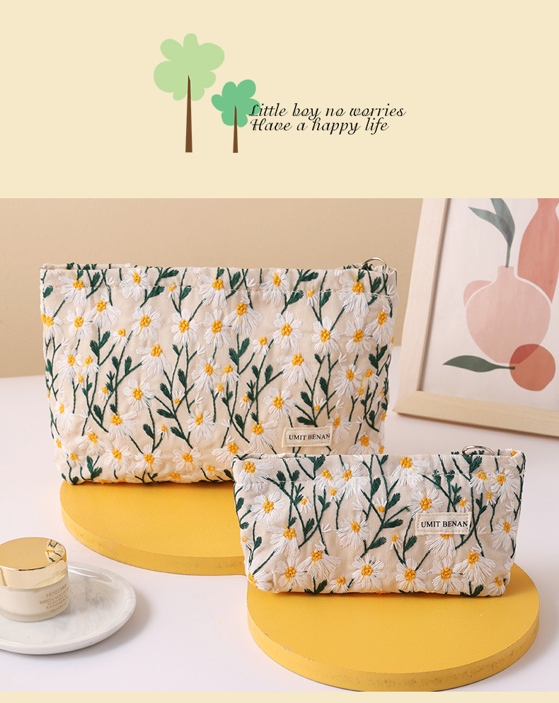새로운 스타일 주면과 리넨 공장 자수 화장품 가방 손 휴대용 캔버스 보관 가방 립스틱 스킨 케어 화장실 가방스토어 가기