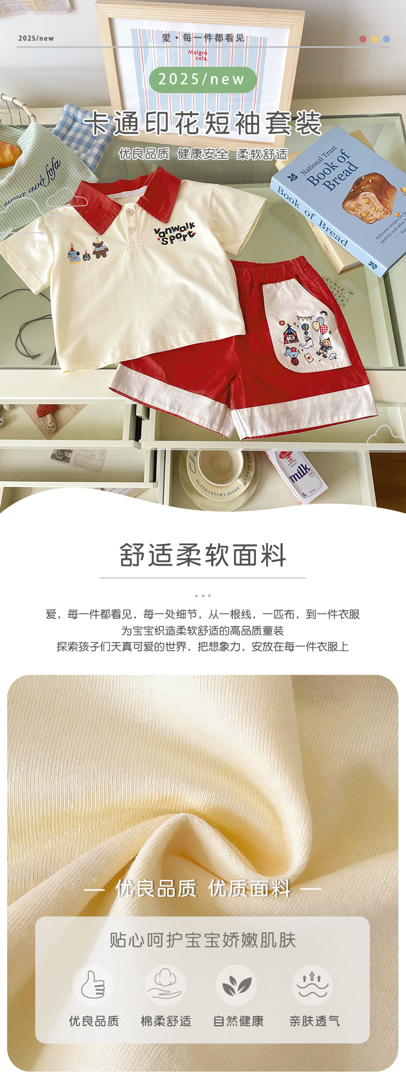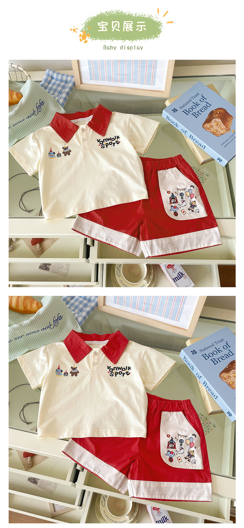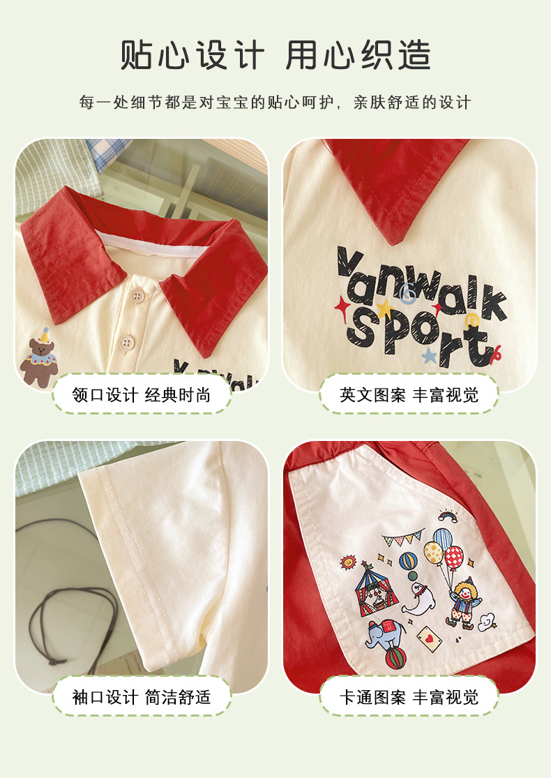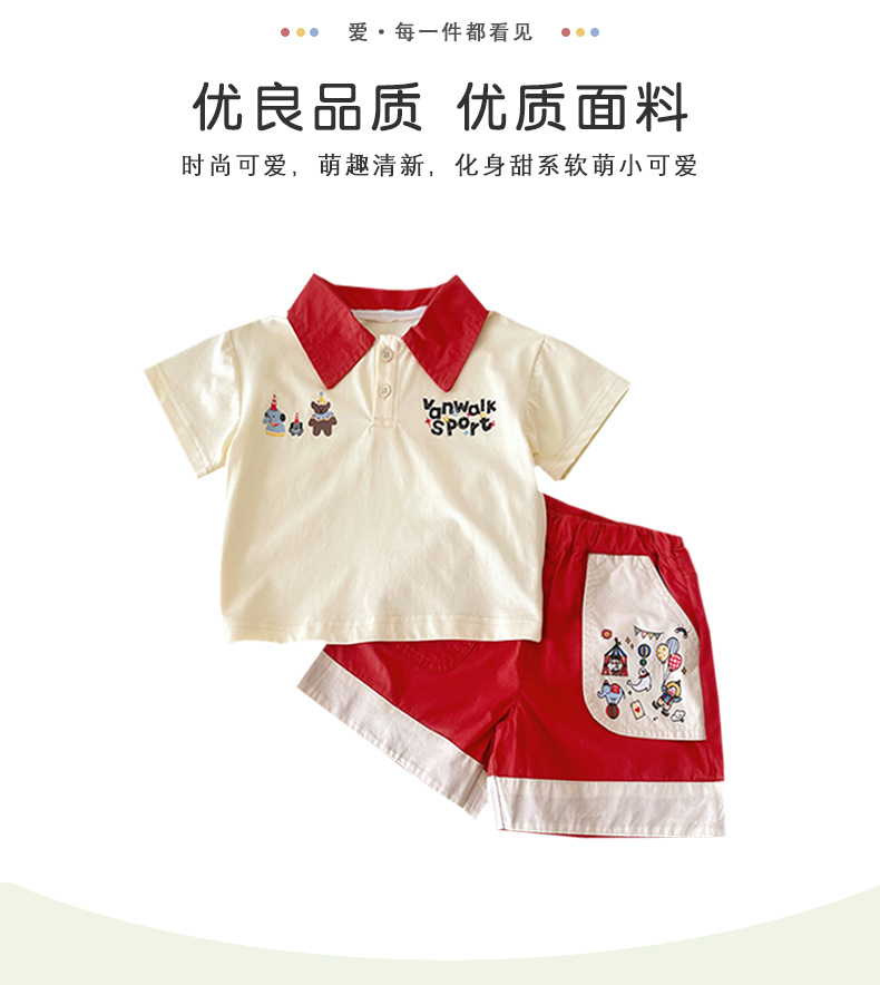 XT255199 소년 세트 2025 여름 새로운 아기 만화 곰 편지 자수 폴로 셔츠 반바지 2