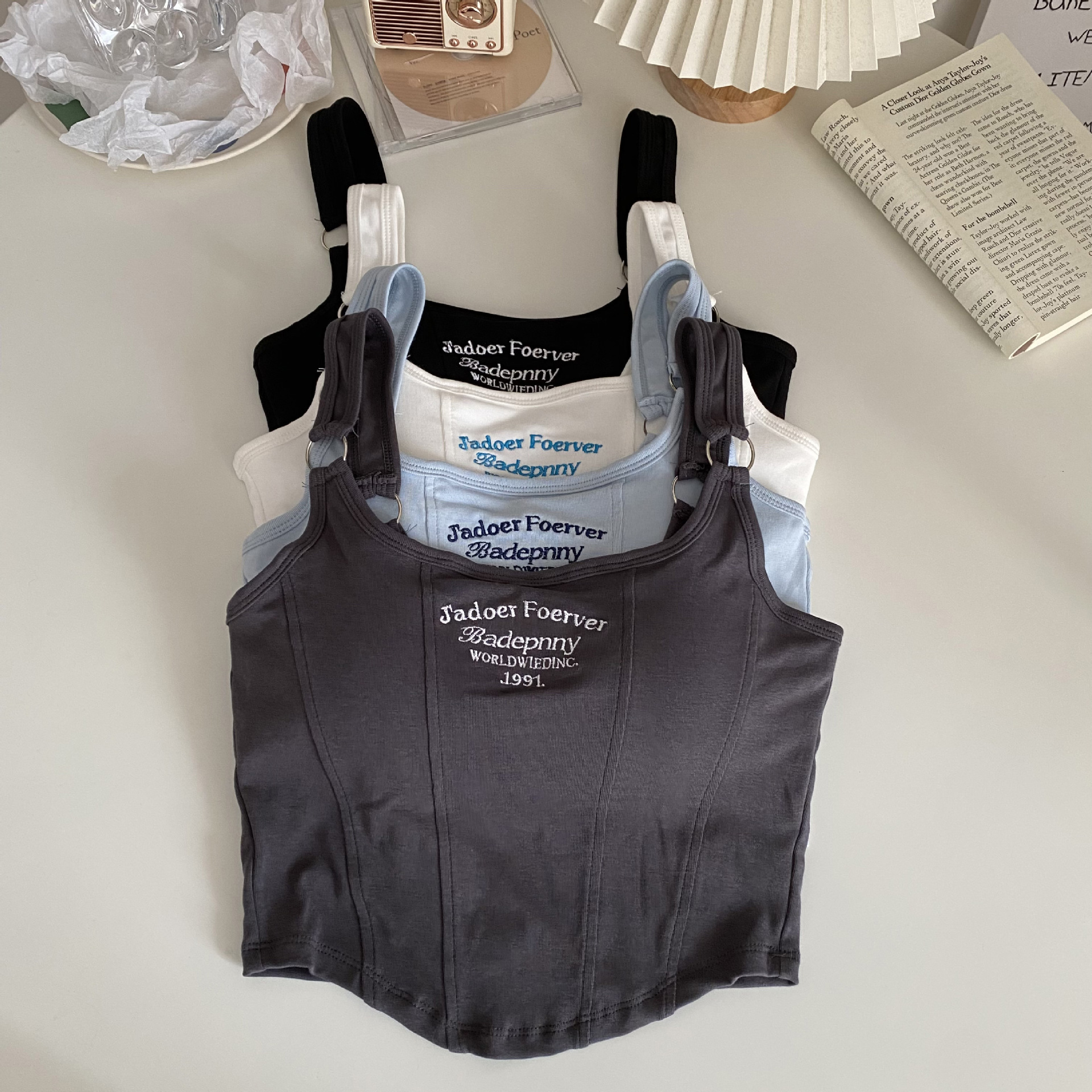 여성용 새로운 순수한 욕망 문자 인쇄 작은 캐미솔, 순수 코튼 핫 걸웨어 슬림핏 짧은 아우터 탑스토어 가기