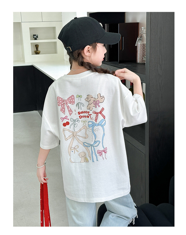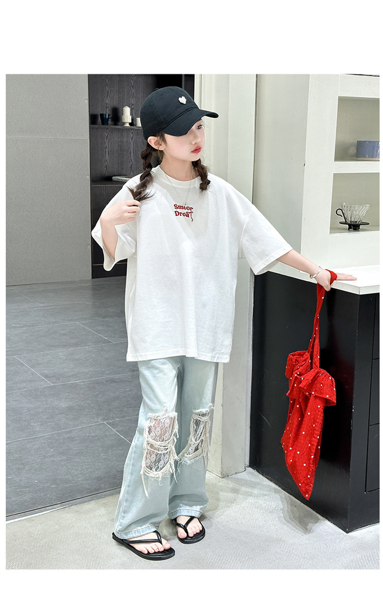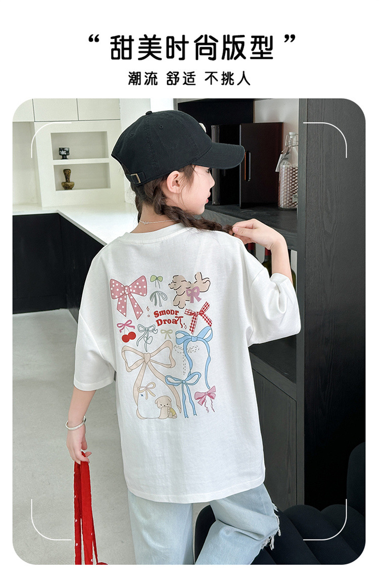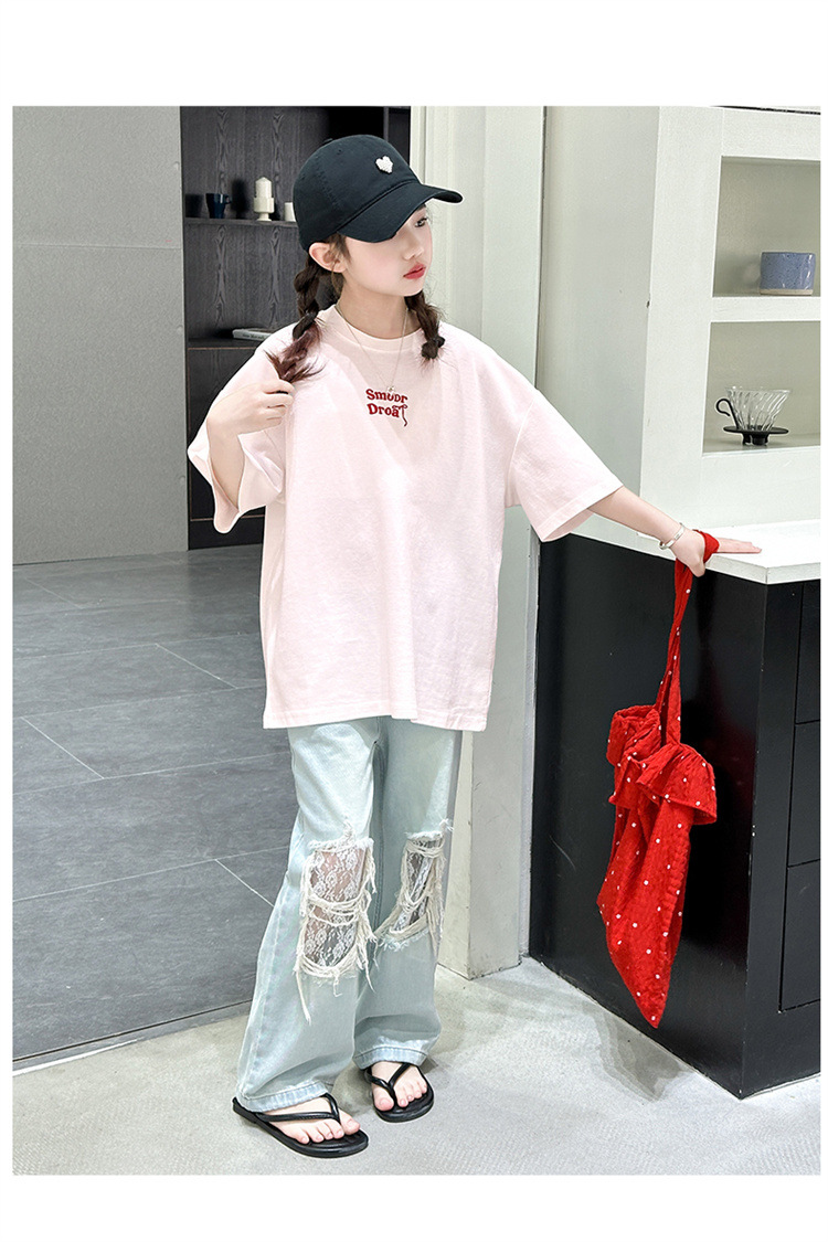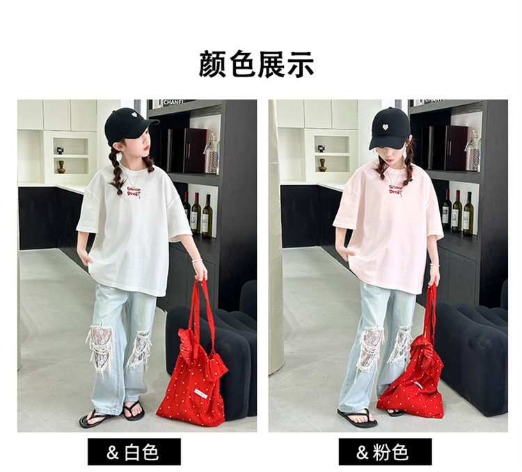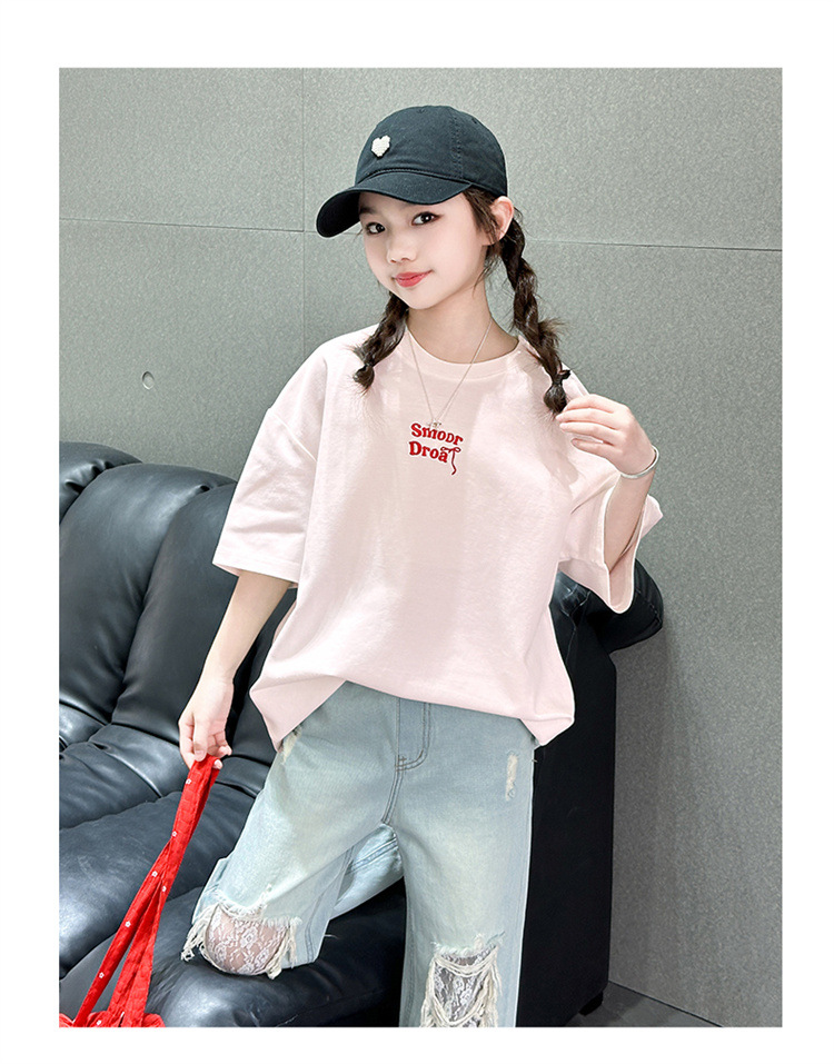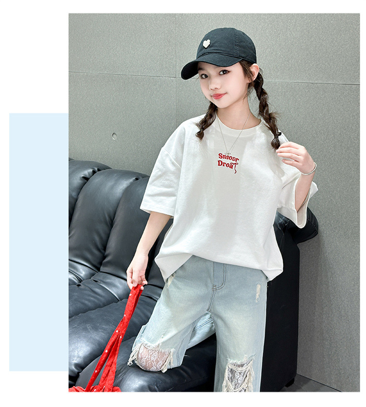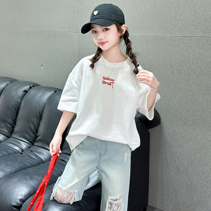 소녀의 반팔 티셔츠 여름 2025 새로운 스타일 소녀의 한국 스타일 여름 티셔츠 어린이 세련된 유행 티셔츠