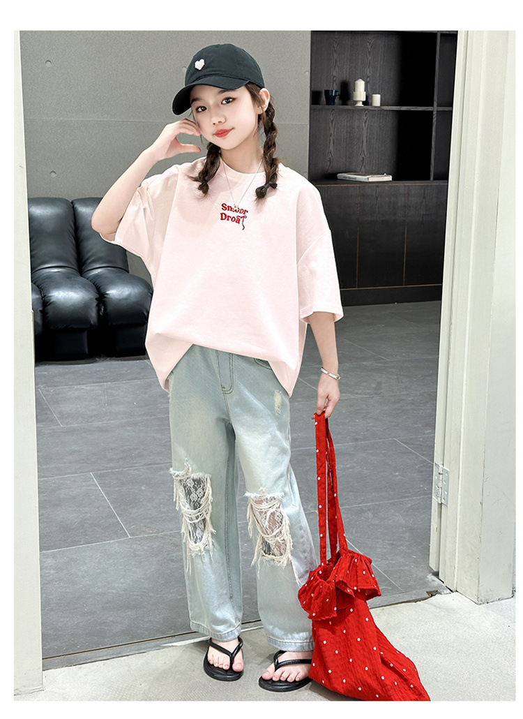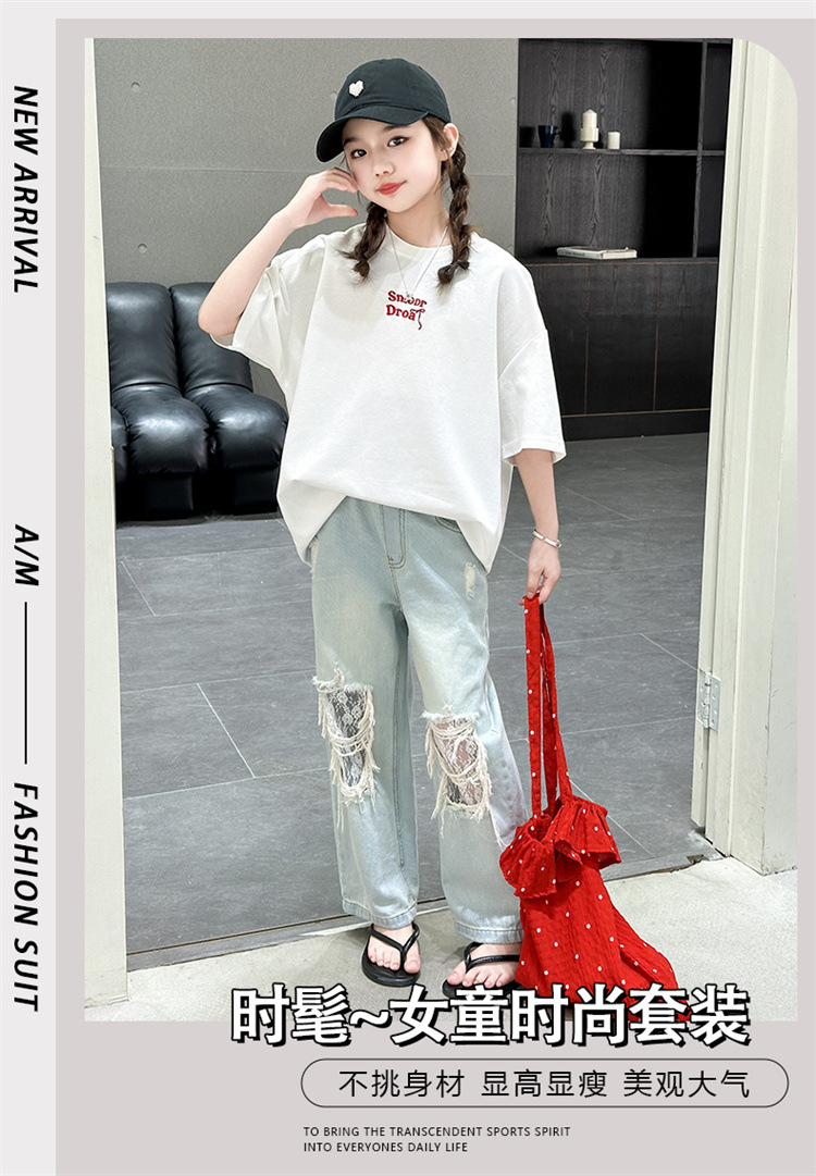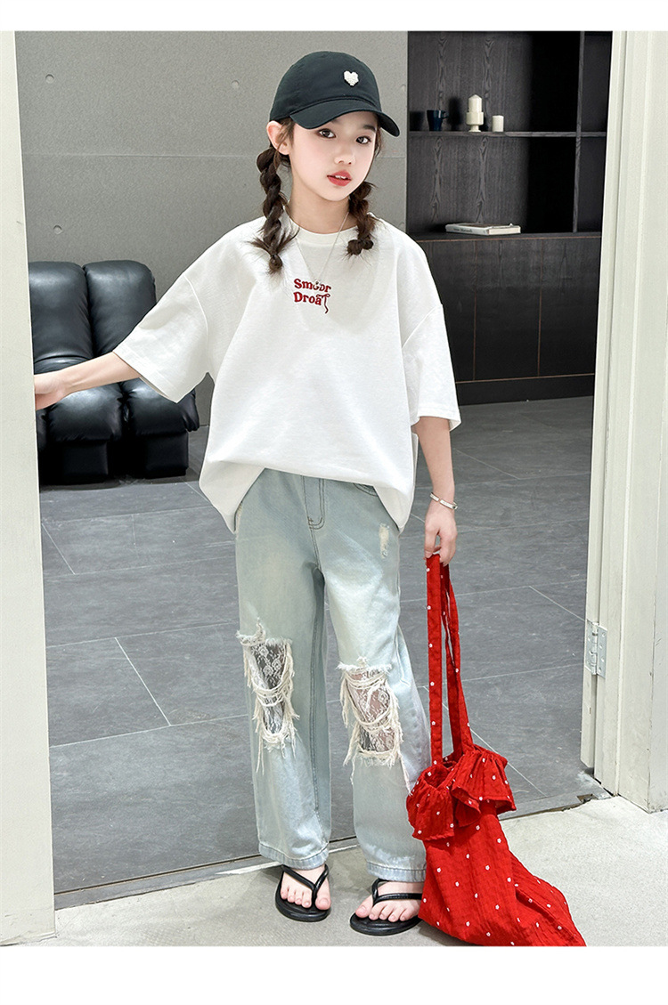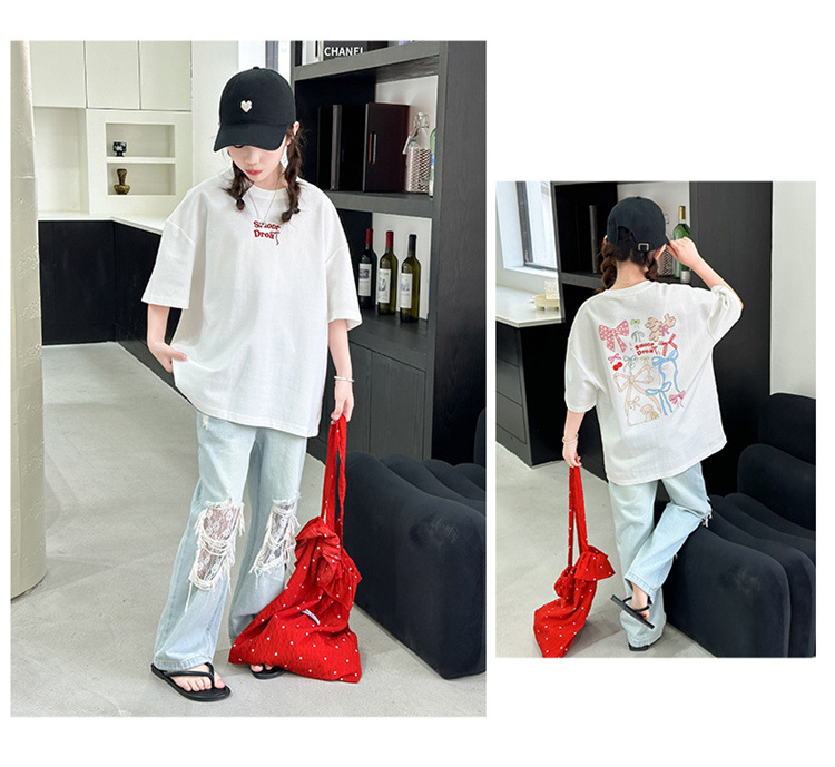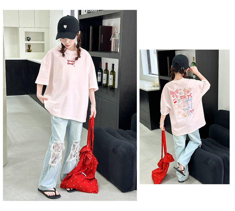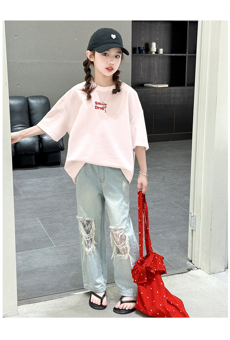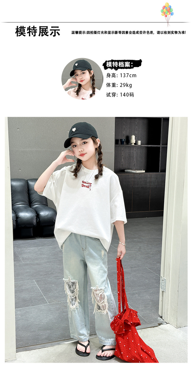 소녀의 반팔 티셔츠 여름 2025 새로운 스타일 소녀의 한국 스타일 여름 티셔츠 어린이 세련된 유행 티셔츠