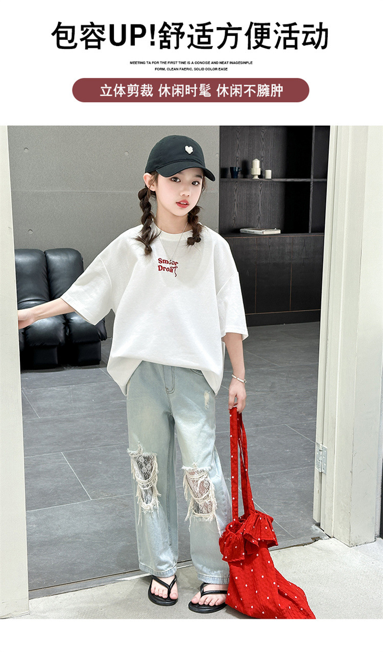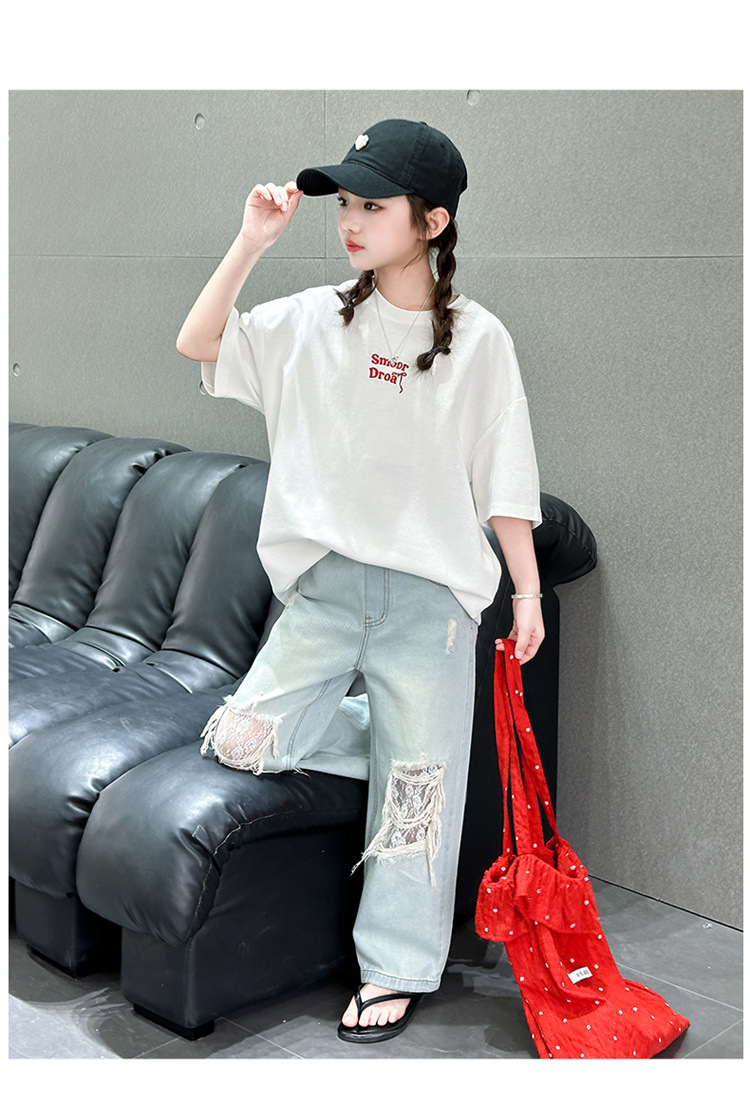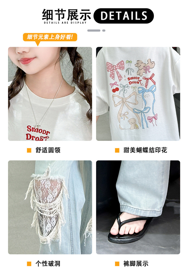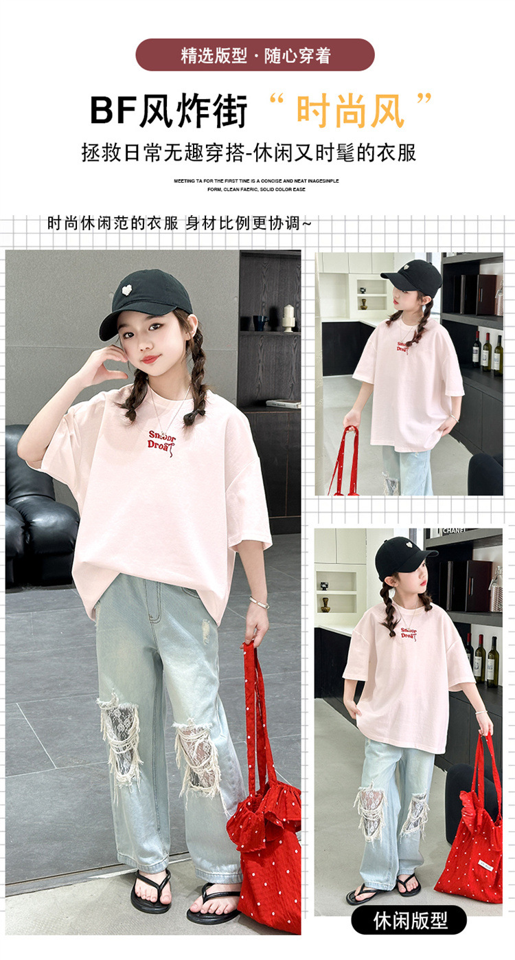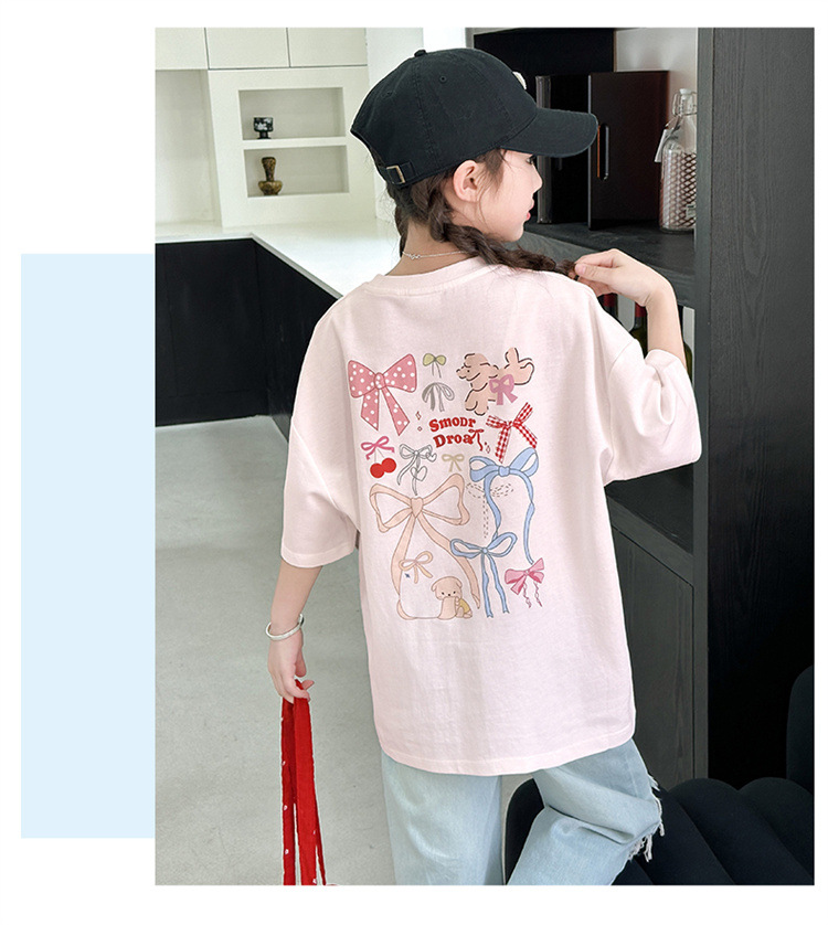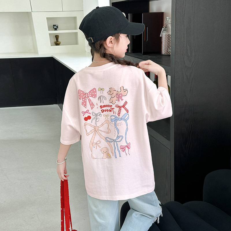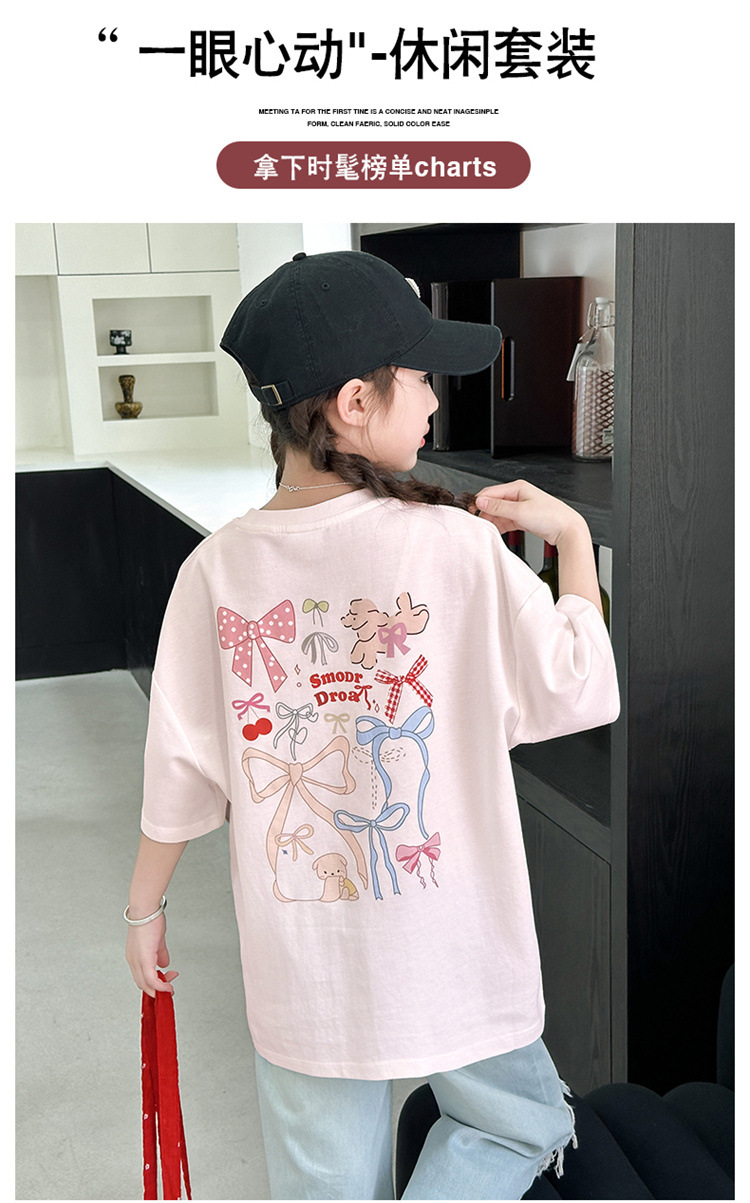 소녀의 반팔 티셔츠 여름 2025 새로운 스타일 소녀의 한국 스타일 여름 티셔츠 어린이 세련된 유행 티셔츠스토어 가기
