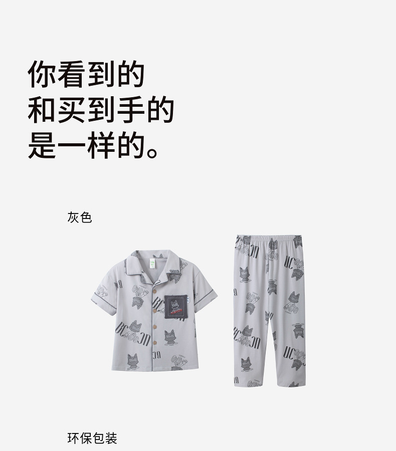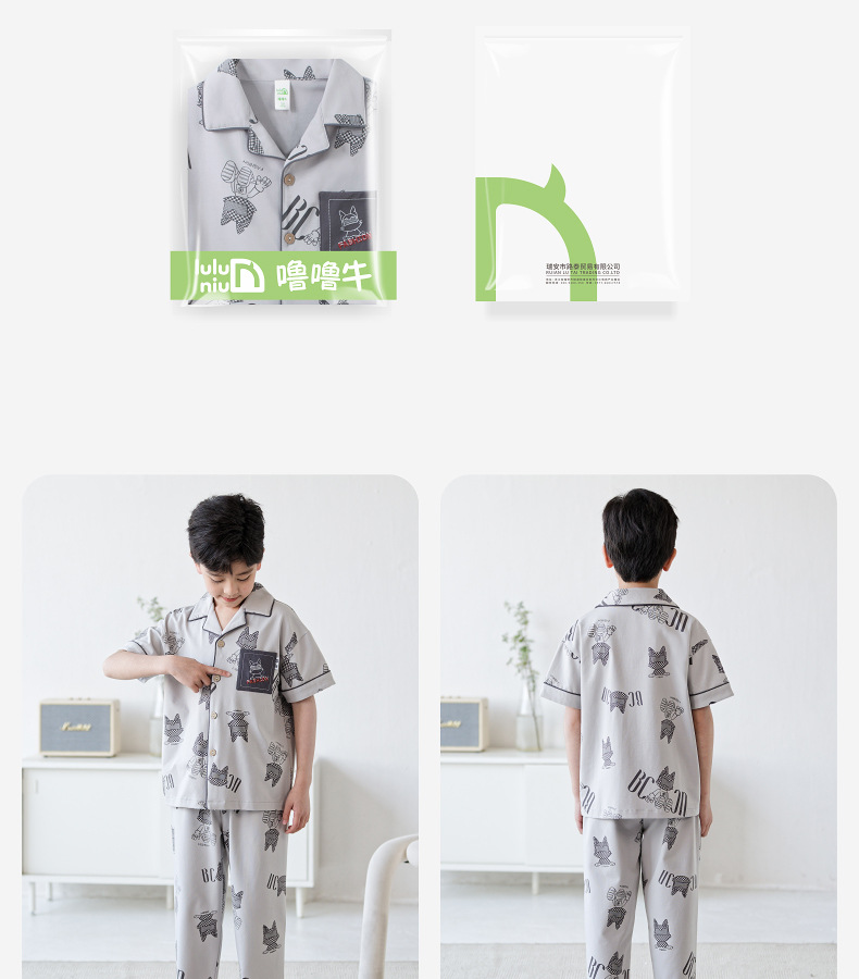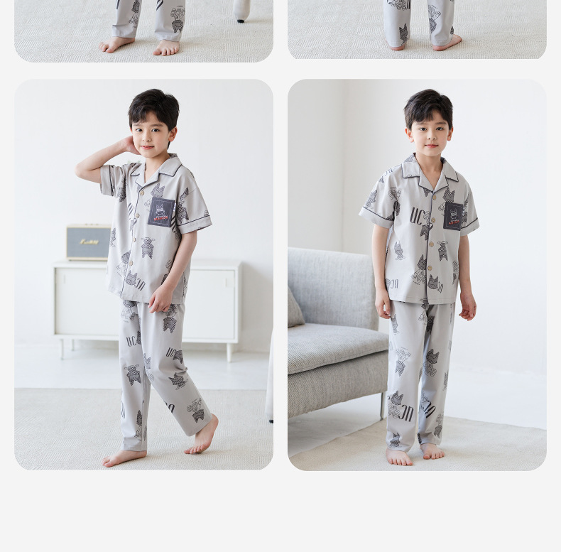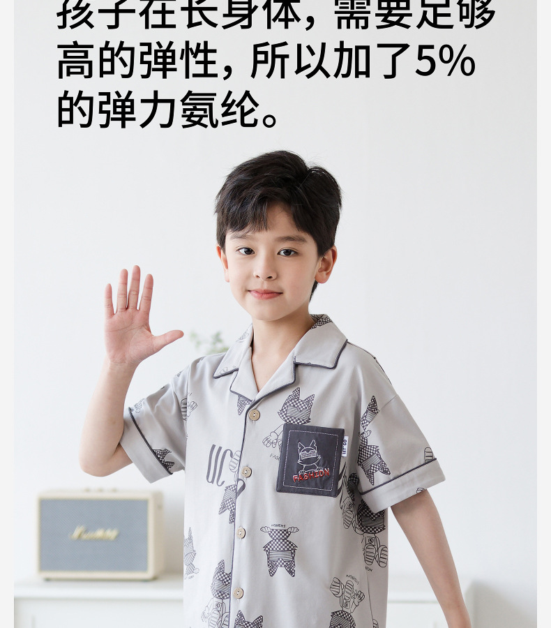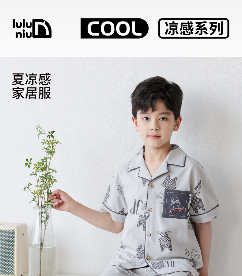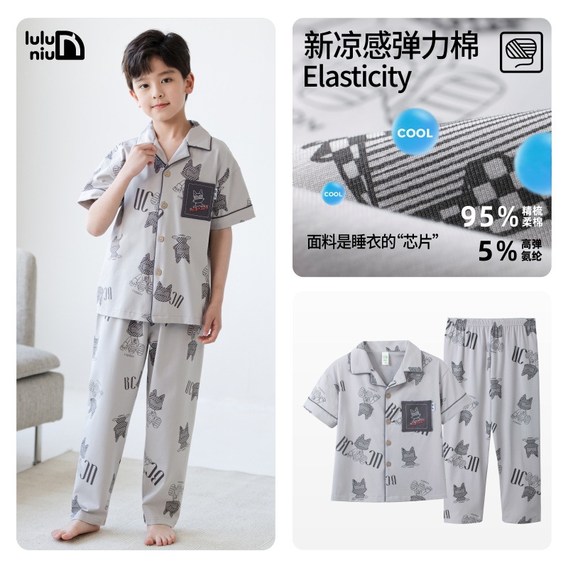 Luluniu 2025 새로운 여름 소년 잠옷 순수 코튼 반팔 바지 정장 얇은 에어컨 어린이 가정 의류