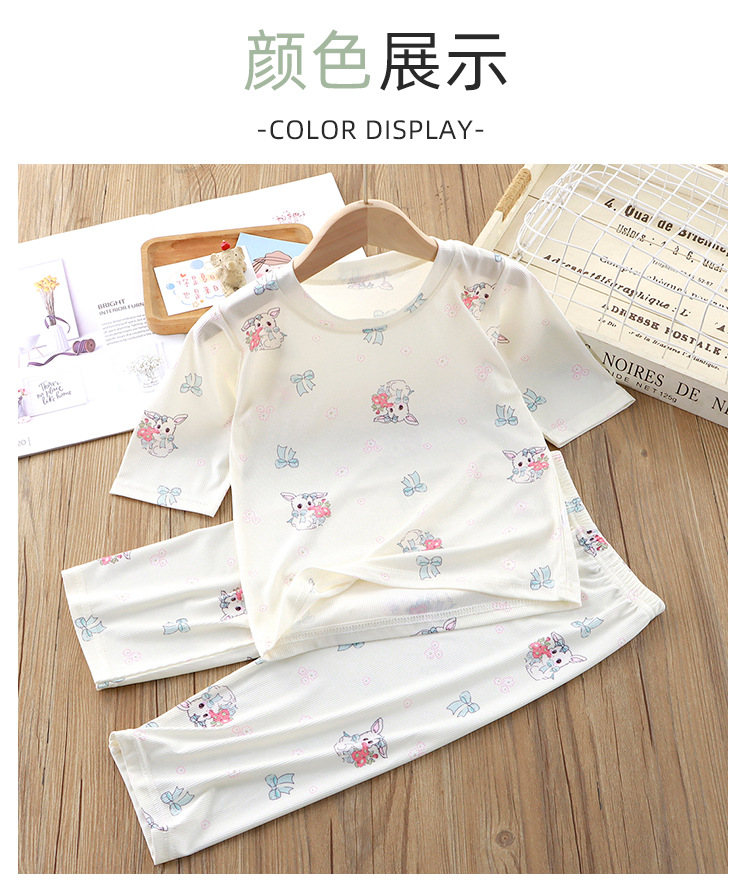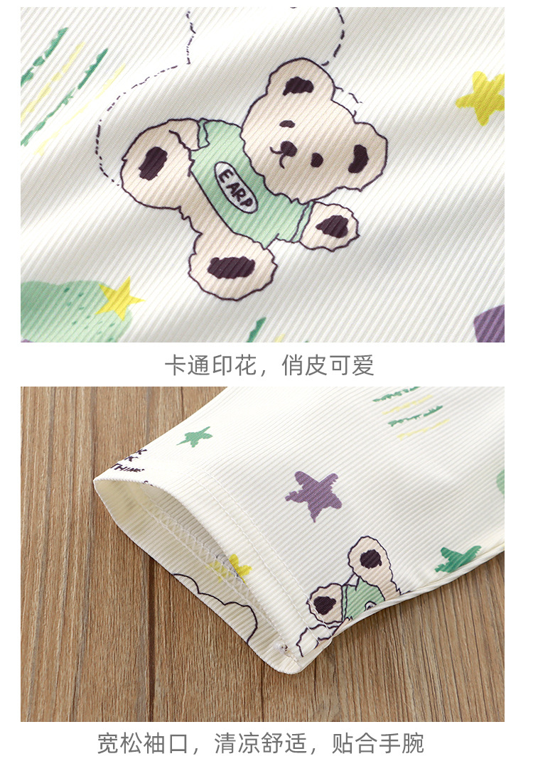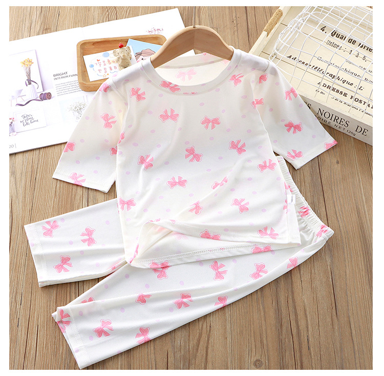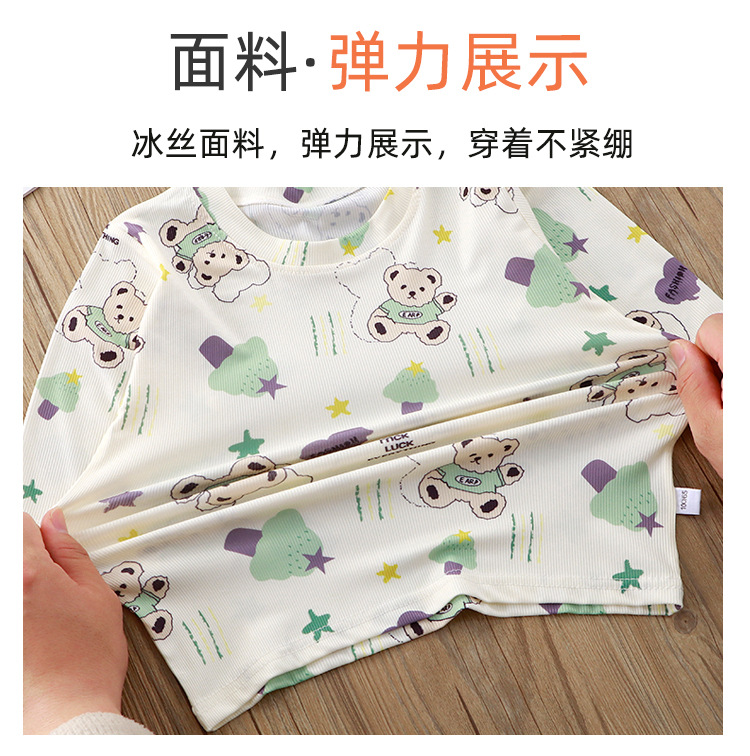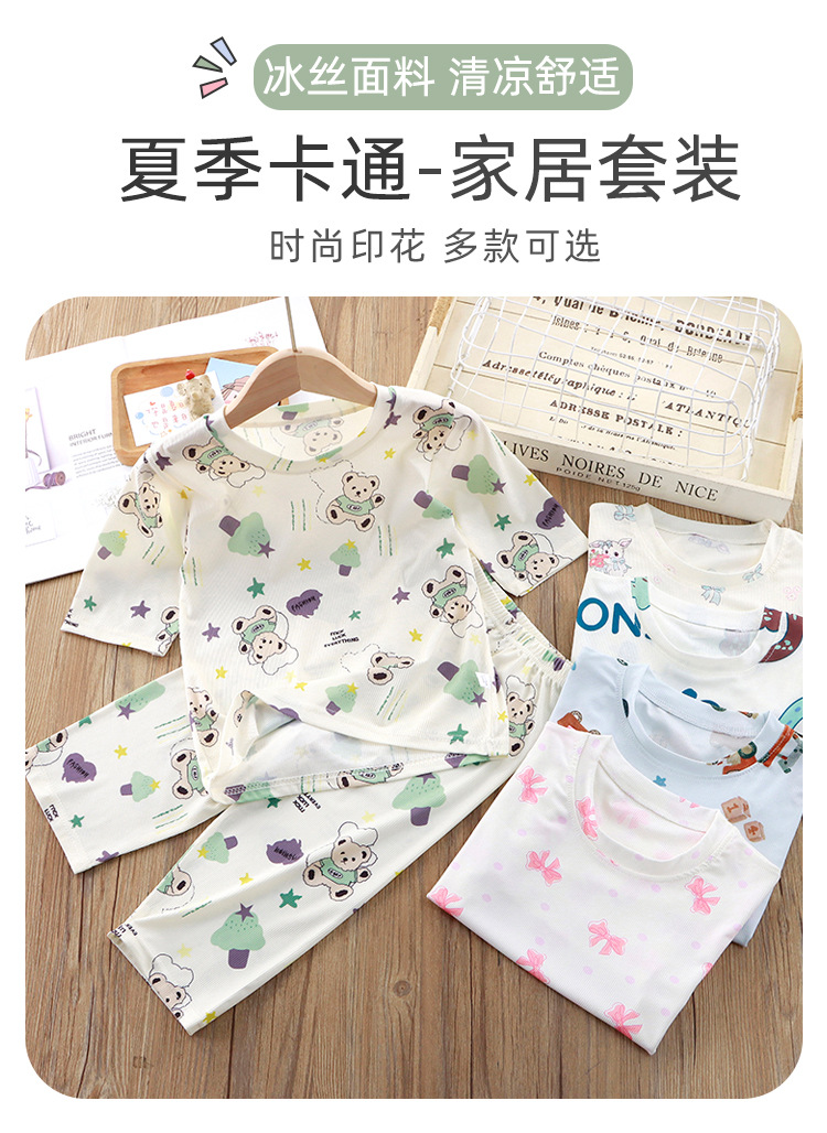 어린이 잠옷 세트 여름 반소매 여아 에어컨 의류 만화 인쇄 아이스 실크 소년 아기의 집 옷 파자마 바지