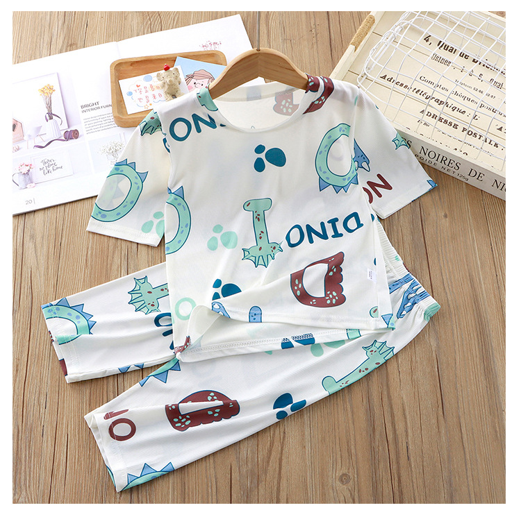 어린이 잠옷 세트 여름 반소매 여아 에어컨 의류 만화 인쇄 아이스 실크 소년 아기의 집 옷 파자마 바지스토어 가기