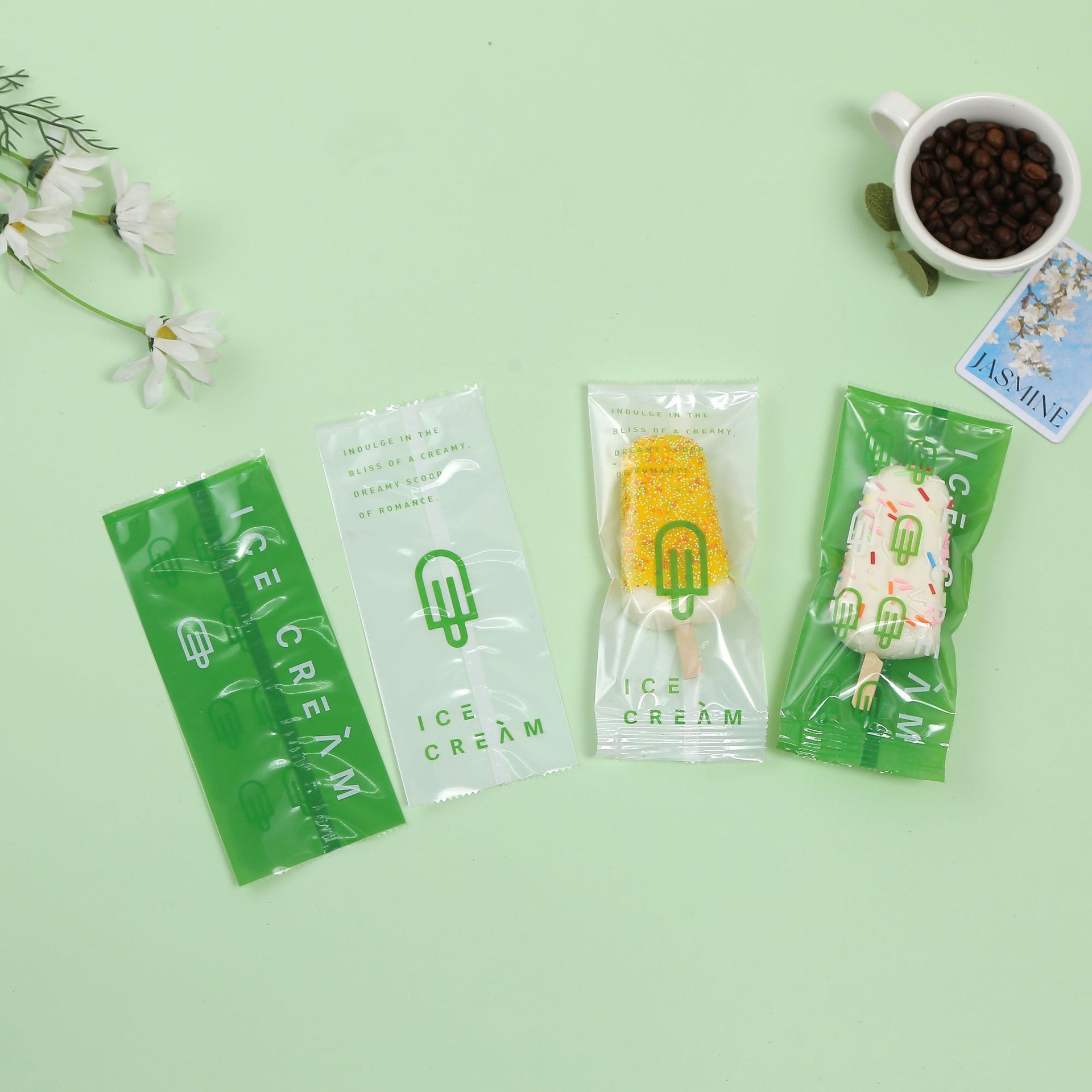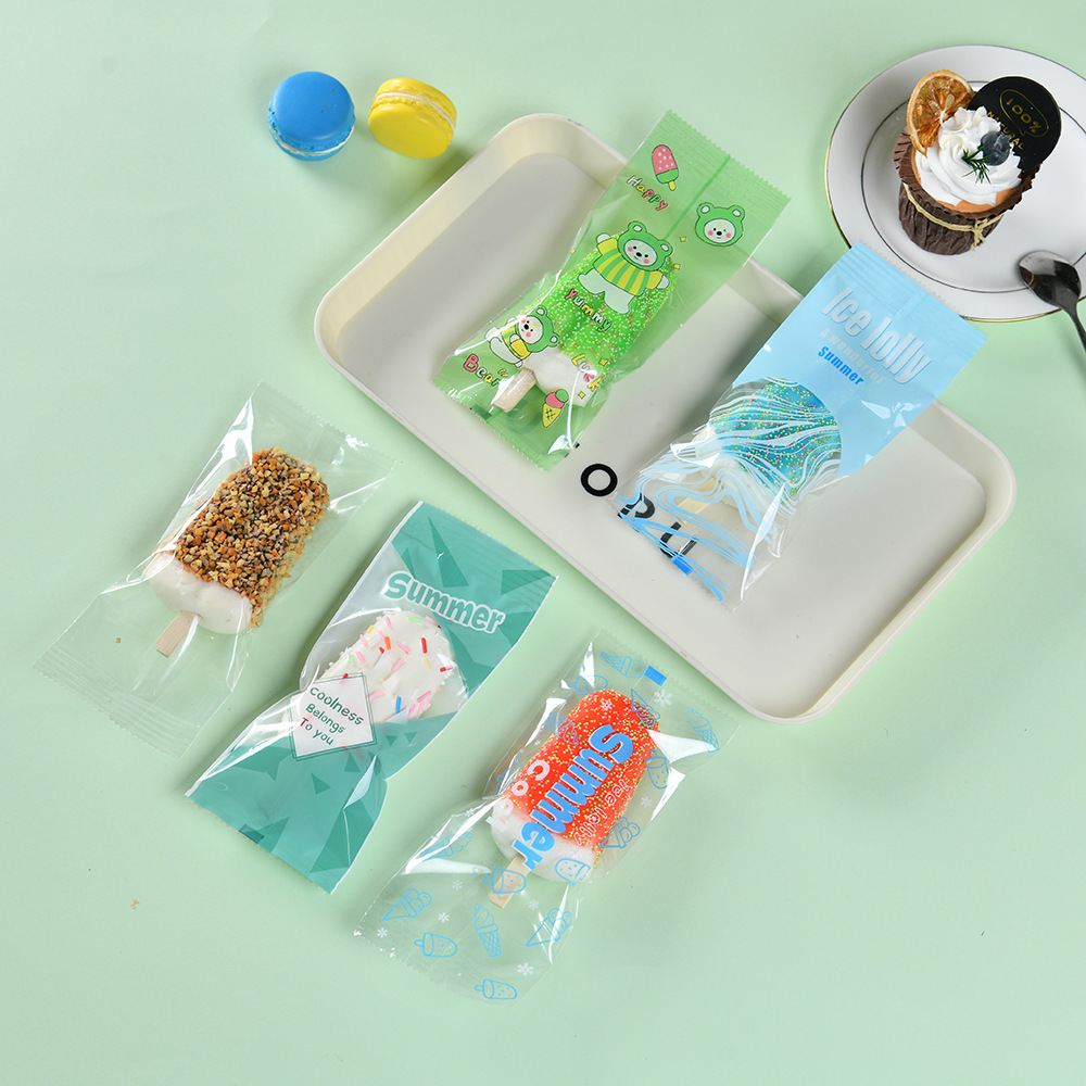 새로운 만화 낙서 아이스크림 포장 가방 수제 아이스 크림 기계 가방 수제 투명 아이스크림 포장 가방