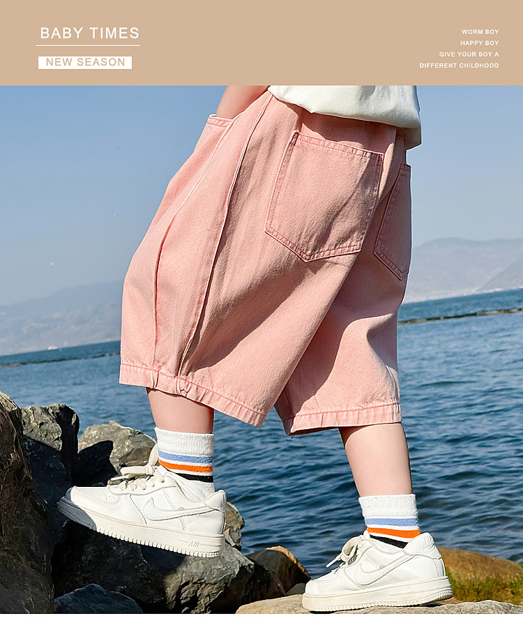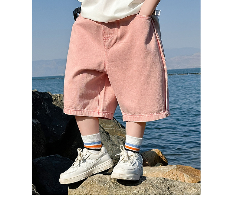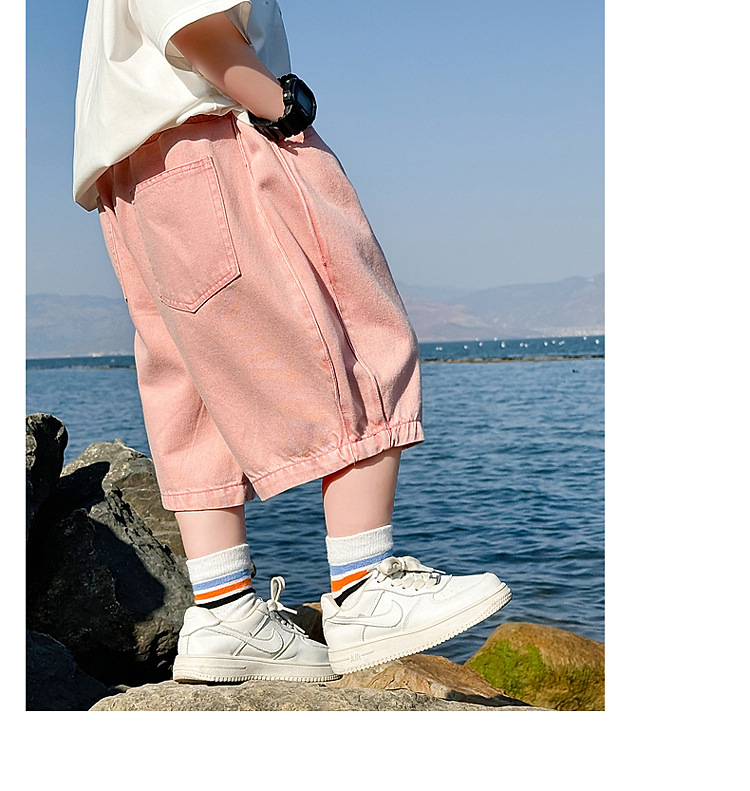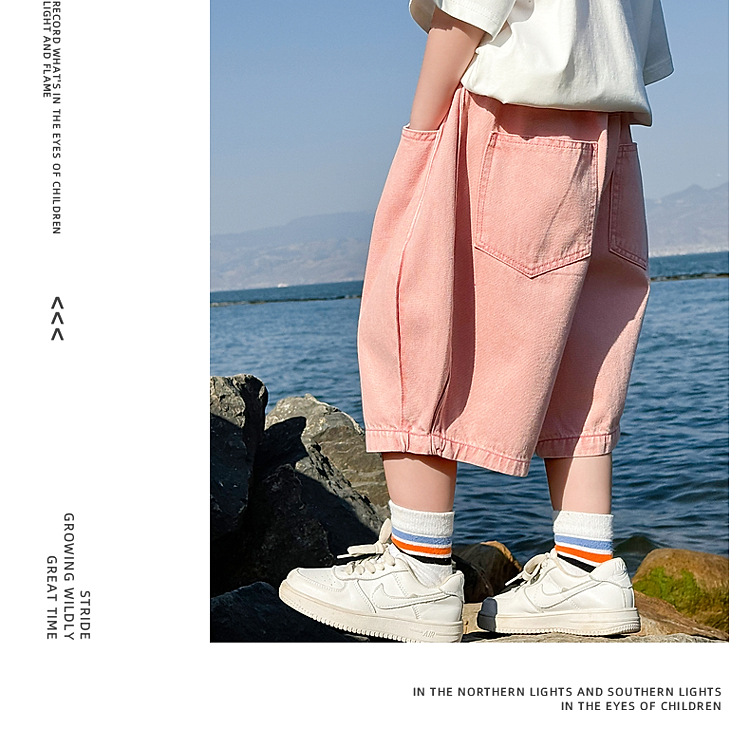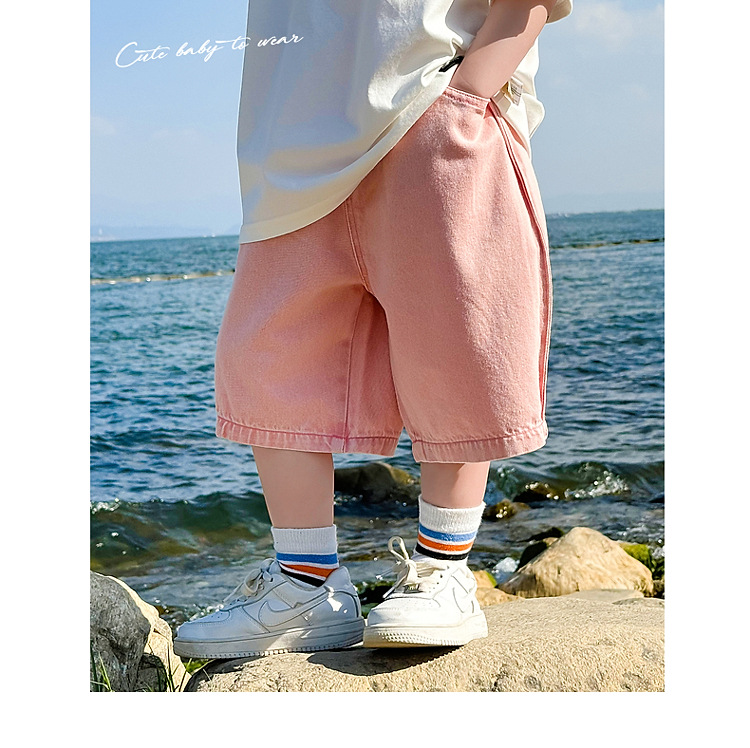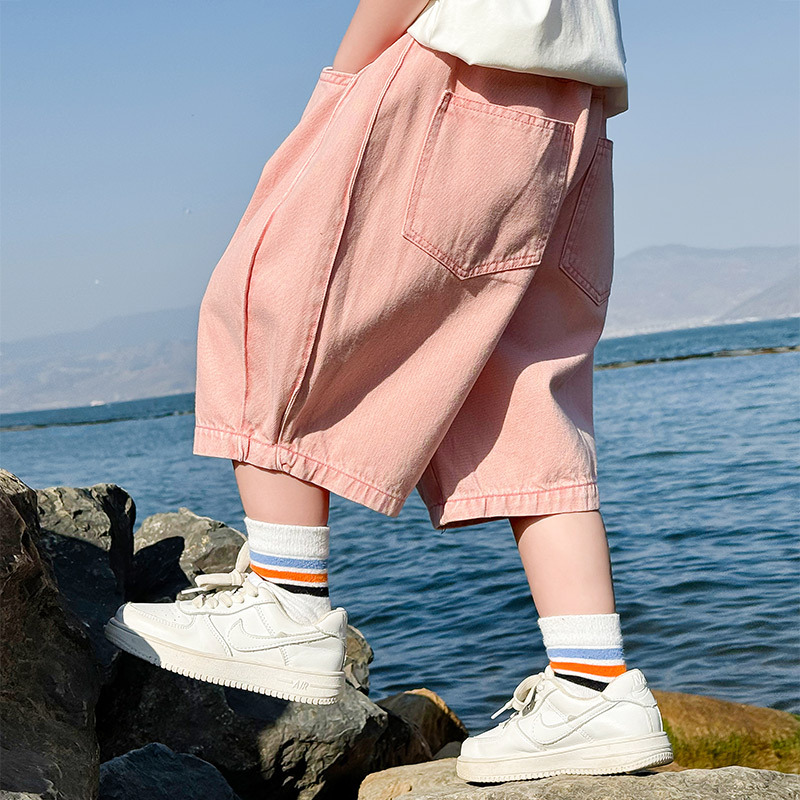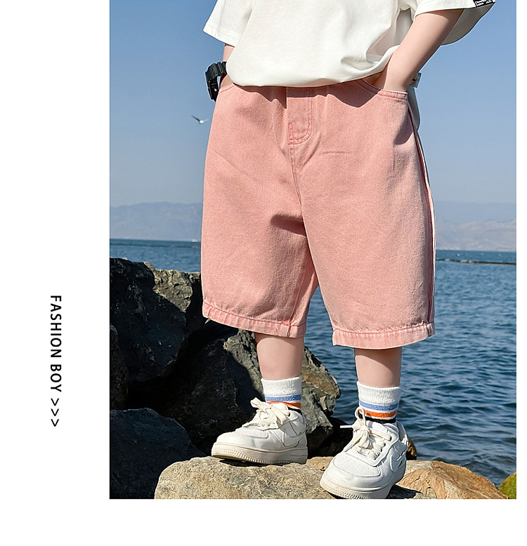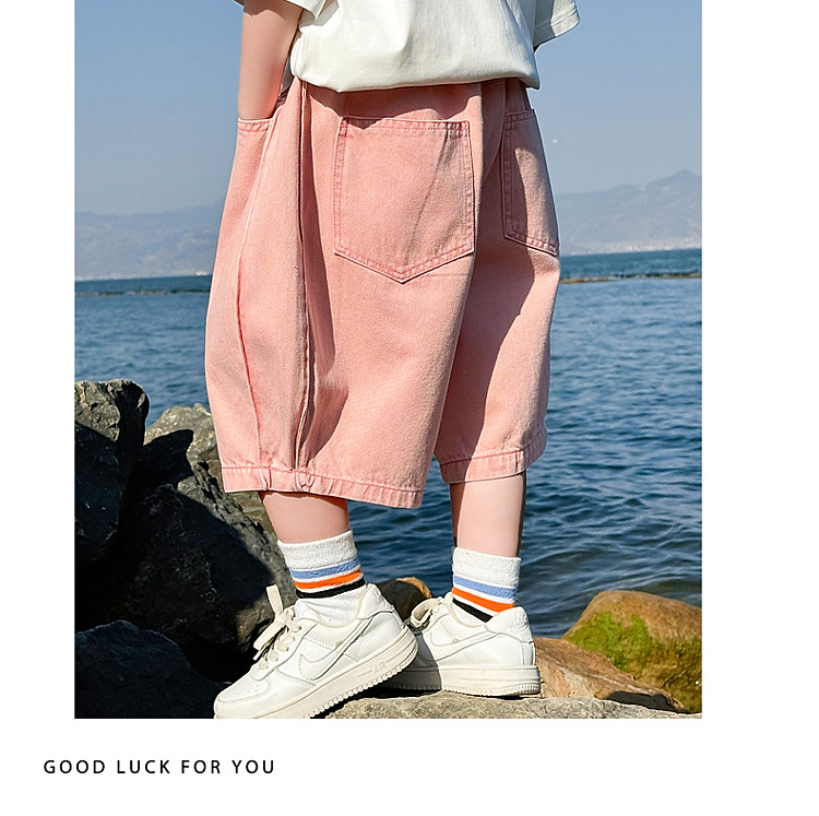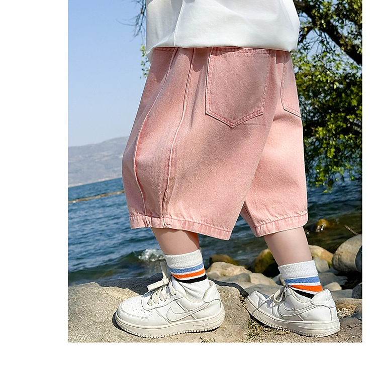 소년 청바지 여름 2025 새로운 어린이 여름 핑크 거리 바지 소년 느슨한 자른 바지 유행스토어 가기