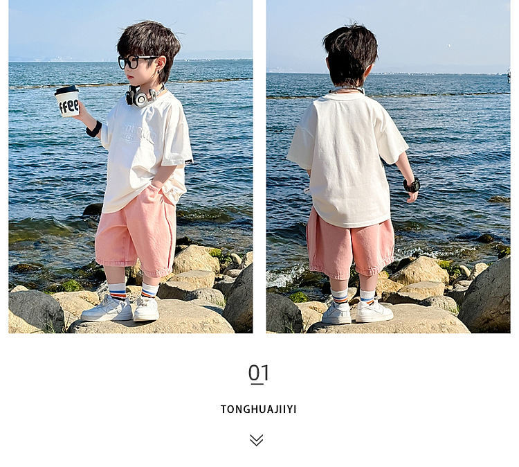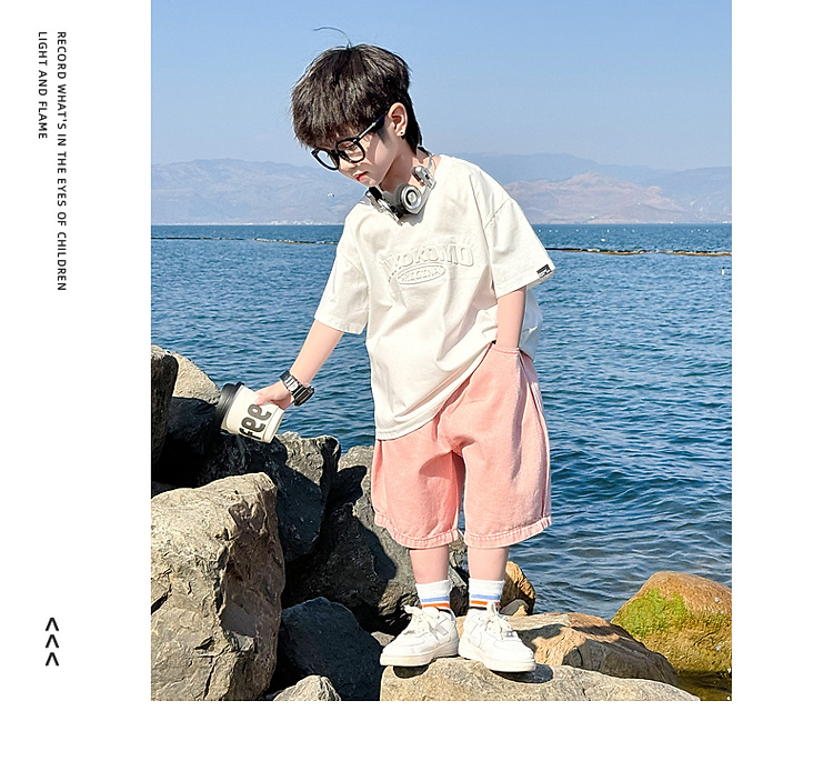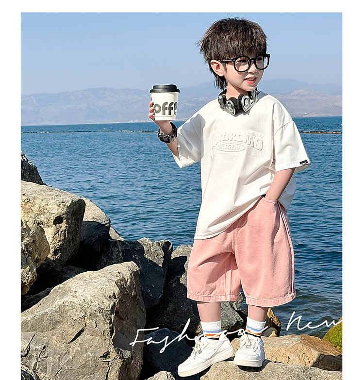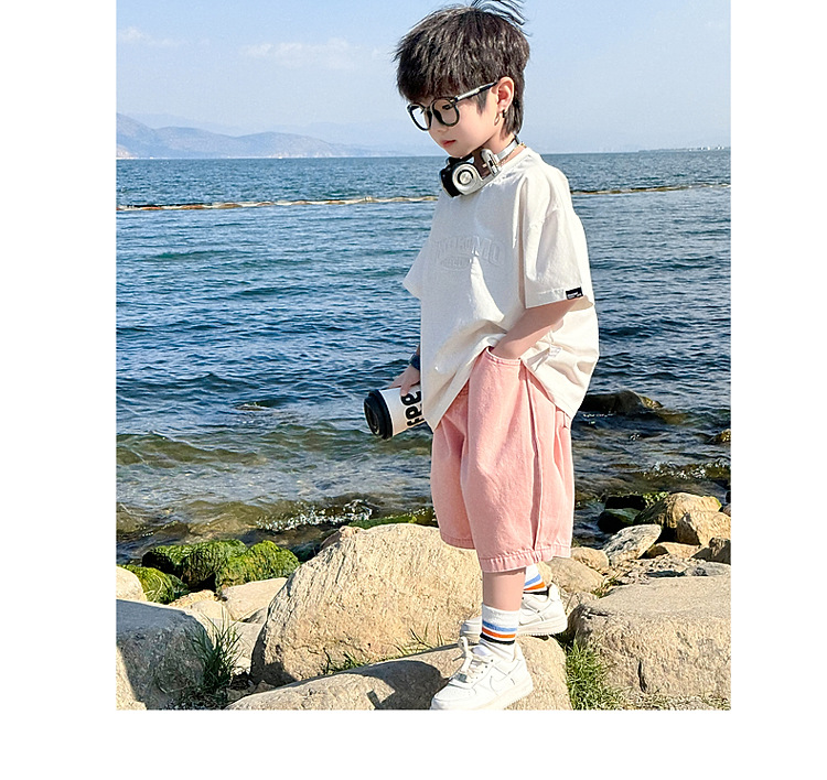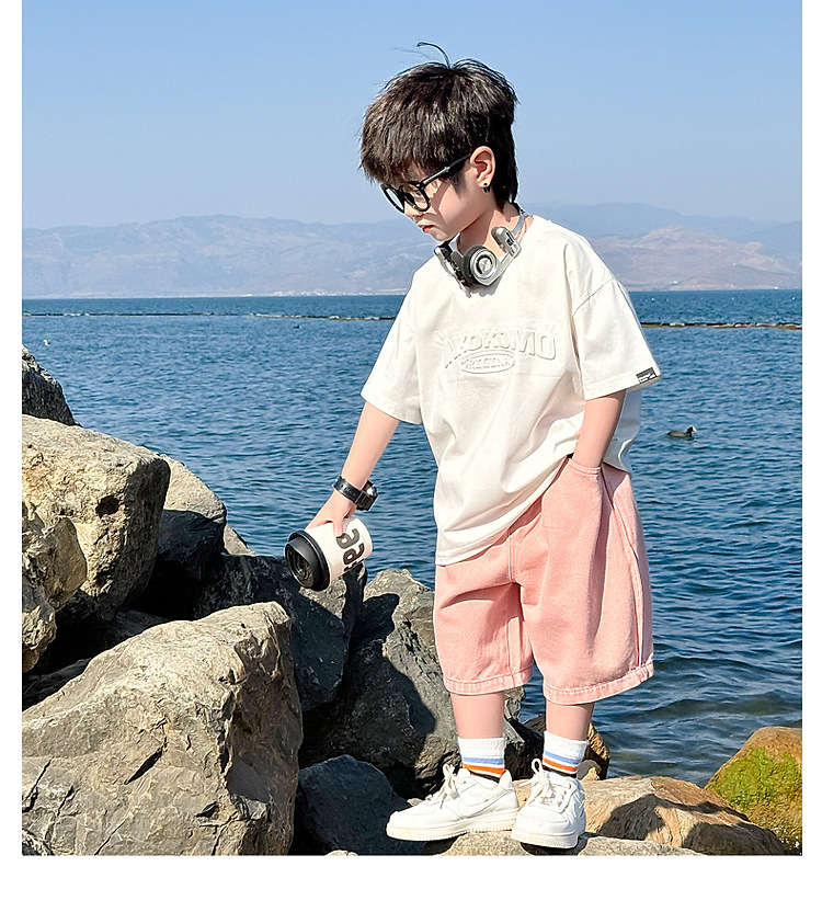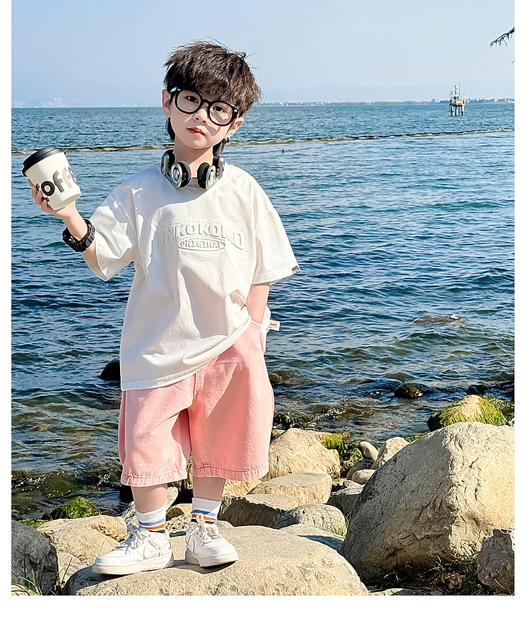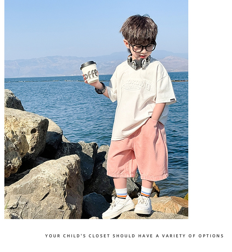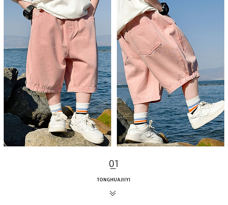 소년 청바지 여름 2025 새로운 어린이 여름 핑크 거리 바지 소년 느슨한 자른 바지 유행스토어 가기