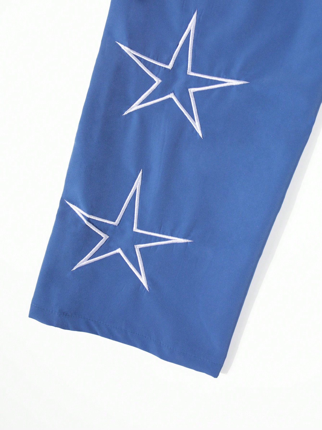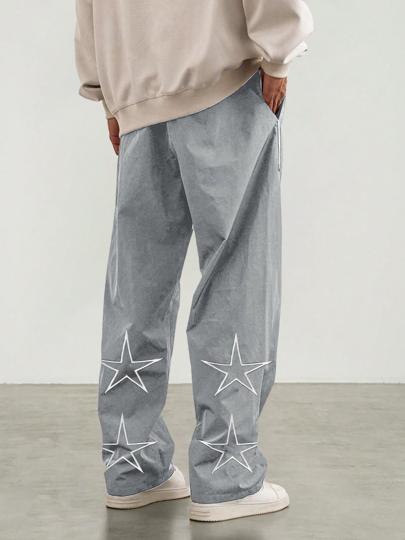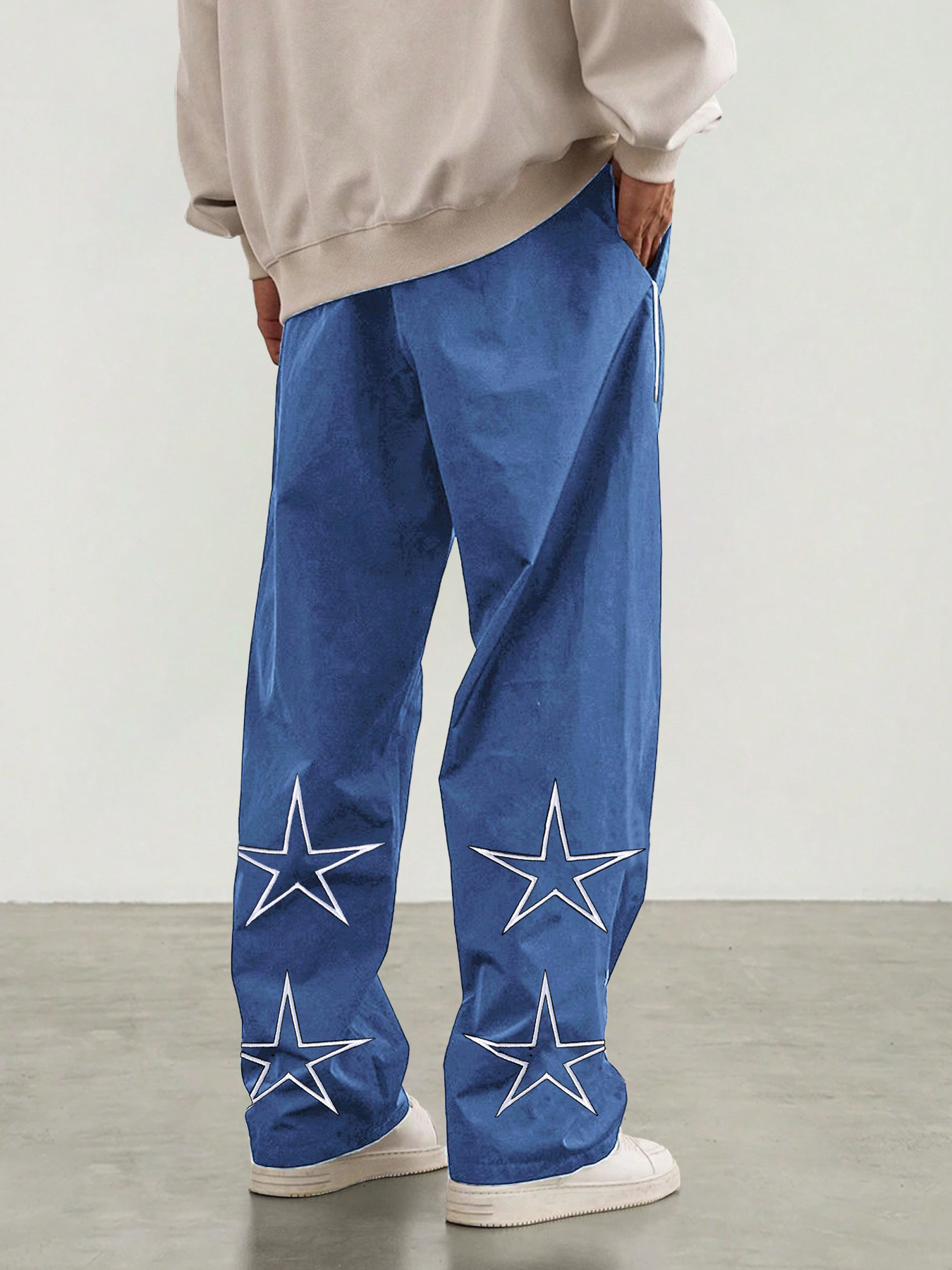 아마존 국경 유럽 및 미국 캐주얼 바지 남자 2025 년 새로운 봄과 여름 미국 복고풍 자수 직선 바지 8689