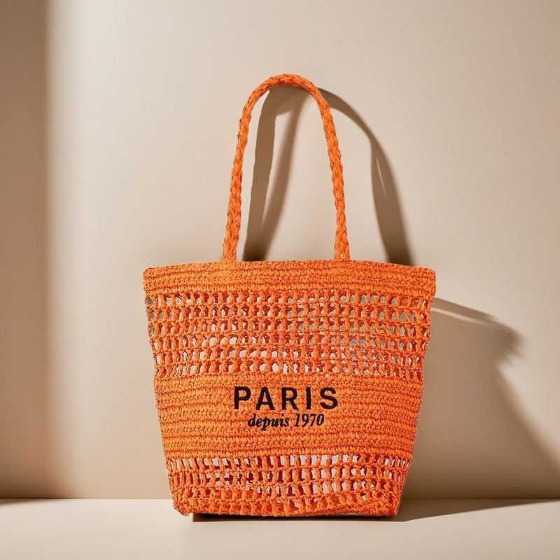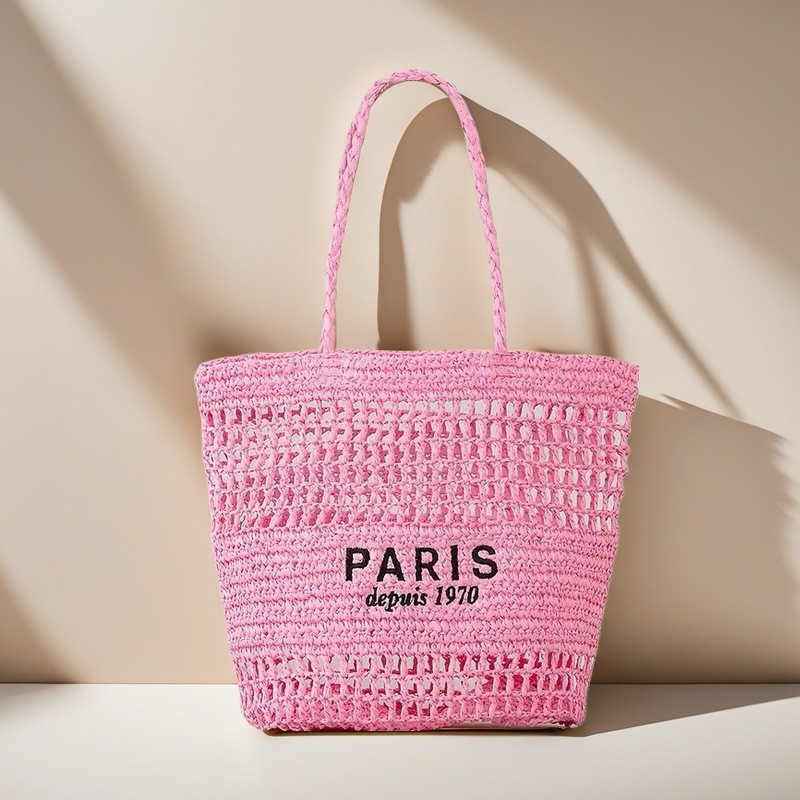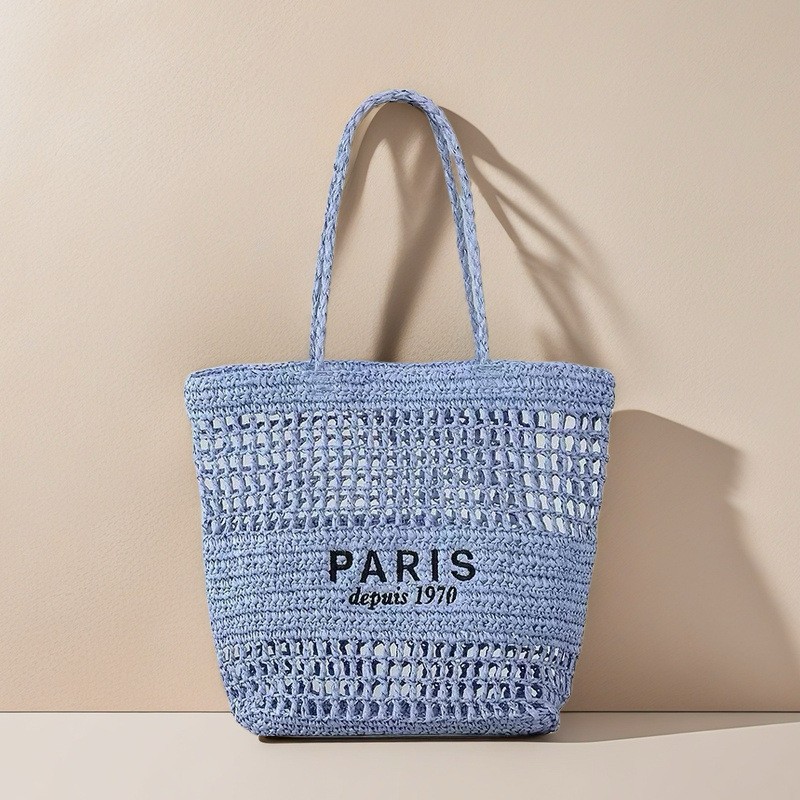 새 편지 자수 밀짚 가방 중공 수제 짠 가방 대용량 토트 백 홀리데이 비치 백 숄더 백