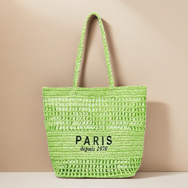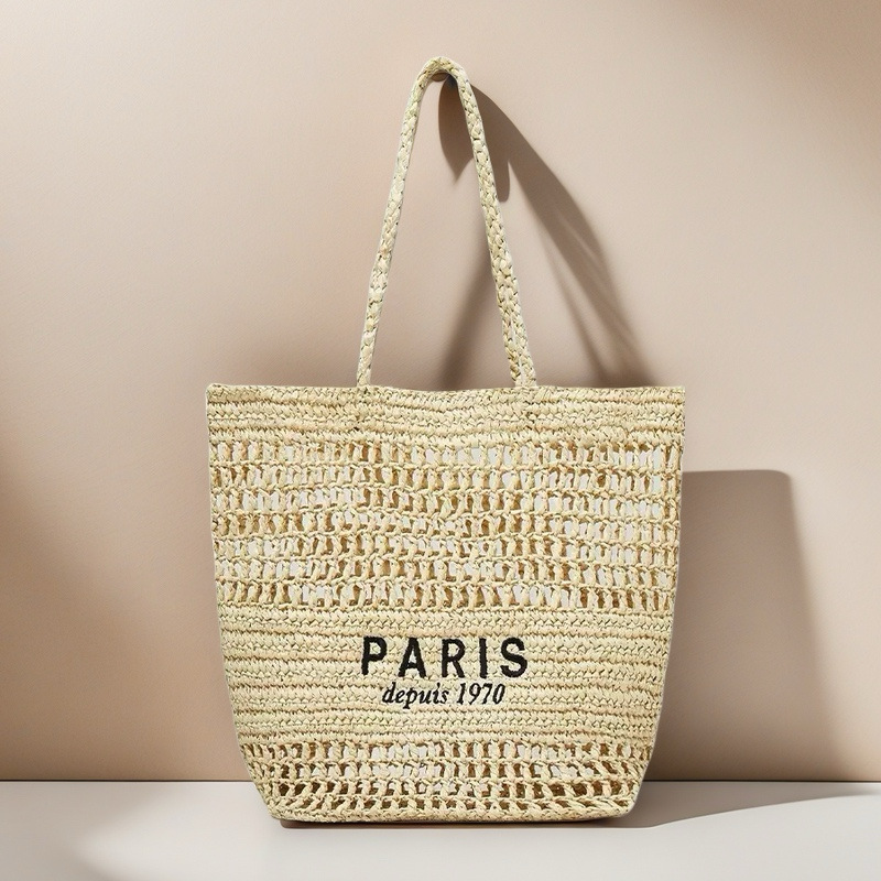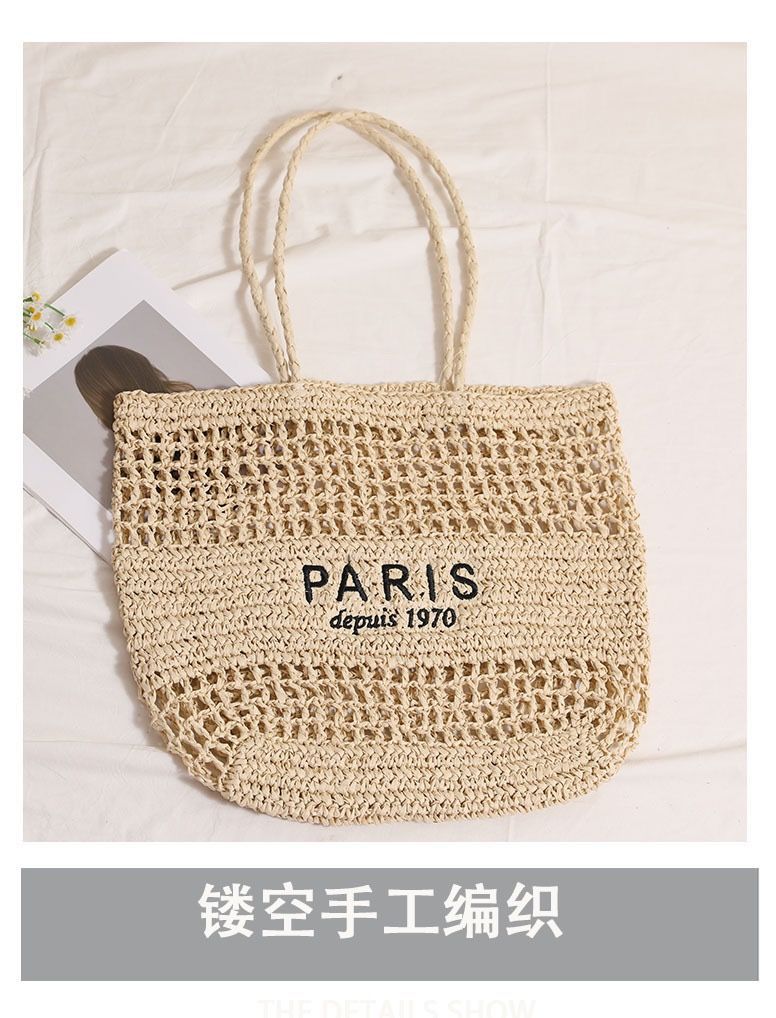 새 편지 자수 밀짚 가방 중공 수제 짠 가방 대용량 토트 백 홀리데이 비치 백 숄더 백스토어 가기