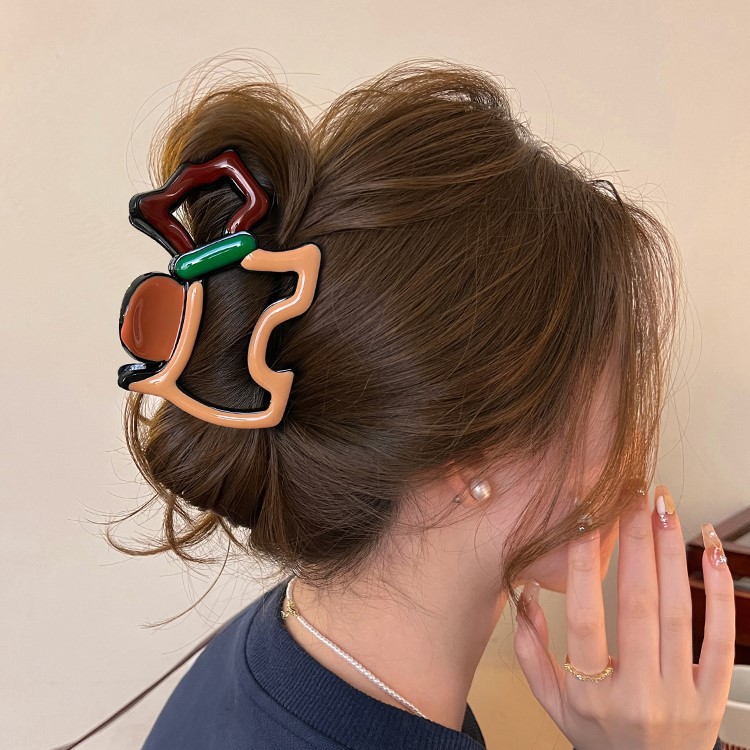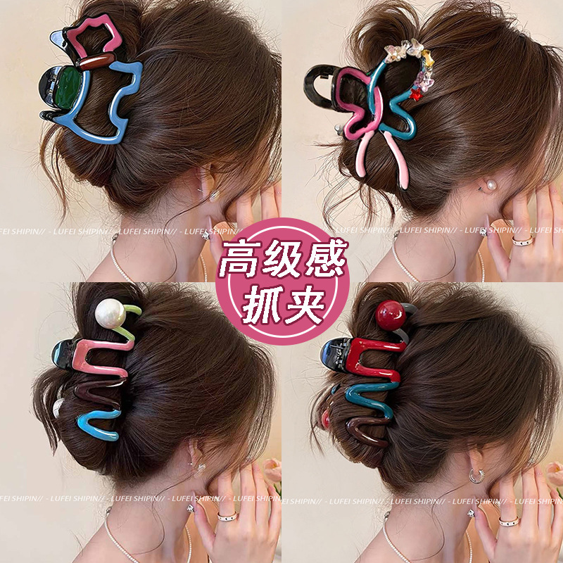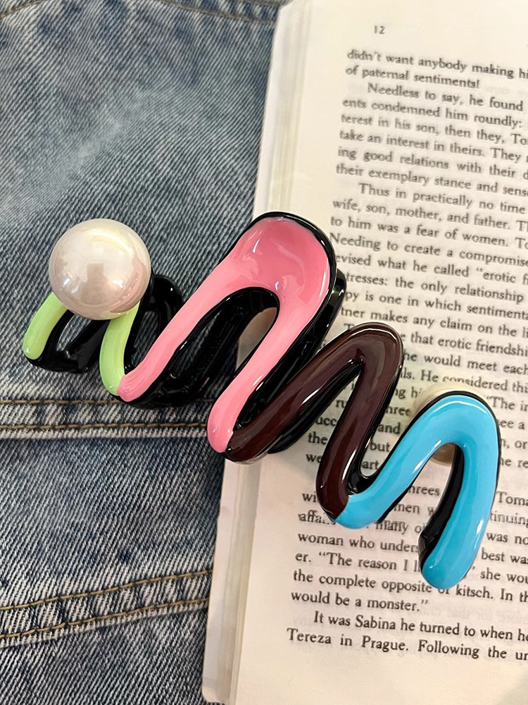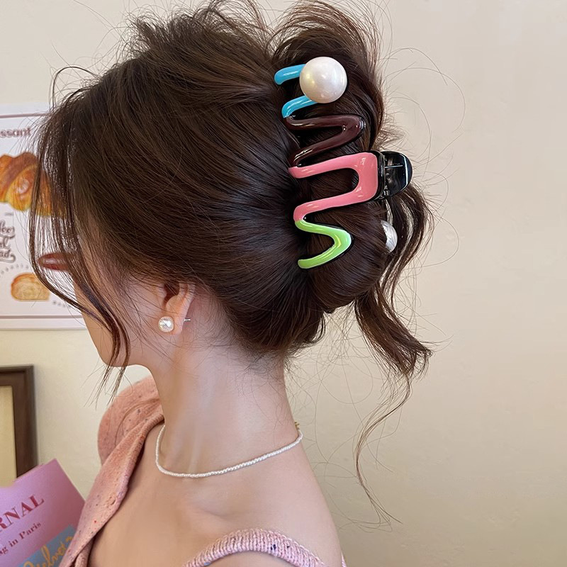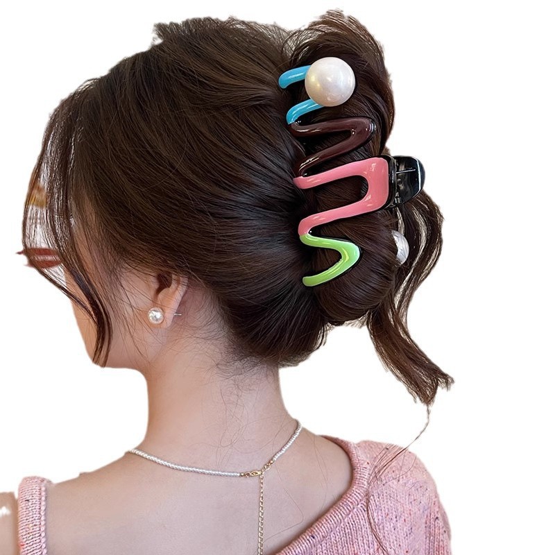 간단한 웨이브 컬러 잡아 클립 귀여운 헤어 클립 큰 절반 길이 헤어 클립 멀티 진주 상어 클립 여성의 하이 엔드 패션