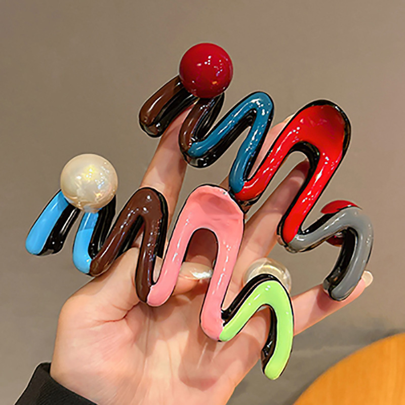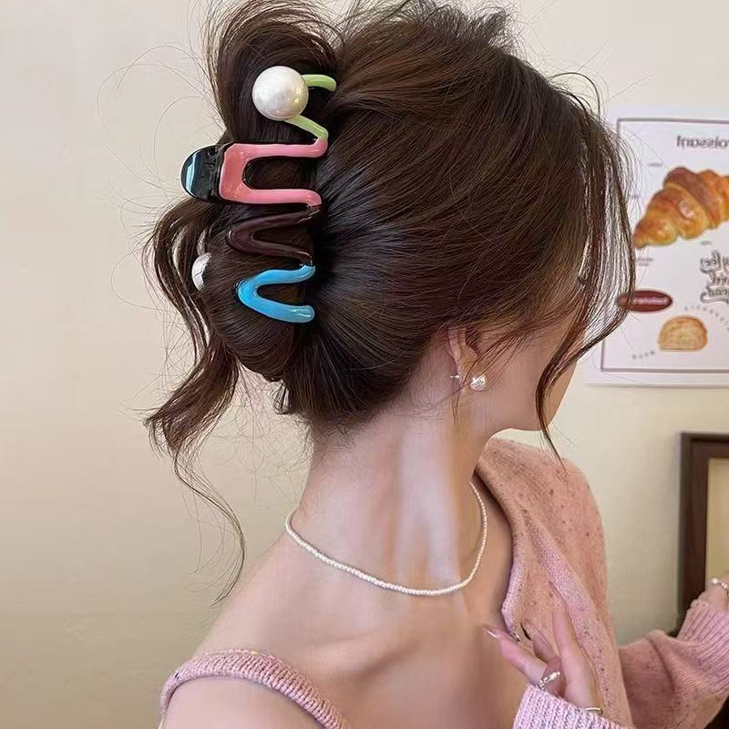 간단한 웨이브 컬러 잡아 클립 귀여운 헤어 클립 큰 절반 길이 헤어 클립 멀티 진주 상어 클립 여성의 하이 엔드 패션스토어 가기