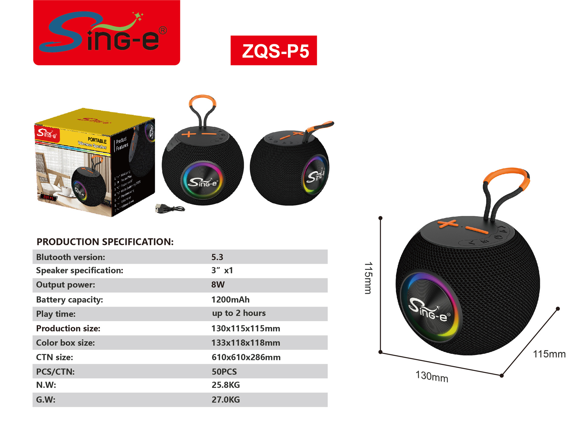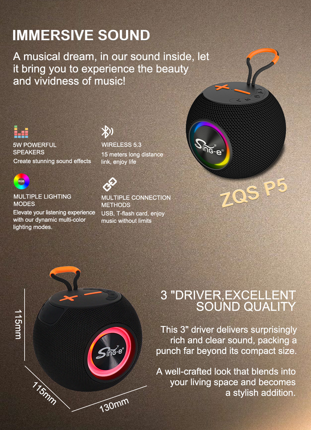 SING-E ZQS-P5 블루투스 스피커 큰 볼륨 방수 무선 오디오 서브 우퍼 3d 서라운드 국경 공장