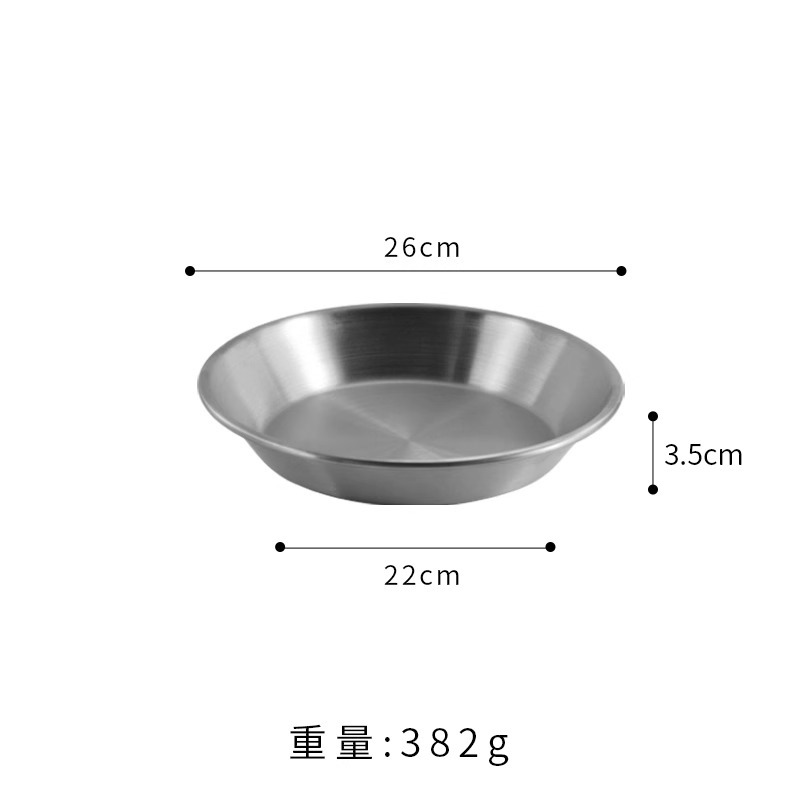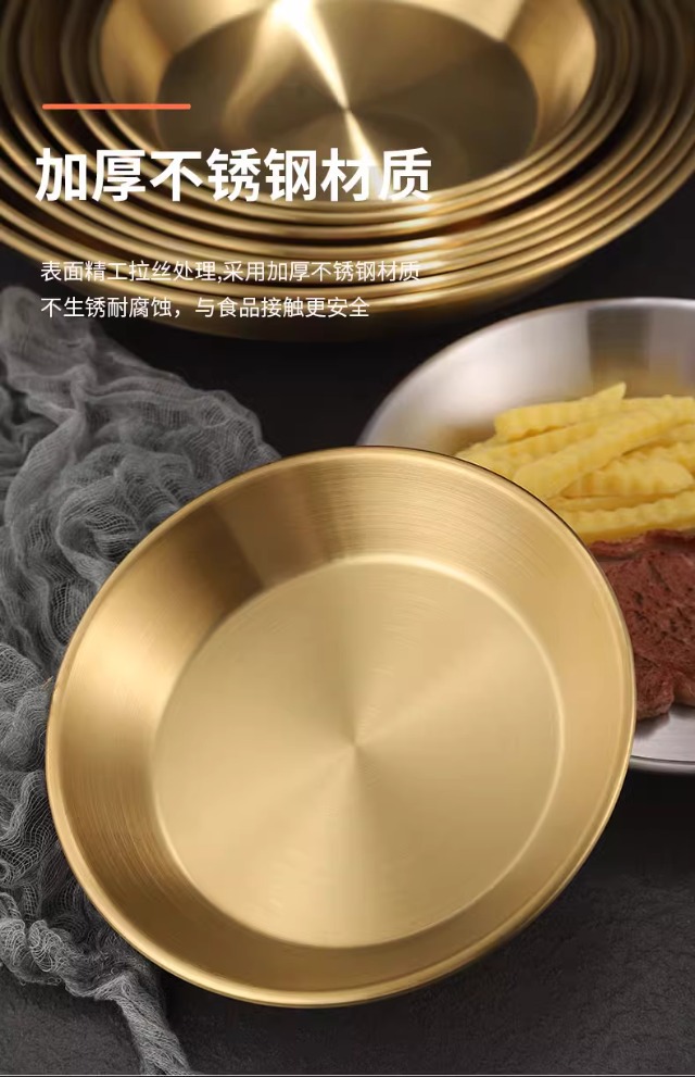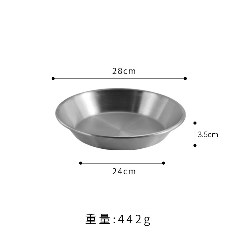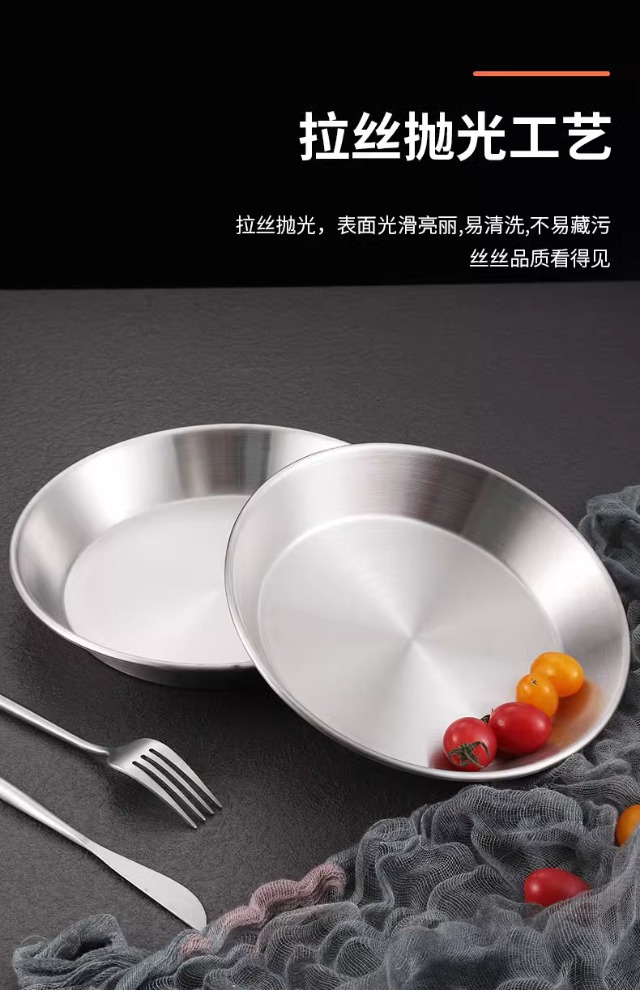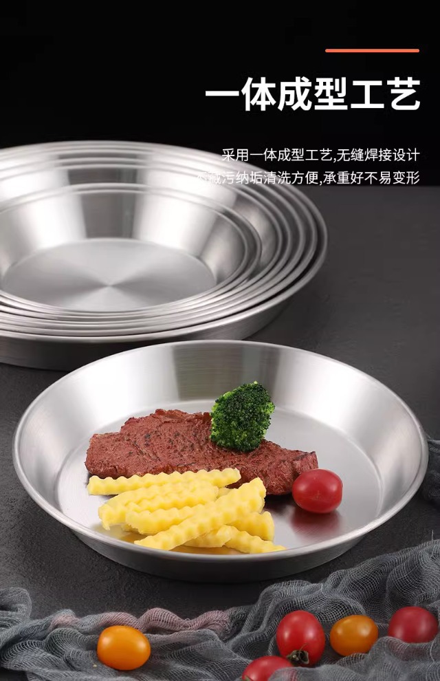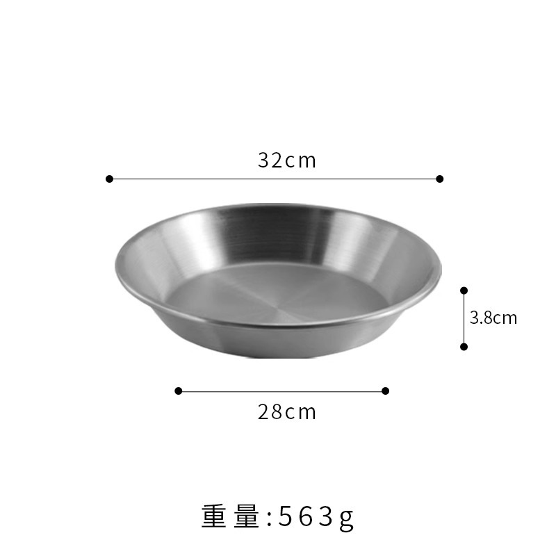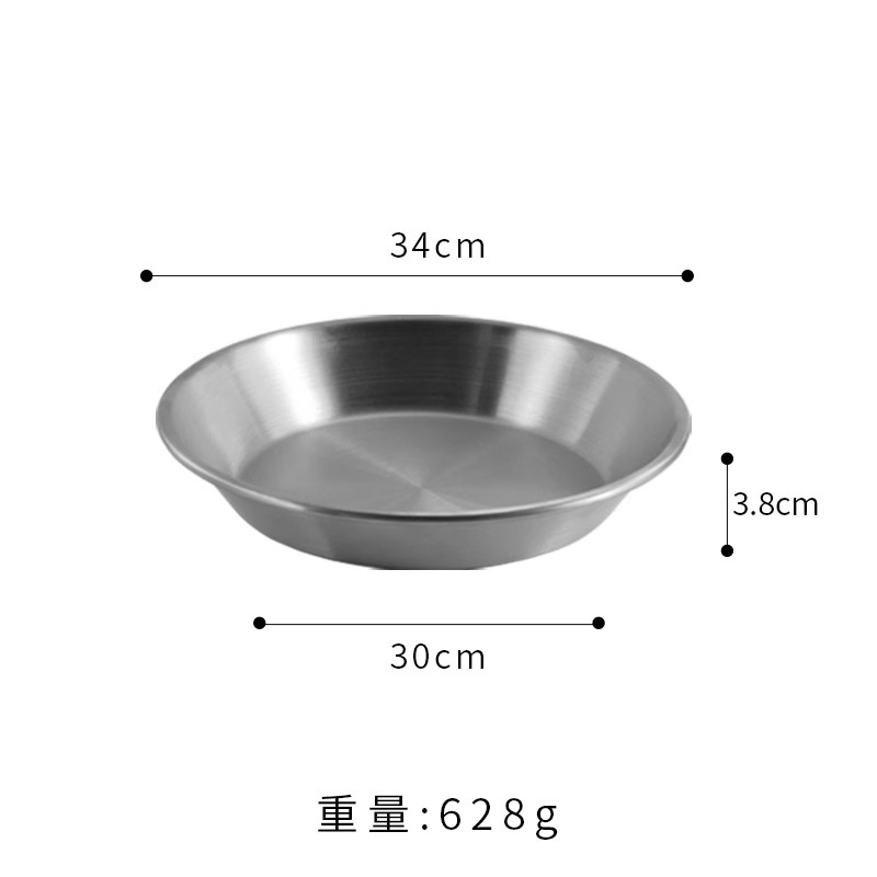 국경 간 한국 스테인레스 스틸 피자 접시 두꺼운 깊은 접시 원형 접시 대형 평면 접시 접시 페이스트리 접시 뷔페 접시스토어 가기