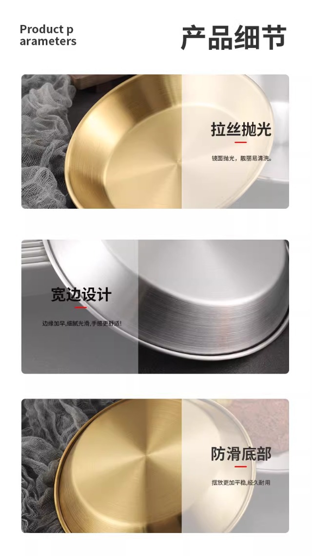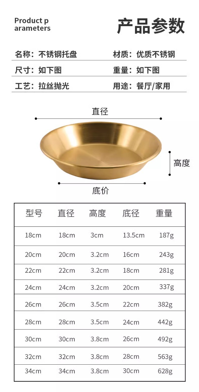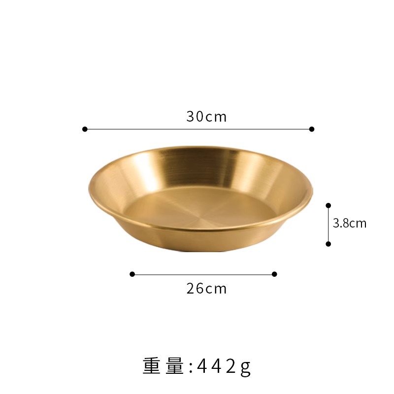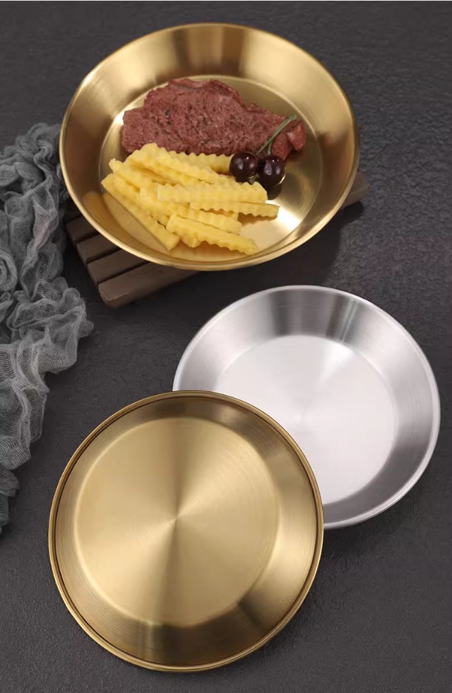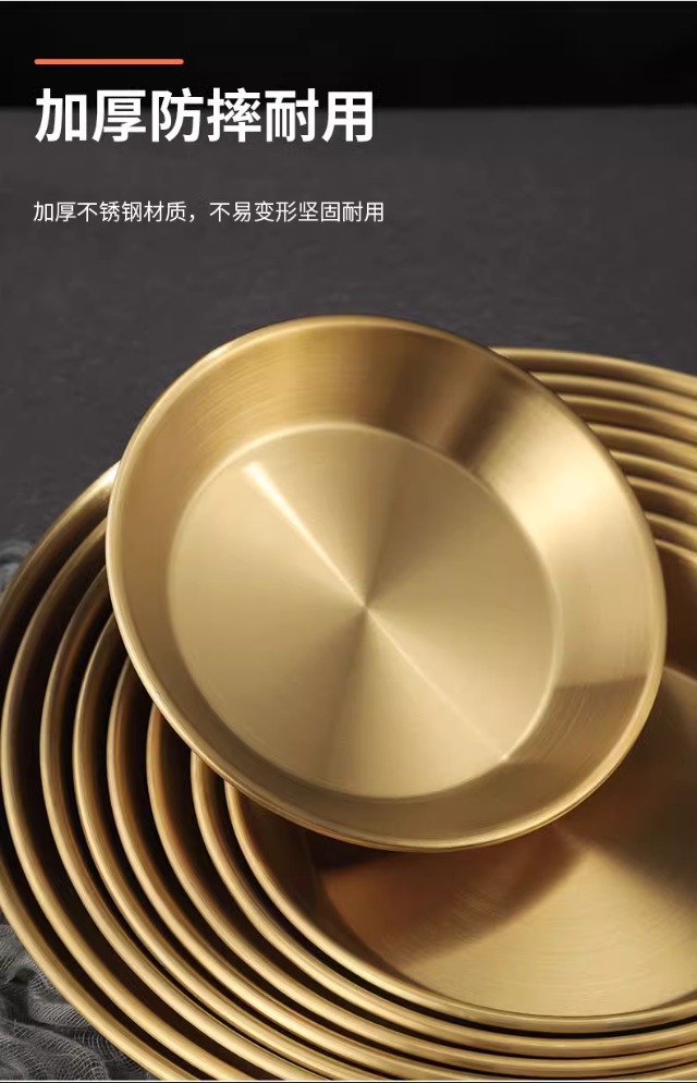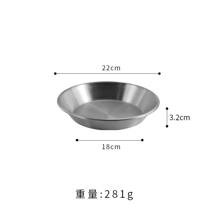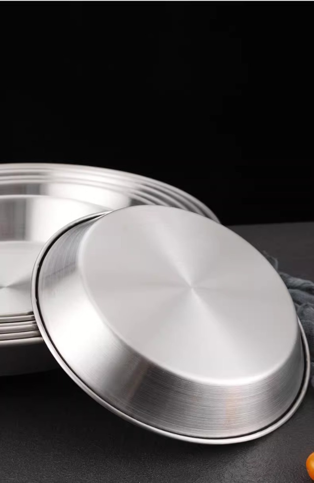 국경 간 한국 스테인레스 스틸 피자 접시 두꺼운 깊은 접시 원형 접시 대형 평면 접시 접시 페이스트리 접시 뷔페 접시스토어 가기