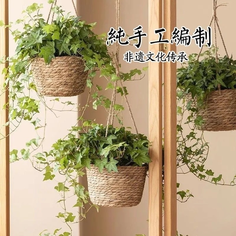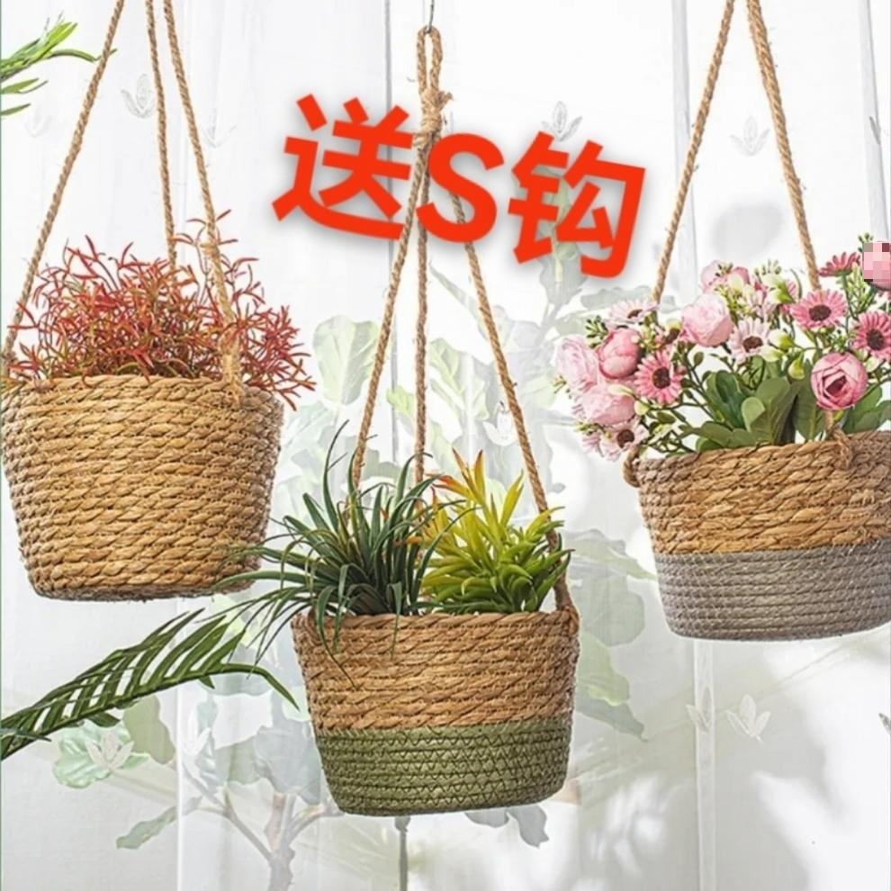 ∝【2002명이 호평】밀짚 걸이 바구니 화분 낚시 포토스 화분 다육 화분 발코니 걸이