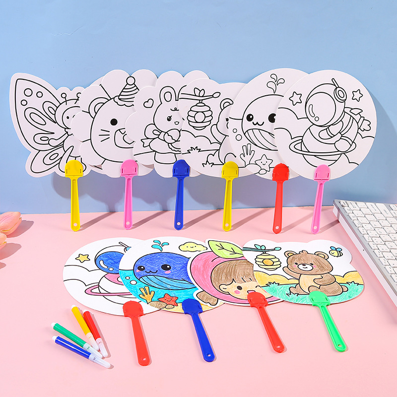 어린이 만화 DIY 낙서 팬 유치원 수제 작은 선물 초등학생 그린 작은 팬 도매