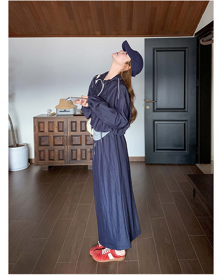 다크 블루 대학 스타일 캐주얼 세트 원피스 여성 2025 봄 새로운 디자인 센스 스포츠 스커트 투피스 세트