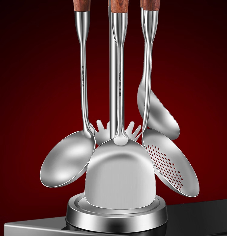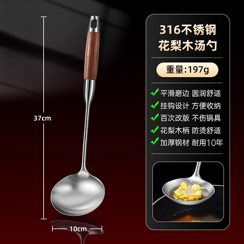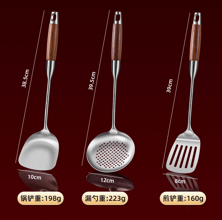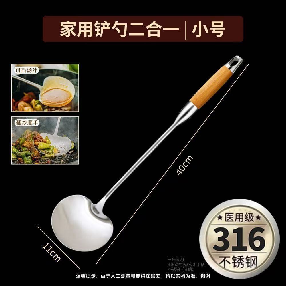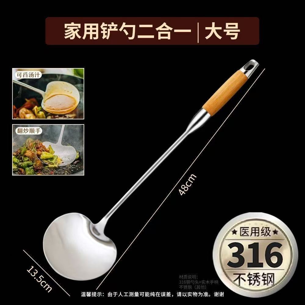 316 스테인레스 스틸 주걱 식품 등급 가정용 볶음 주걱 나무 손잡이 주걱 세트 두꺼운 긴 손잡이 철 주걱