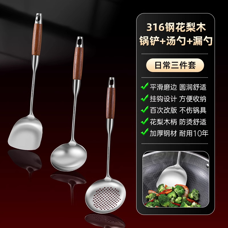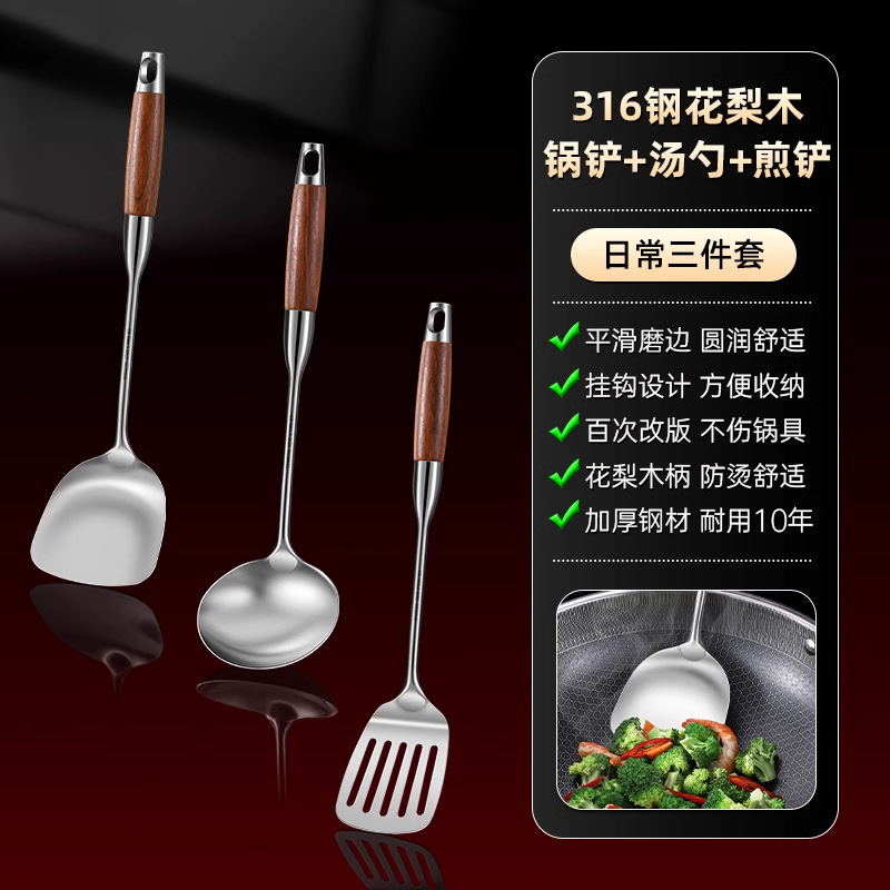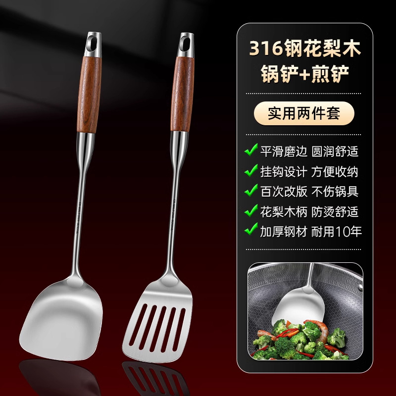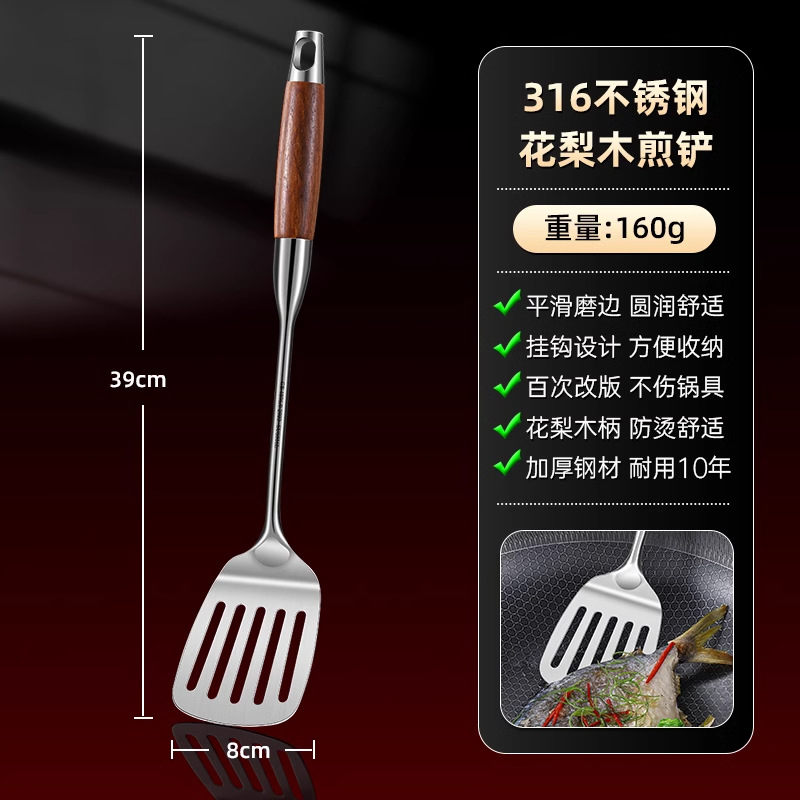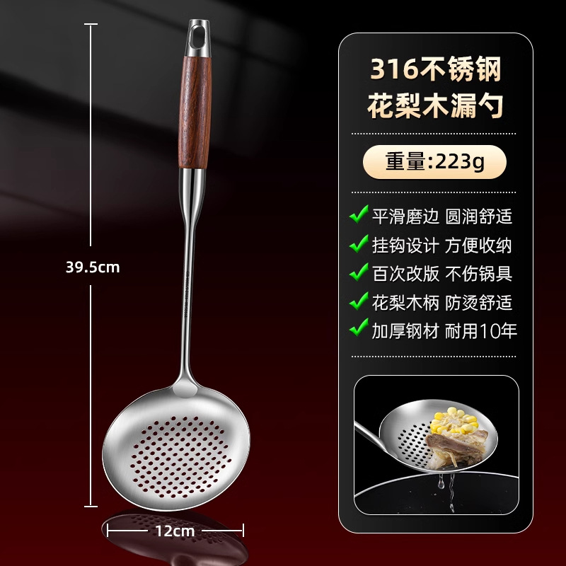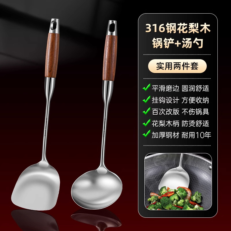 316 스테인레스 스틸 주걱 식품 등급 가정용 볶음 주걱 나무 손잡이 주걱 세트 두꺼운 긴 손잡이 철 주걱