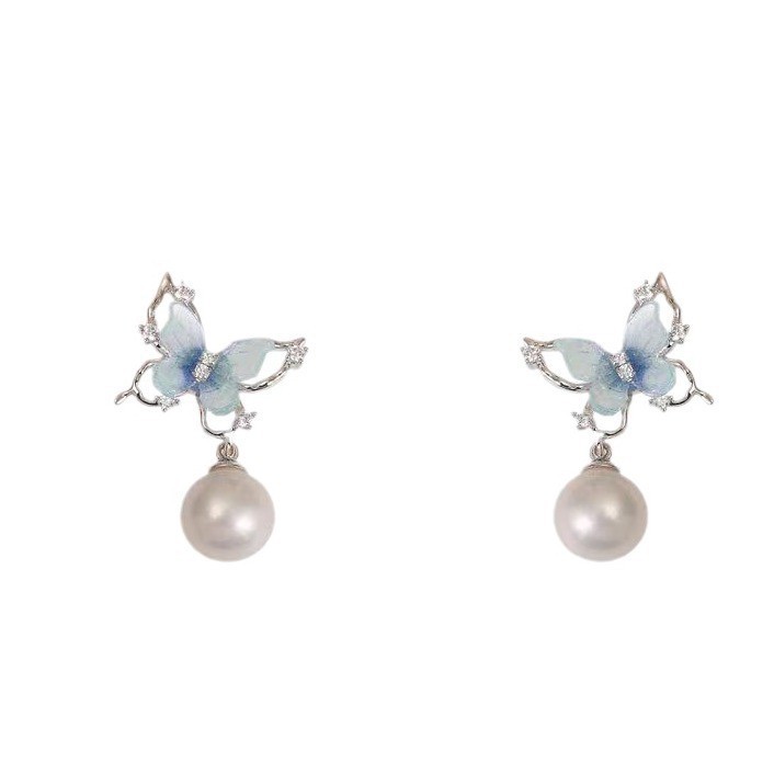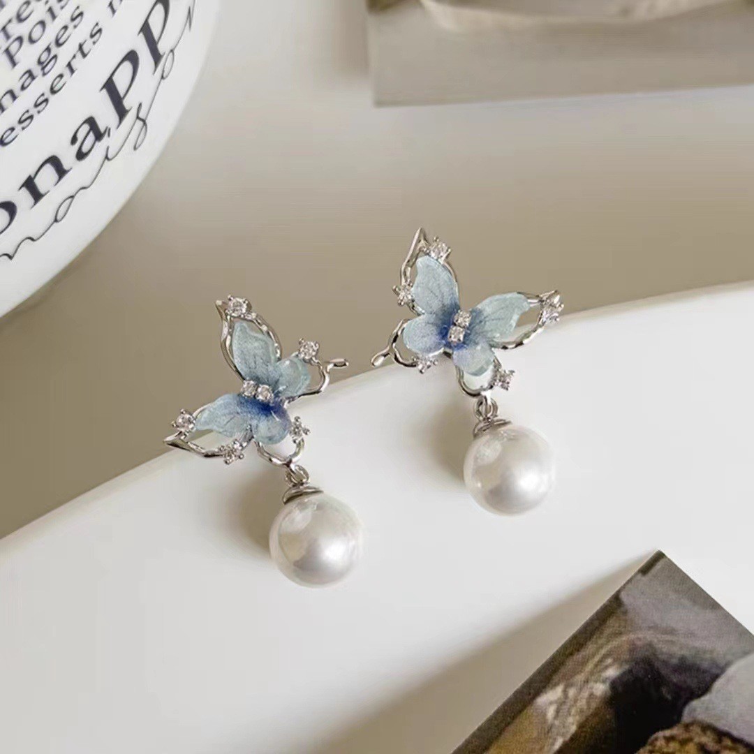 소녀들을 위한 신선하고 슈퍼 요정 나비 진주 귀걸이, 니치, 신선하고 가벼운 럭셔리, 새로운 달콤한 맞춤형 귀걸이 및 귀걸이스토어 가기