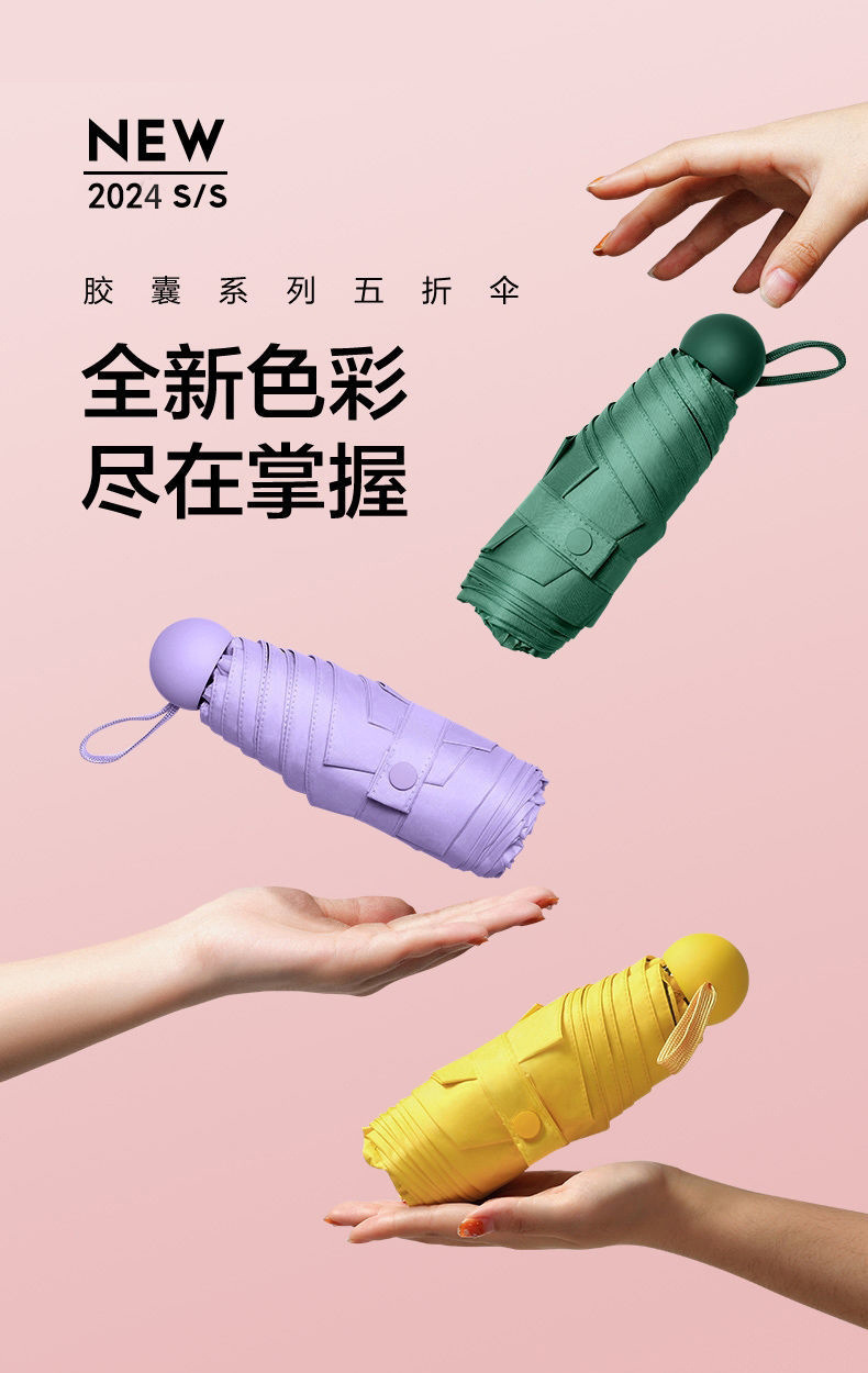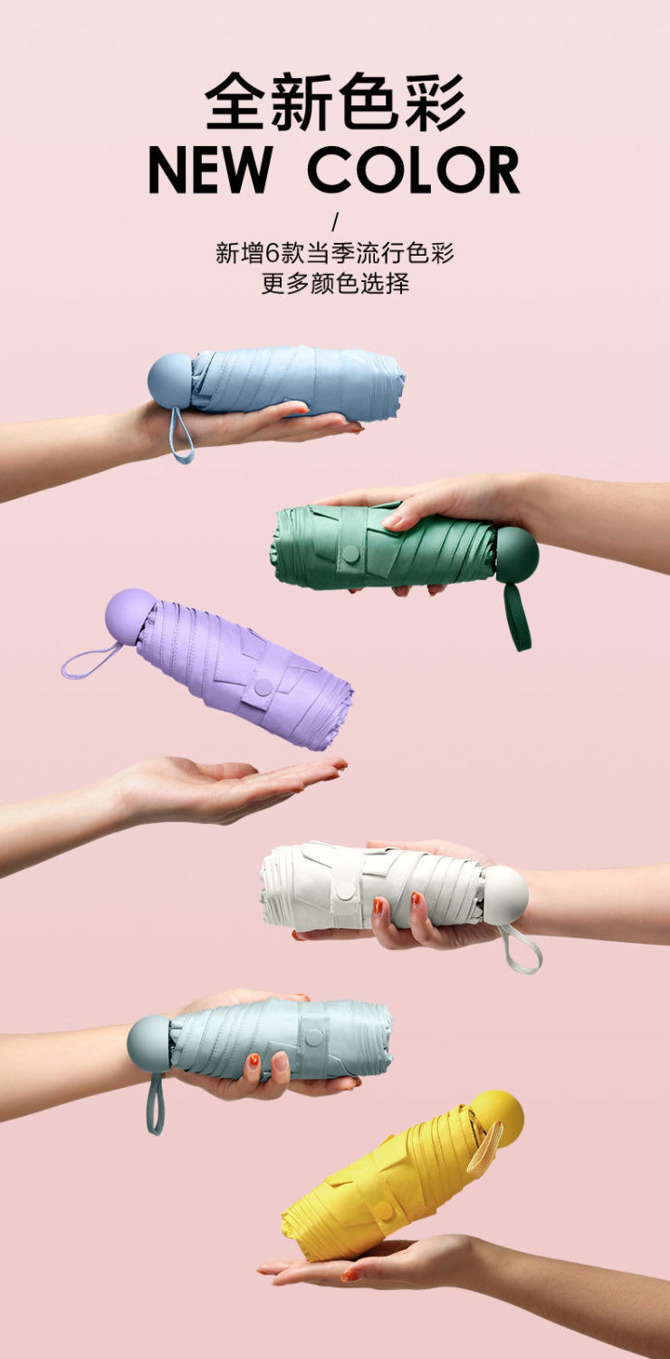 캡슐 태양 우산 여성용 자외선 차양 햇빛 우산 듀얼 미니 5 접이식 경량 소형 휴대용스토어 가기