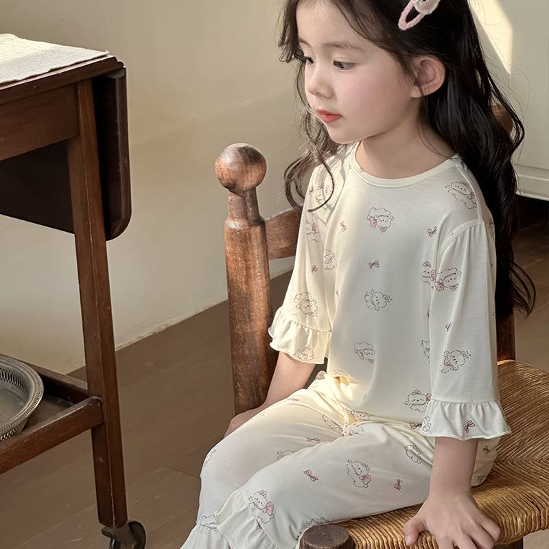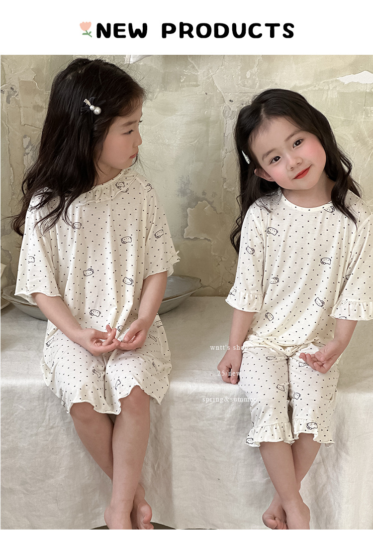 소녀 잠옷 여름 얇은 2025 새로운 Youkosi 레이스 홈 옷 소녀 아기 에어컨 세트스토어 가기
