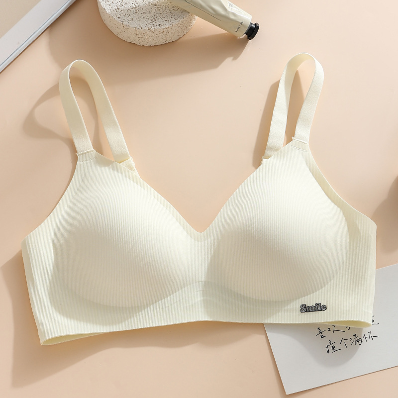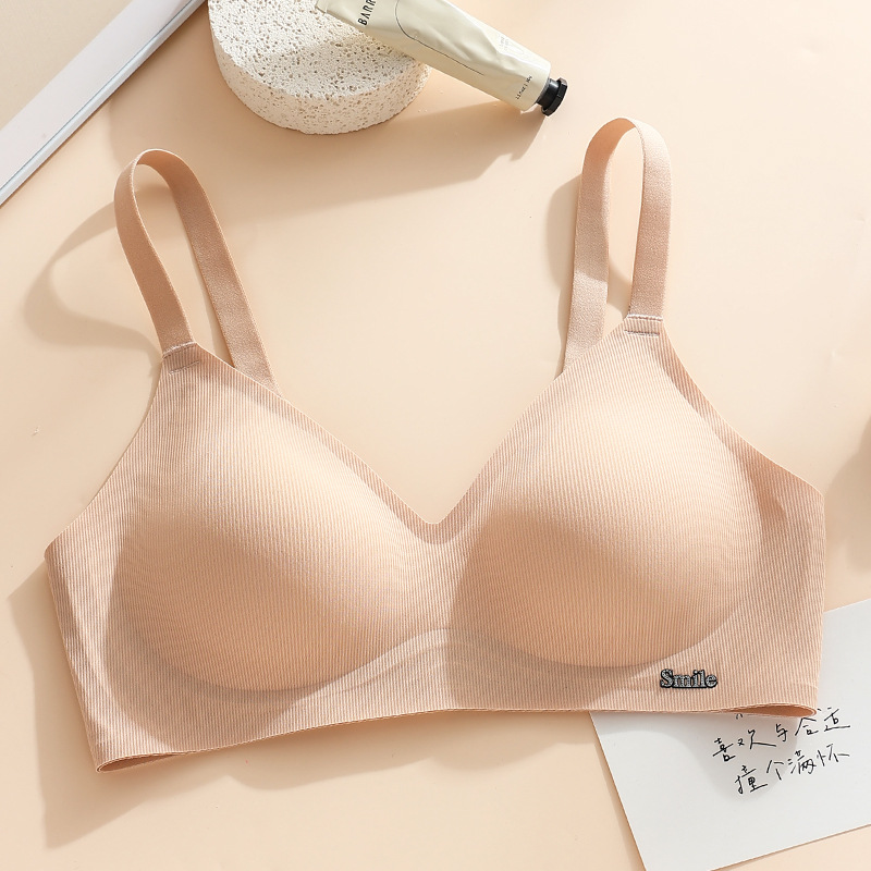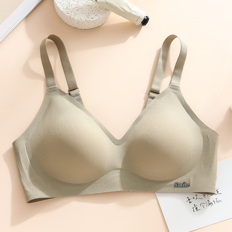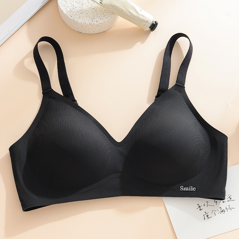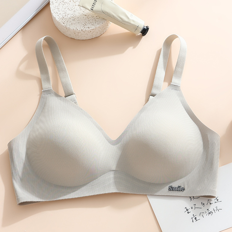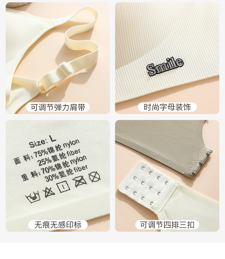Traceless Steel Ring-free Jelly Underwear Paramilis Beauty Vest Semi-fixed Cup Four-row Three-button Bra의 여성 수집스토어 가기