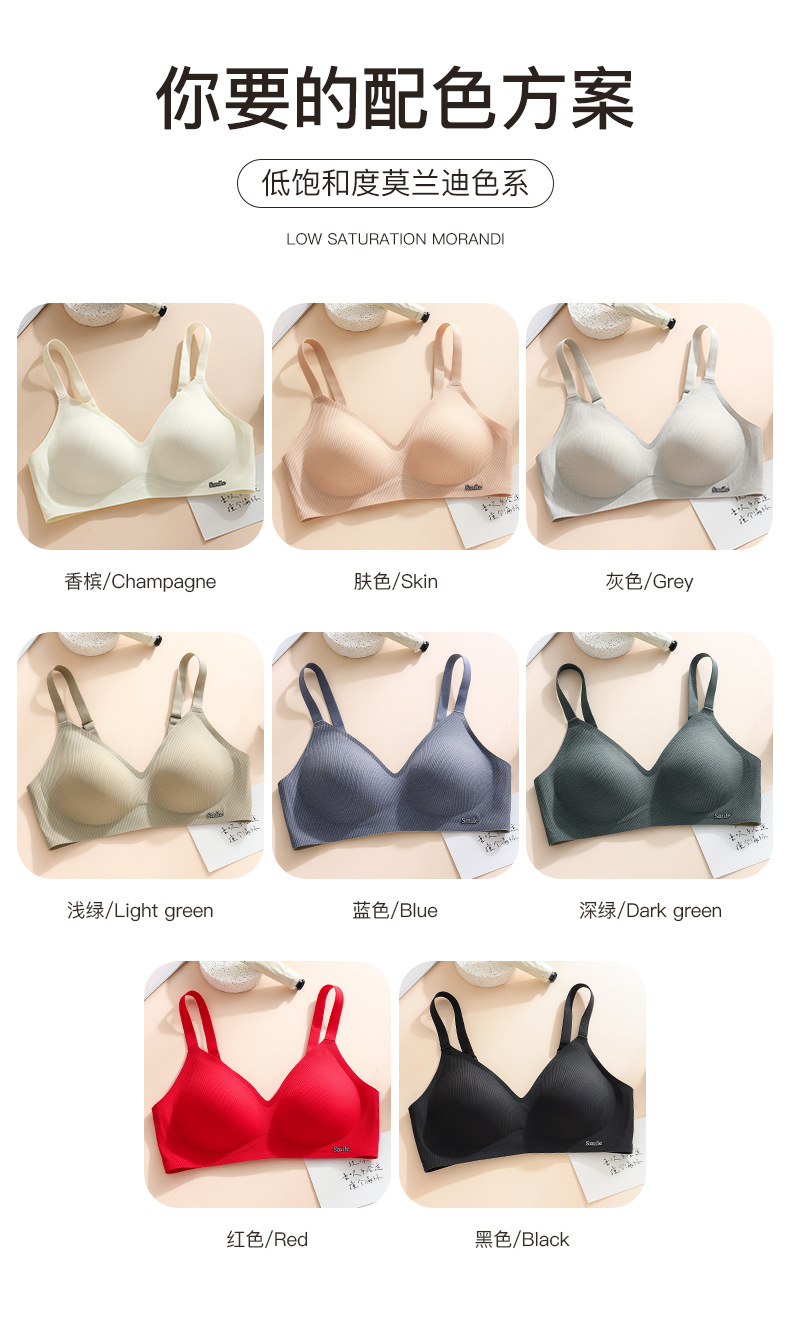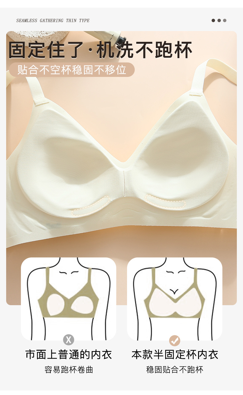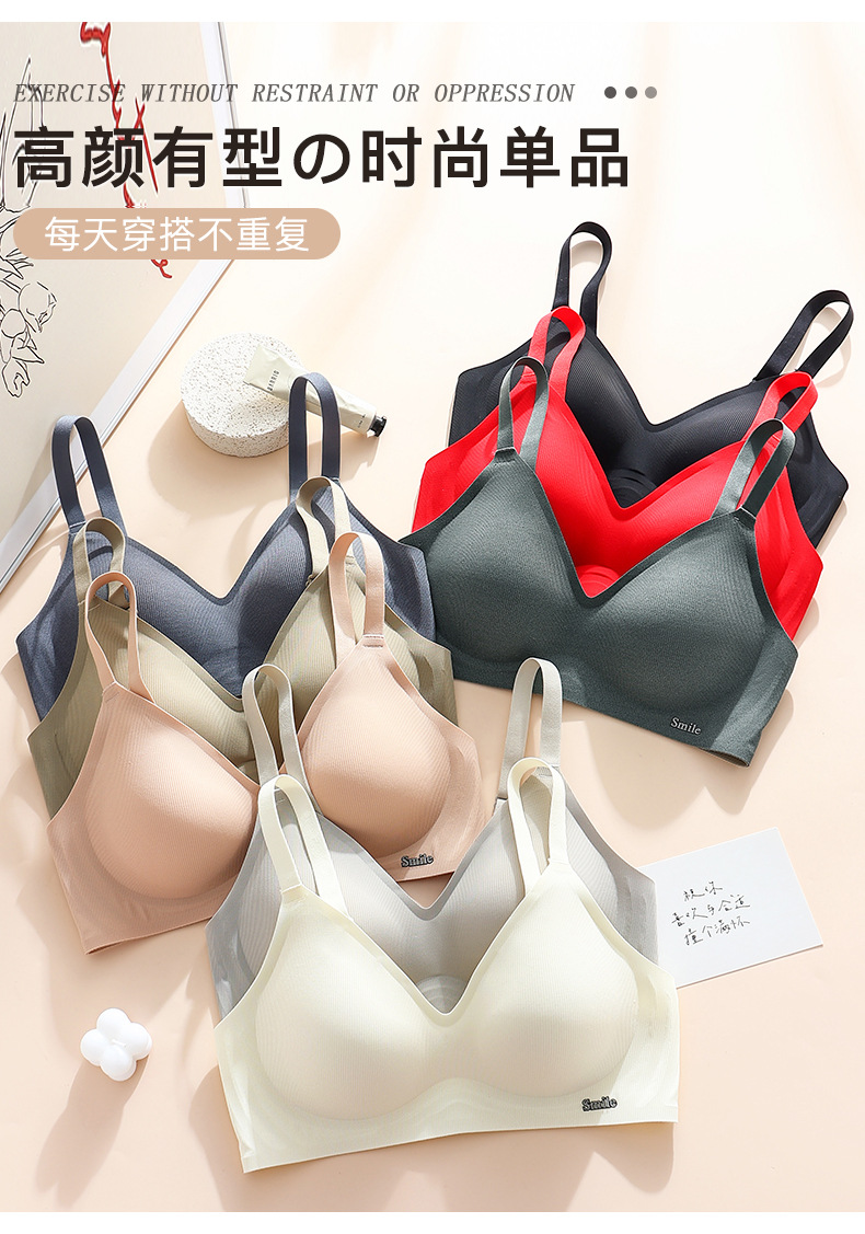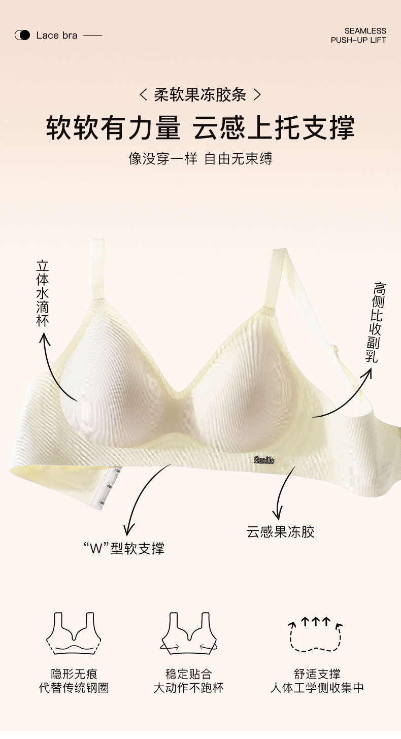 Traceless Steel Ring-free Jelly Underwear Paramilis Beauty Vest Semi-fixed Cup Four-row Three-button Bra의 여성 수집