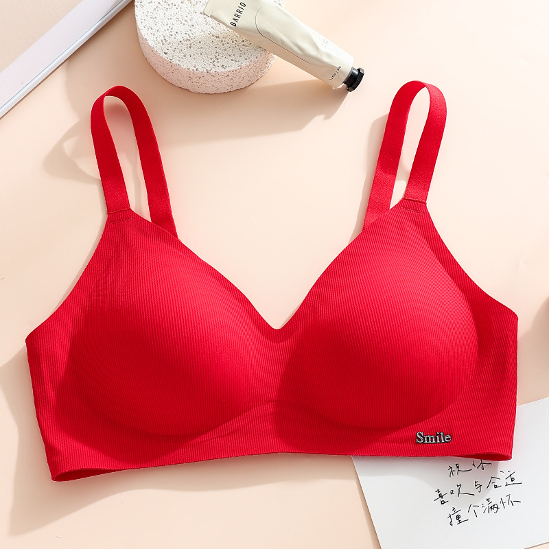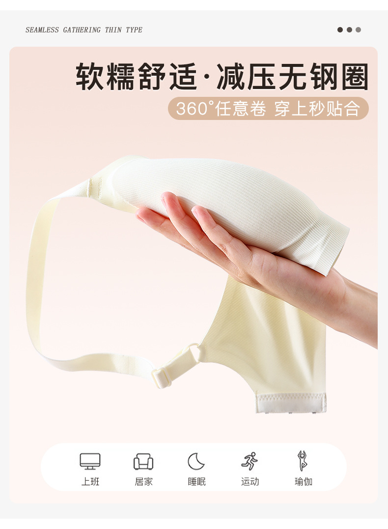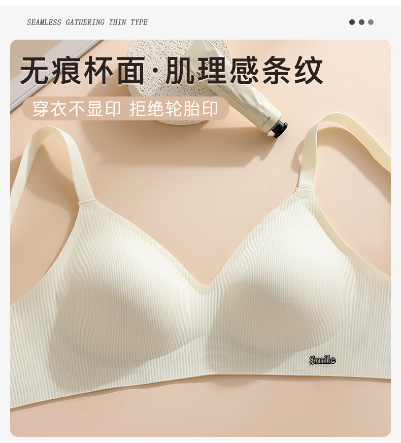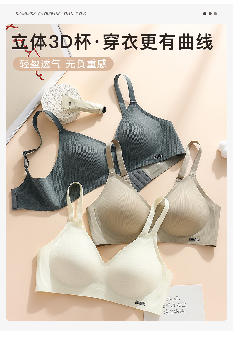 Traceless Steel Ring-free Jelly Underwear Paramilis Beauty Vest Semi-fixed Cup Four-row Three-button Bra의 여성 수집