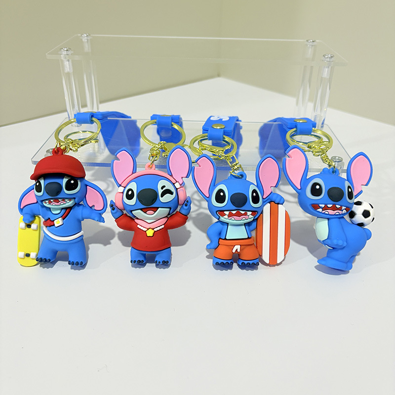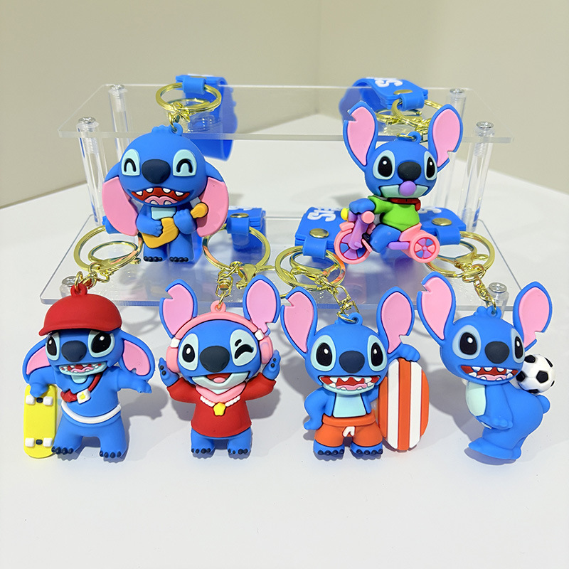 만화 여름 스티치 실리콘 키 체인 인형 펜던트 자동차 펜던트 인형 뽑기 기계 작은 선물 도매스토어 가기