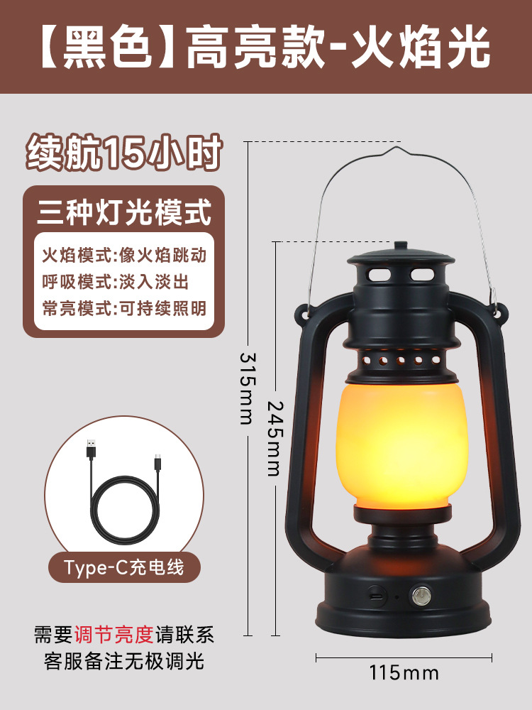 • A형 화염등 + 충전기(검은색 램프 본체) type-c 고속 충전