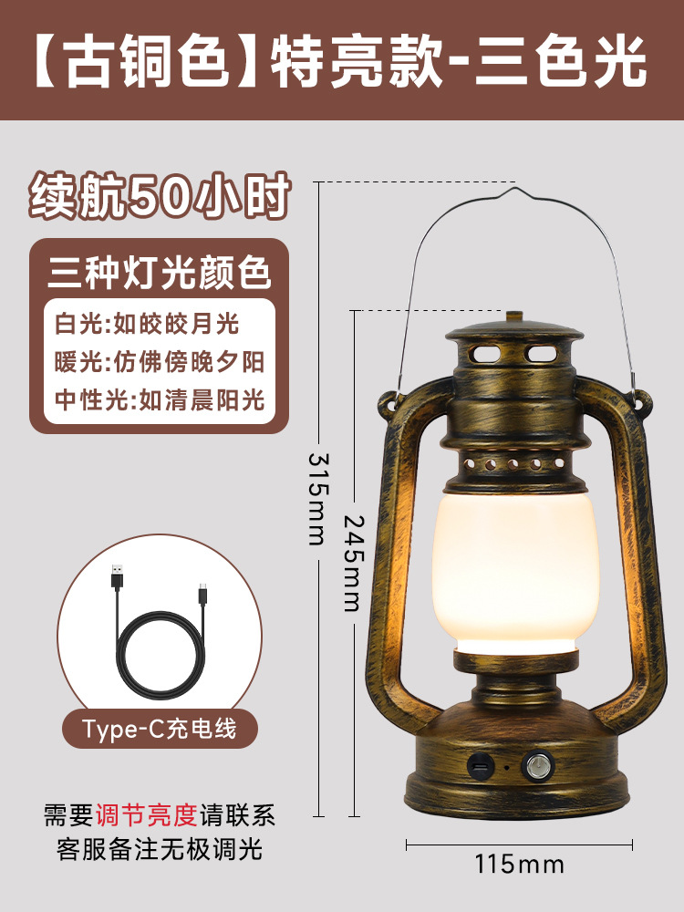 캠핑 램프 야외 충전식 복고풍 말 랜턴 캠프 캠핑 분위기 등유 휴대용 스톨 텐트 램프 장식 Xianchi