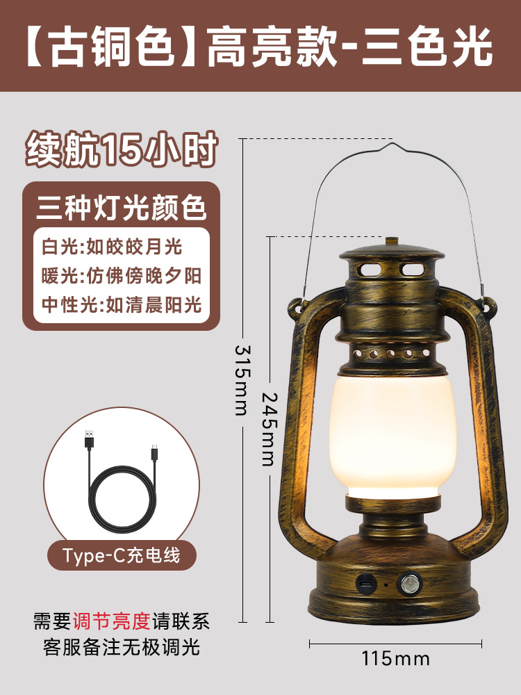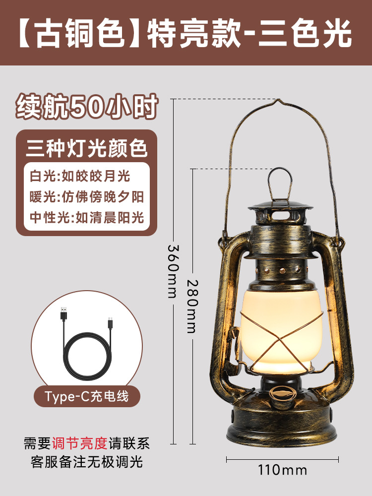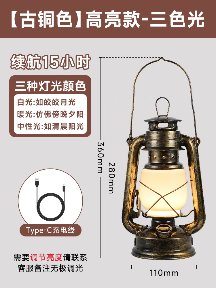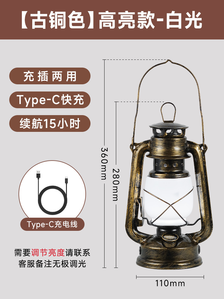 • A형 청동 램프 본체 + 3색 조명 + 충전 [10W 초고휘도 모델] 케이블 타입-C 고속 충전