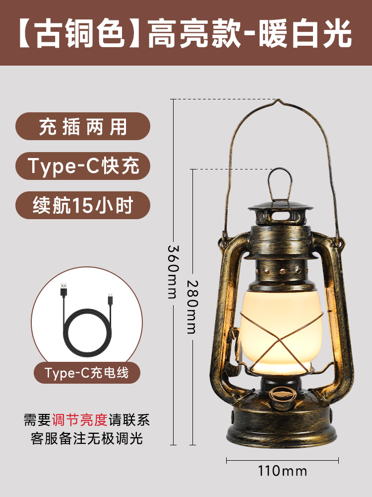 • A형 화염등 + 충전기(청동등 본체) type-c 고속 충전