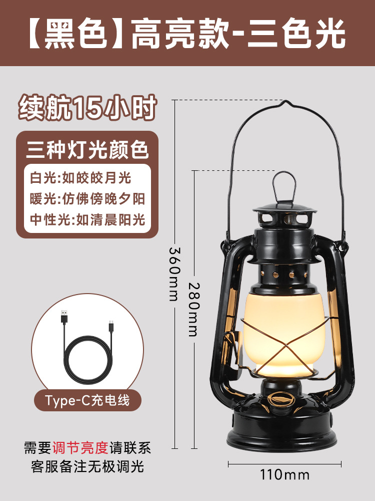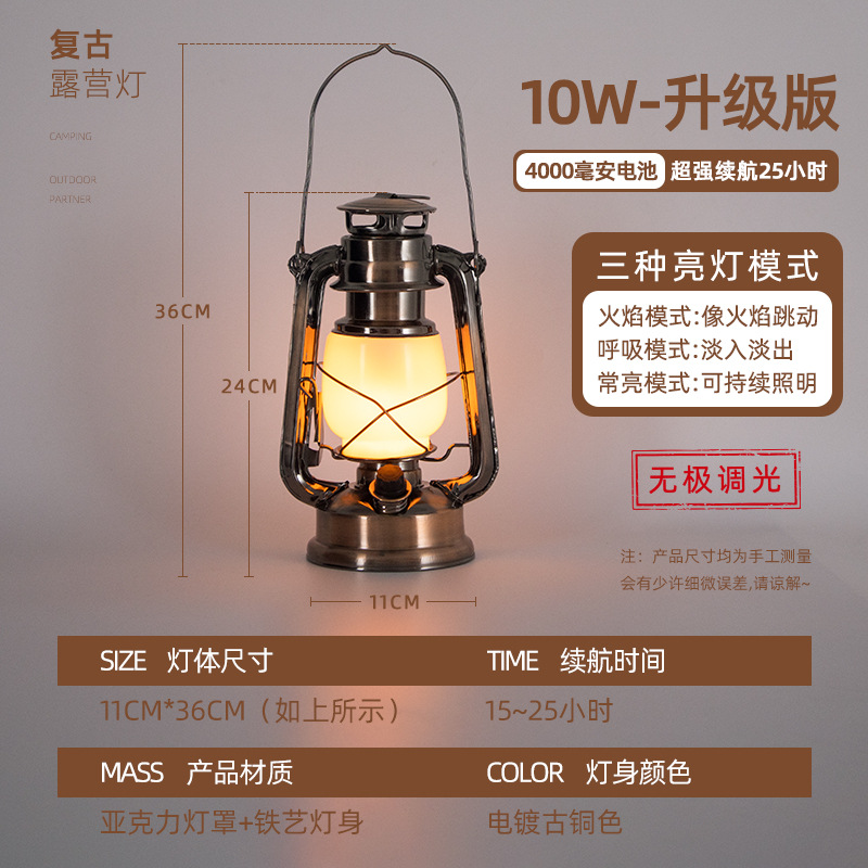 캠핑 램프 야외 충전식 복고풍 말 랜턴 캠프 캠핑 분위기 등유 휴대용 스톨 텐트 램프 장식 Xianchi스토어 가기