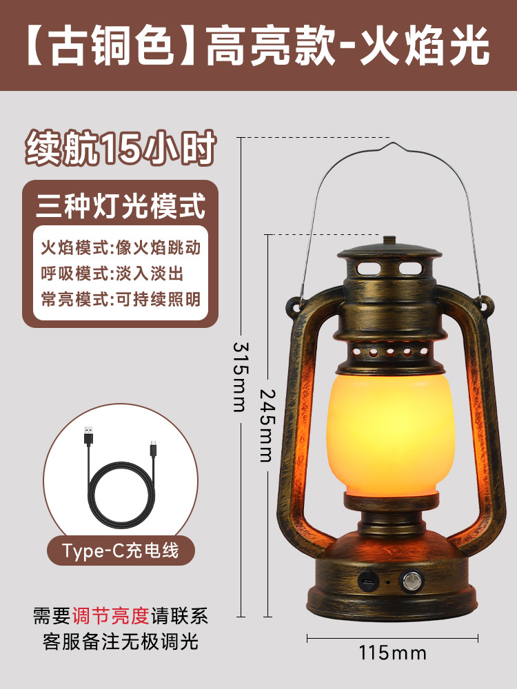 • A형 화염등(10W 강화 조명 버전) 청동색 Type-C 고속 충전