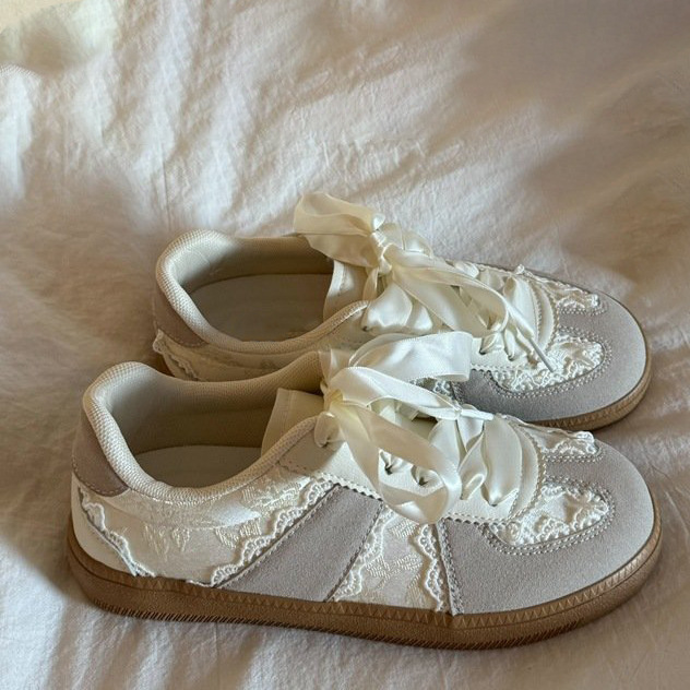 실버 레이스 작은 스타일 훈련 신발 여성 2025 새로운 빈티지 발레 스타일 화이트 신발, 트렌디 한 캐주얼 운동화