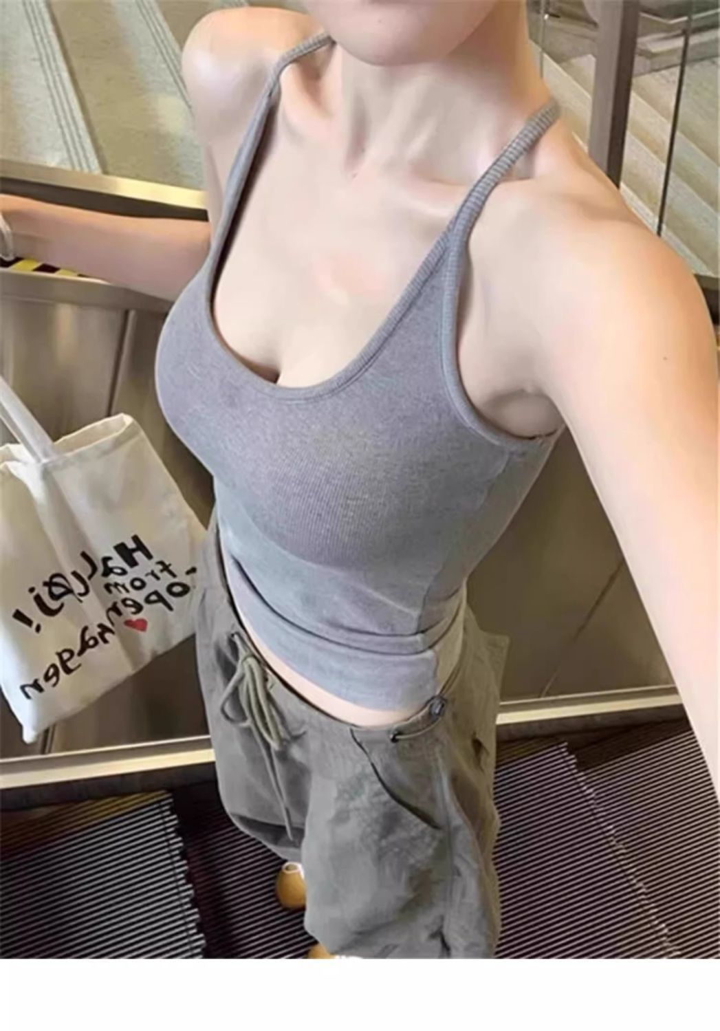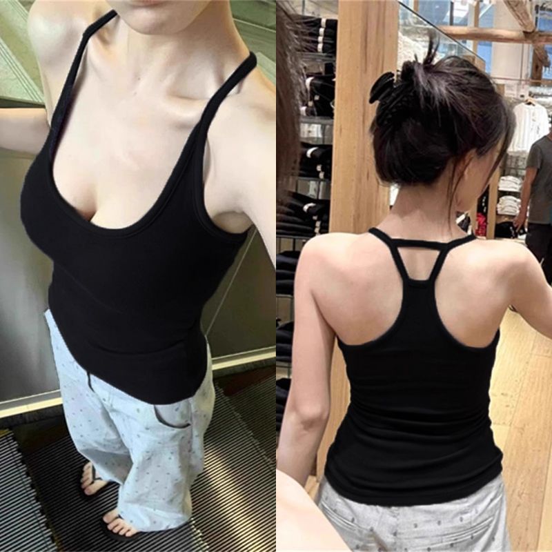 순수한 욕망 바람 매달려 목 덮고있는 Auxilar 유방 Camisole 여자 조끼 가슴 패드와 함께 여름 새로운 스레드 내부 착용 아름다운 뒷면을 입고스토어 가기